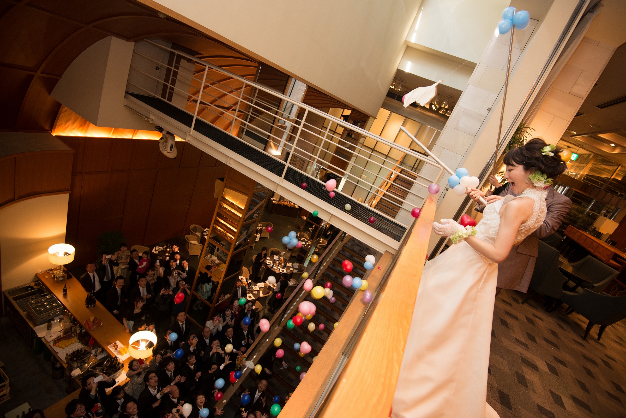 演出に生演奏を取り入れたかったので、レストランの1階と2階を貸切にできるのは大きな魅力でした。2階でバルーン演出を効果的に使うことで、再入場時にみんなが自然に階下に集まっている雰囲気が作りだせました。