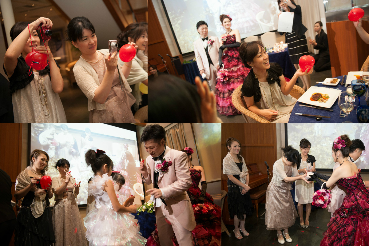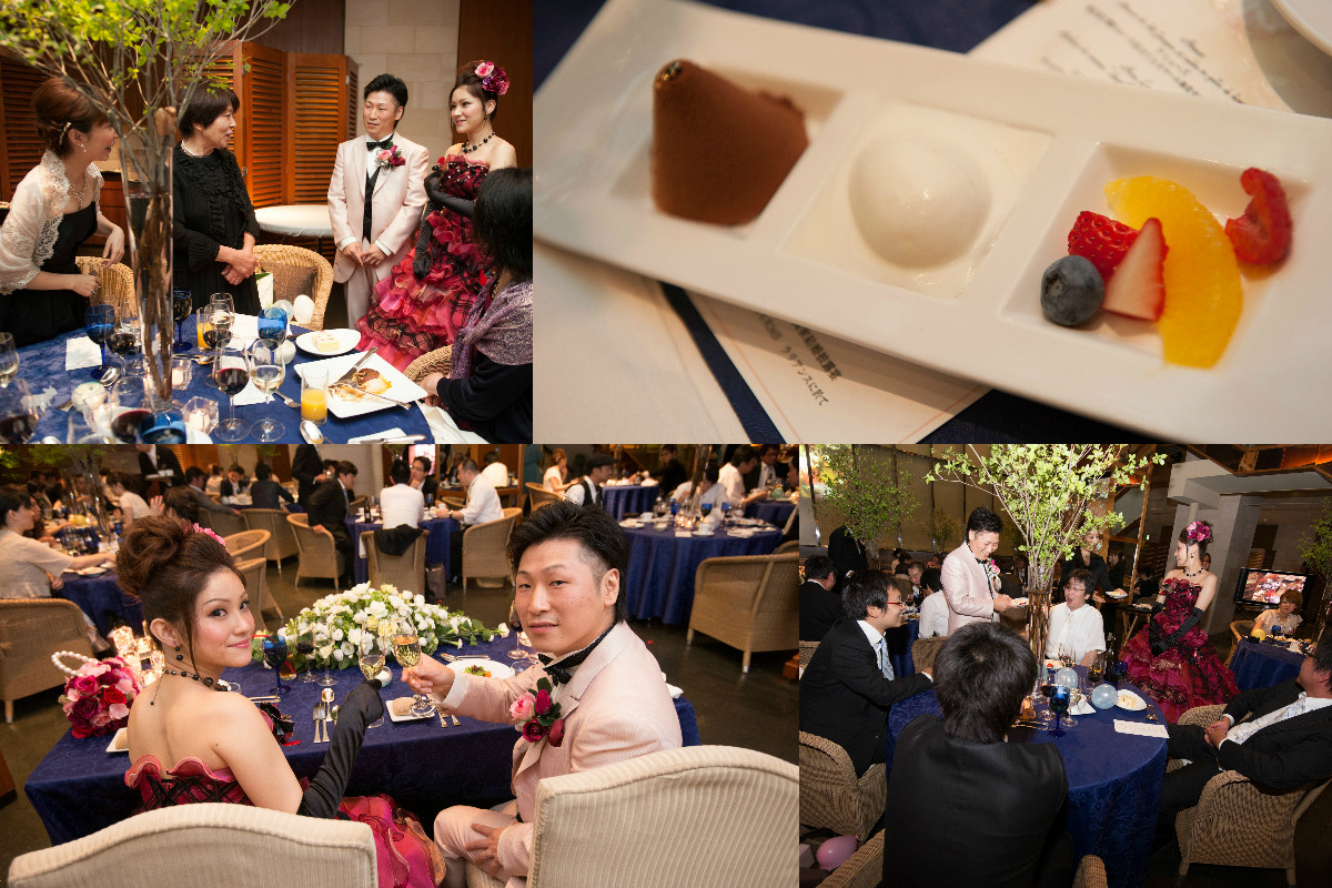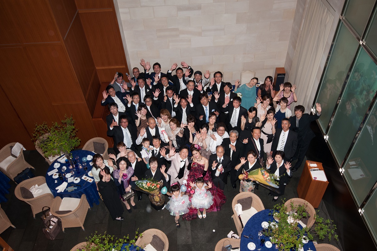 ゲストの方々にはおいしい料理を食べ、おいしいお酒を飲みつつ、アットホームに祝ってもらいたいと思い、スピーチなどは少なくしました。その分、みんなでゆっくりと話しができたと思います。再入場後では、バルーンスパークで当たりの風船を拾ったら、新郎作のクレープシュゼットをプレゼントしましたが、盛り上がったと思います。2階のチャペルでの人前式ではリングリレーをしましたが、初めて見たという方々が多くいたので、人前式ならではのことができたし、楽しめました。ぼんやりとしたイメージを伝えたのに、とても楽しく素敵な1日を作り上げてくれた、担当の原さんをはじめとする、ラリアンスのみなさまに感謝しています。