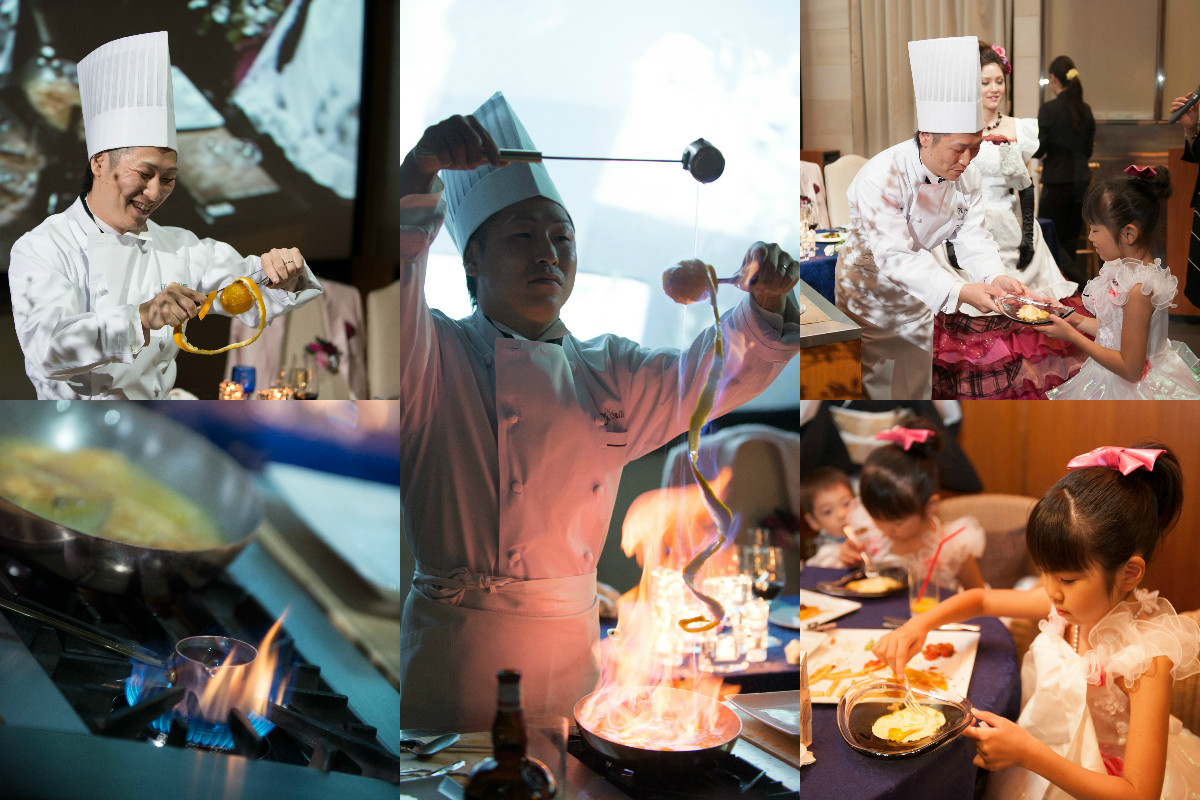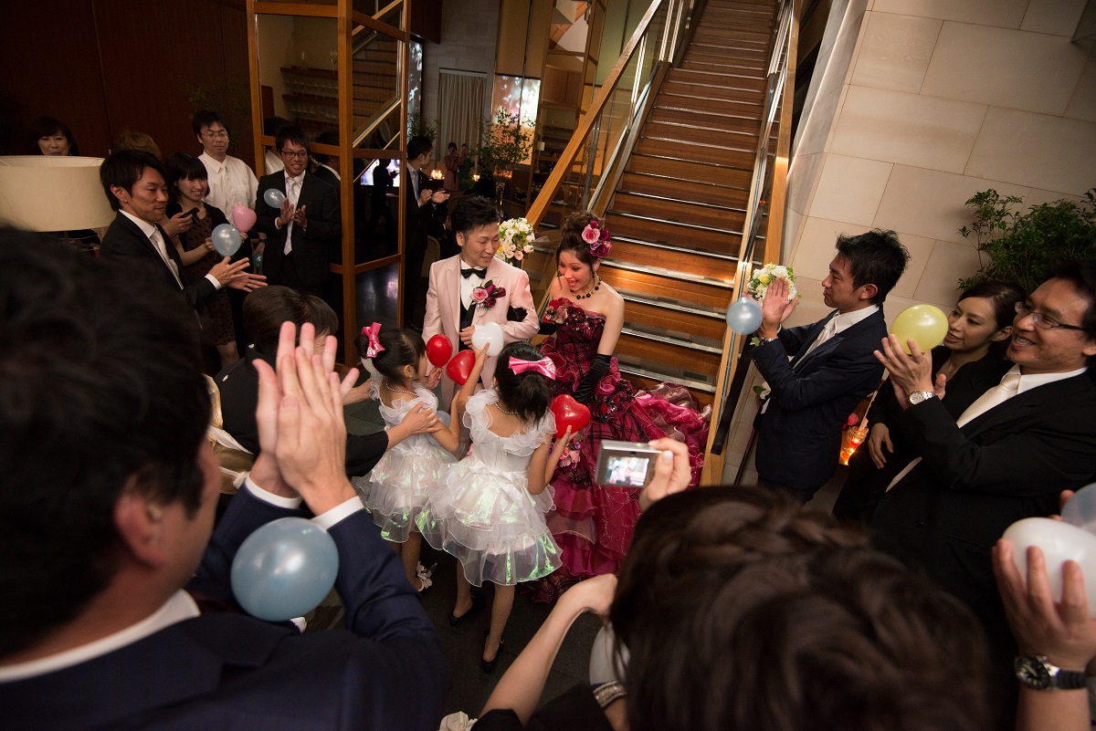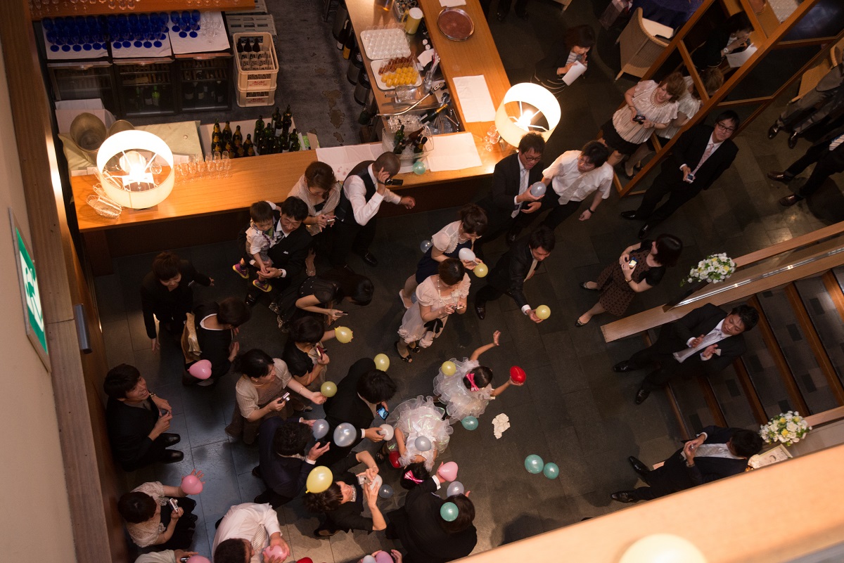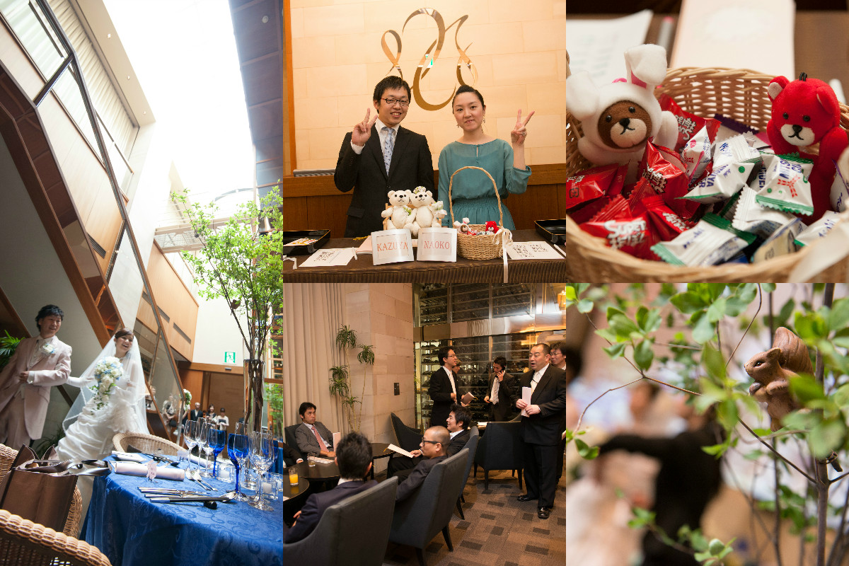 ゲストの方々にはおいしい料理を食べ、おいしいお酒を飲みつつ、アットホームに祝ってもらいたいと思い、スピーチなどは少なくしました。その分、みんなでゆっくりと話しができたと思います。再入場後では、バルーンスパークで当たりの風船を拾ったら、新郎作のクレープシュゼットをプレゼントしましたが、盛り上がったと思います。2階のチャペルでの人前式ではリングリレーをしましたが、初めて見たという方々が多くいたので、人前式ならではのことができたし、楽しめました。ぼんやりとしたイメージを伝えたのに、とても楽しく素敵な1日を作り上げてくれた、担当の原さんをはじめとする、ラリアンスのみなさまに感謝しています。