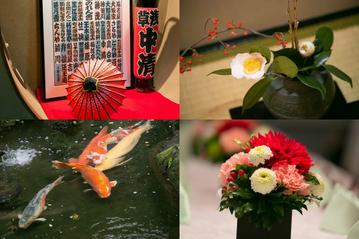 披露宴会場も、助言をいただきながら提携している老舗の天ぷら屋さんに決めました。普段だったら入るのも躊躇してしまいますが見本の写真からも素敵さが溢れ出ていたので、満場一致でこちらに決めました。