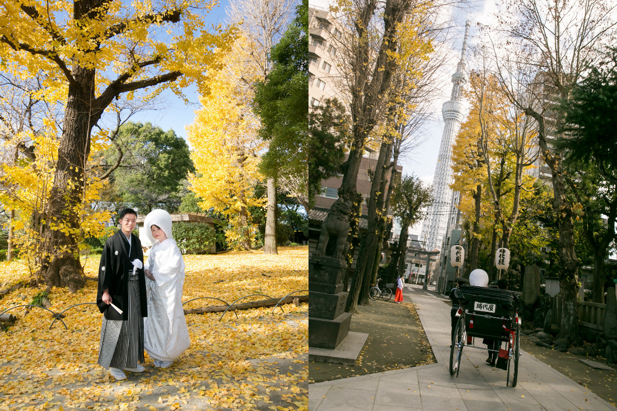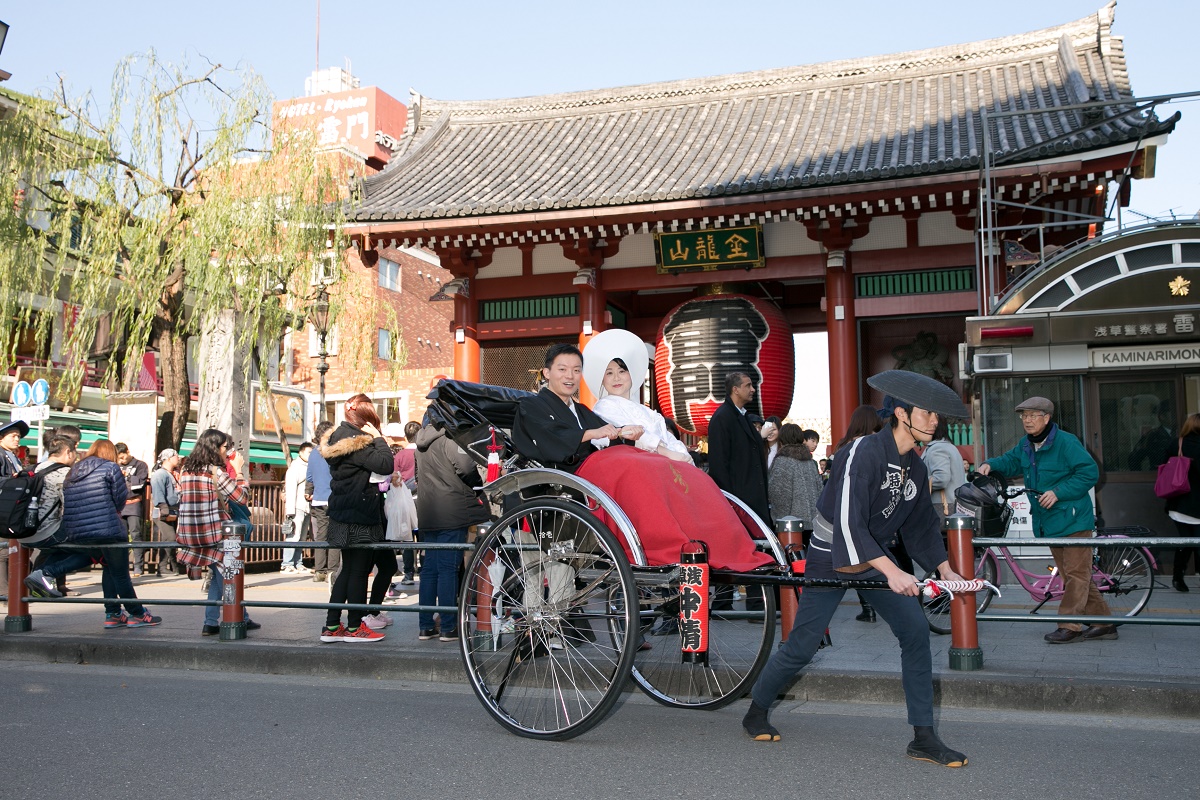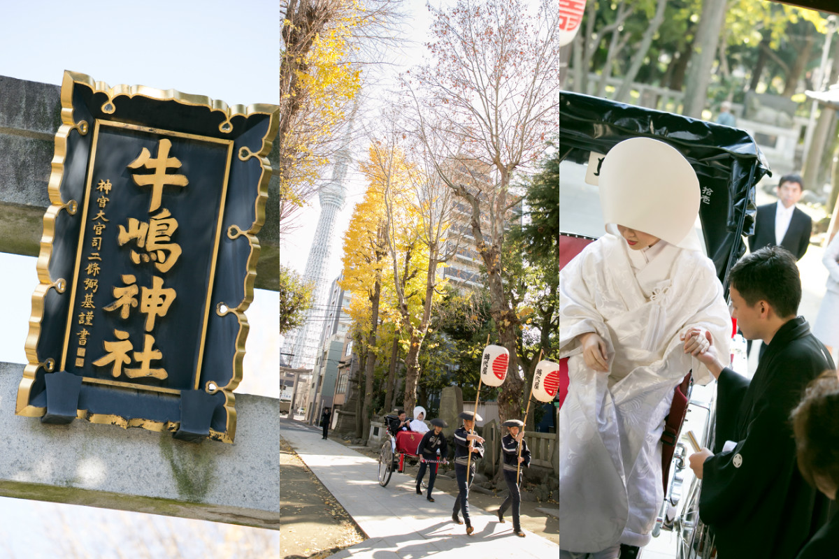 都内の神社で、プランナーさんから「浅草だったら人力車で移動できますよ」と教えてもらい、恥ずかしいと思いましたが一生に一度しか出来ない事を楽しんでやってみよう という事で牛嶋神社で挙式することにしました。