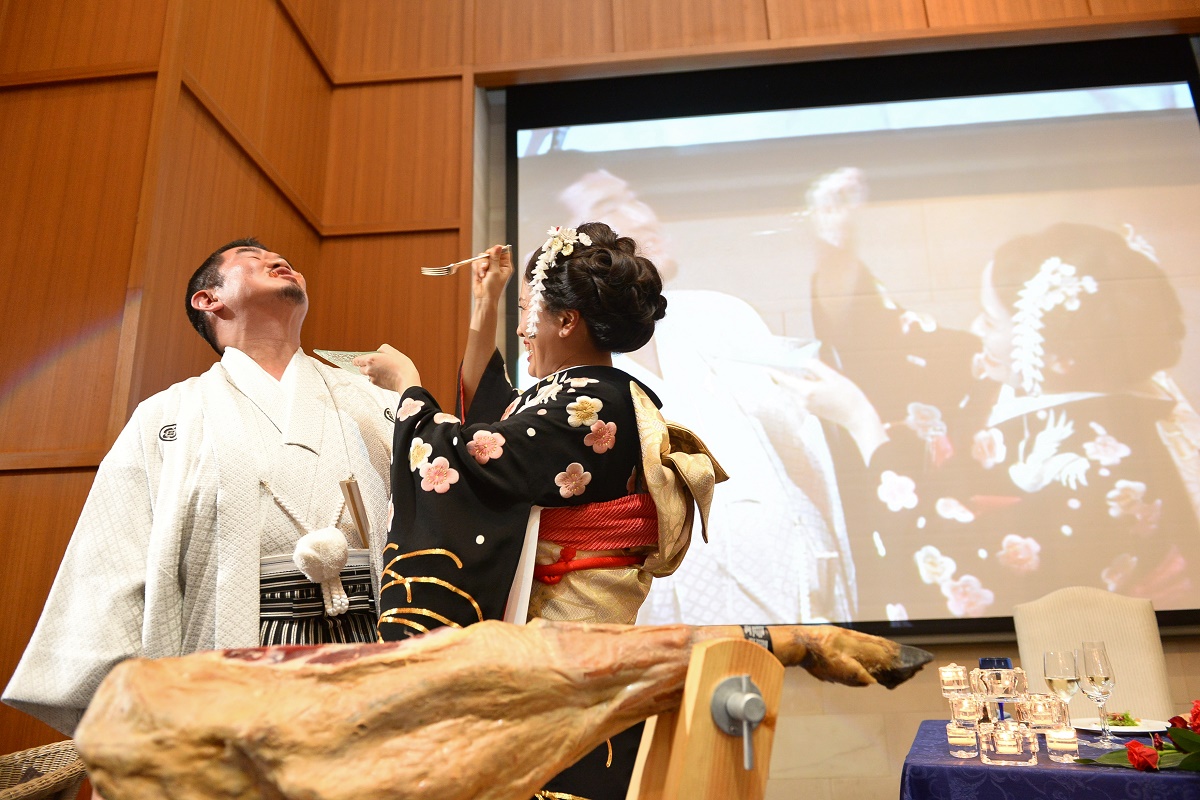 サービスをしてくださった方が皆、誰に何を聞いても、きちんと答えてくださり、スタッフ一人ひとりの知識とプロ意識の高さを感じ、このスタッフに支えてもらえたら心強いな、と漠然と考えていました。また様々な演出の提案をしてくれていたので、型にはまらない面白い披露宴をすることができると感じました。実際に私たちはケーキ入刀の代わりに生ハム入刀をして、クレープシュゼットの実演とデザートブッフェをさせて頂きました。