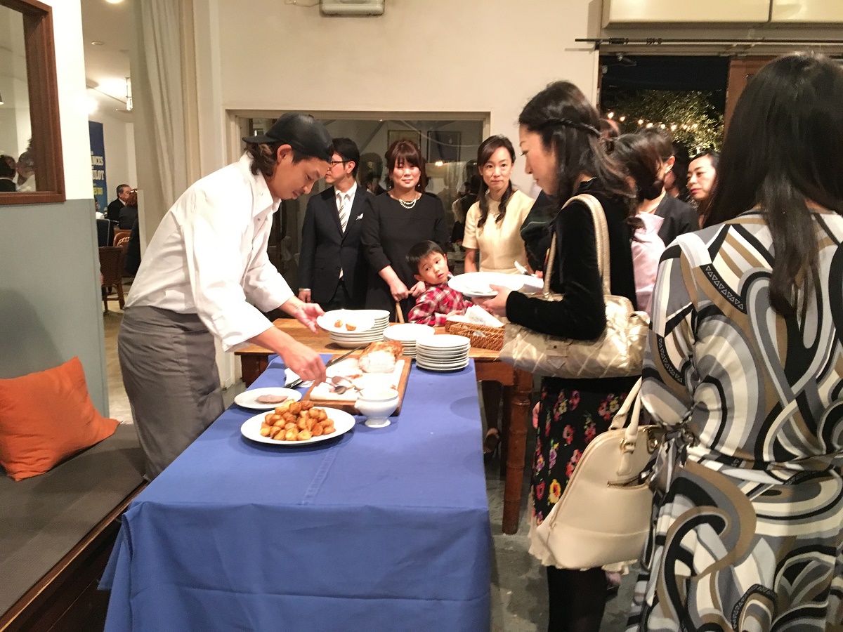 料理に関しては、実際に食事したことがありましたので、用意していただいたプランにあるもので十分満足できるものでした。特に店内の窯で焼くピッツァが有名で、間違いない味です!ピッツァ、アンティパスト、パスタ、メイン、ドルチェ、それぞれ数種用意してくださいました。当日は半立食のパーティーでしたが、イスも十分あり、みなさんくつろいでいただけました。ゲストの年齢層が幅広かったので、立食の気軽さも欲しいですが、座って休めるところも必要なので、ちょうど良かったです。