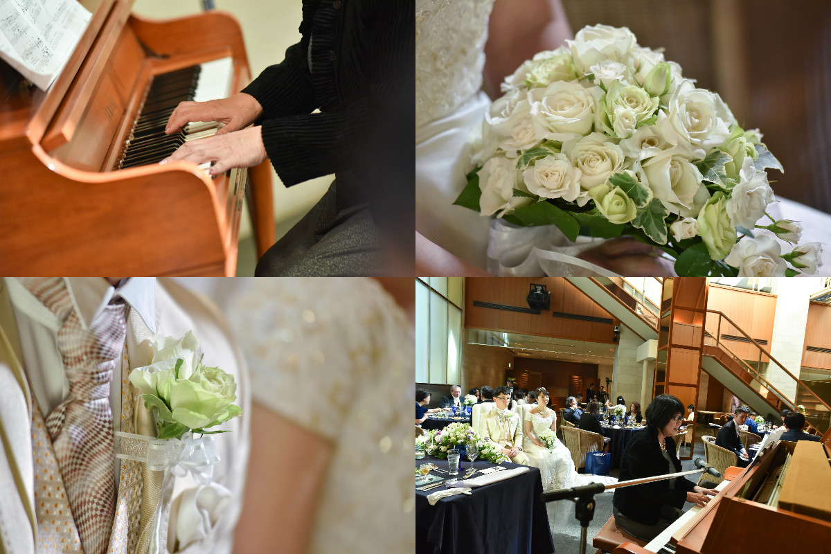 挙式では、私が普段一緒に2台ピアノでの演奏活動をしている相方にピアノ演奏を全て頼み、そして歌は音楽教室を経営している(私もその教室で教えている)声楽の先生にお願いしました。