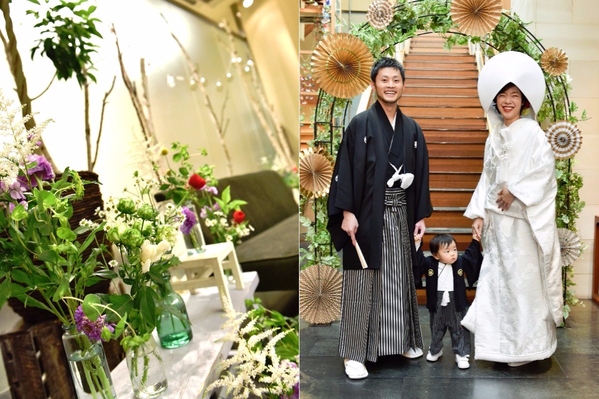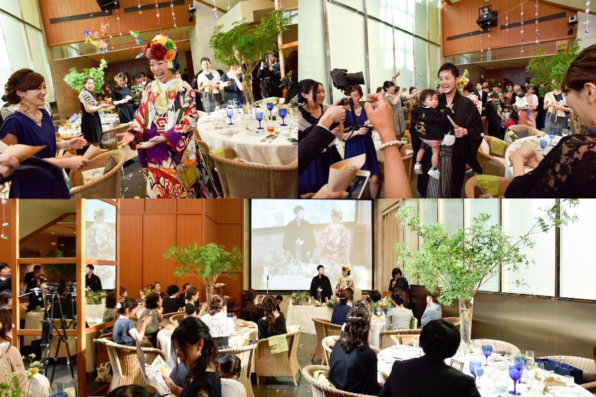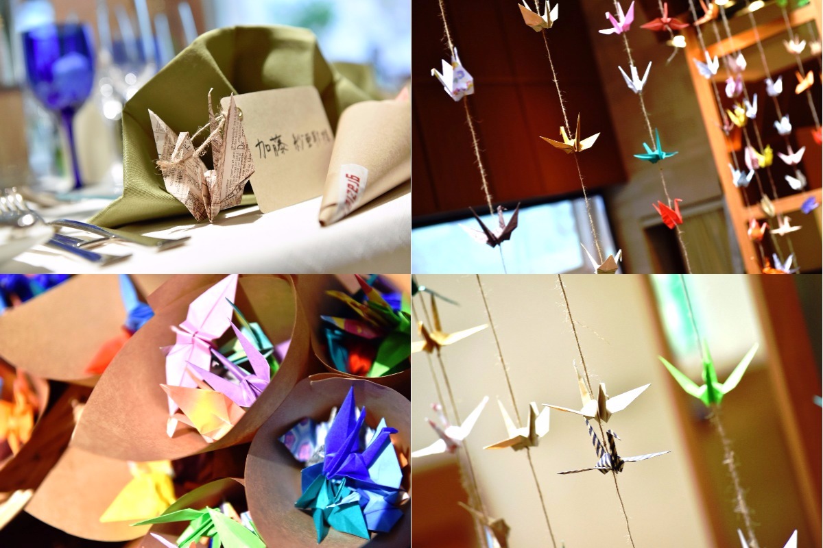 とにかく、手作りでアットホームで、自分たちらしいウェディングにしました。テーマは【和×ナチュラル】にこだわり、鶴のガーランドや鶴シャワーで和、多めのグリーンやテーブル装花に木を使ったりと、テーマを考えて統一感を出すようにしました。