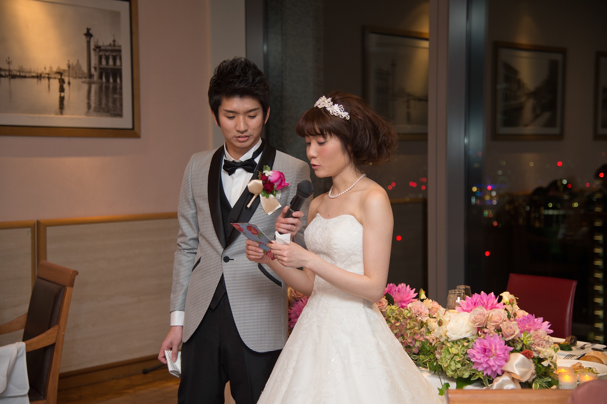 当日は、皆様から、ゆっくり食事ができとても美味しかった、二人らしいパーティーだった、と大変好評でした!私達も楽しく準備し、思った通りのパーティーができたのも、プランナーさん、スタッフの皆様のおかげです。ありがとうございました。