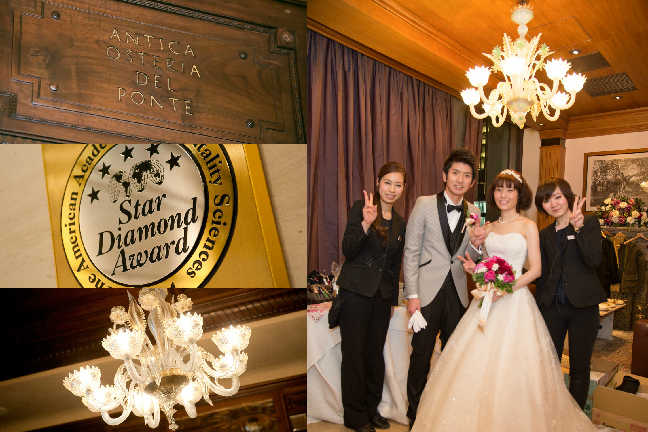 私たちはアットホームでお客様との距離が近いパーティーをしたかったので、アンティカ・オステリア・デル・ポンテを選びました。窓から見える景色、レストランの内装と雰囲気はとても素敵で文句なしです!