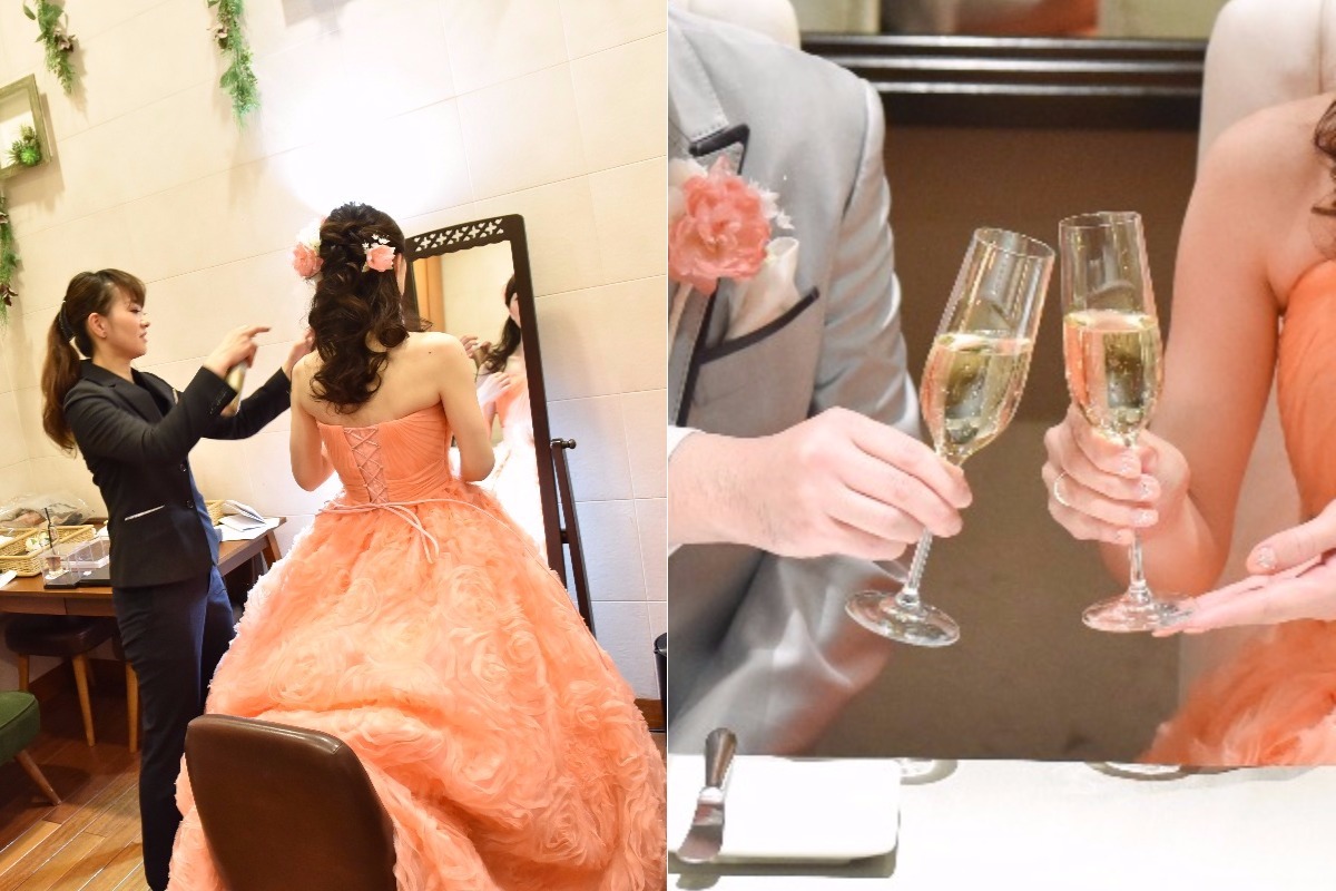 家族だけの結婚式のため、披露宴は個室での食事会という形で行いました。