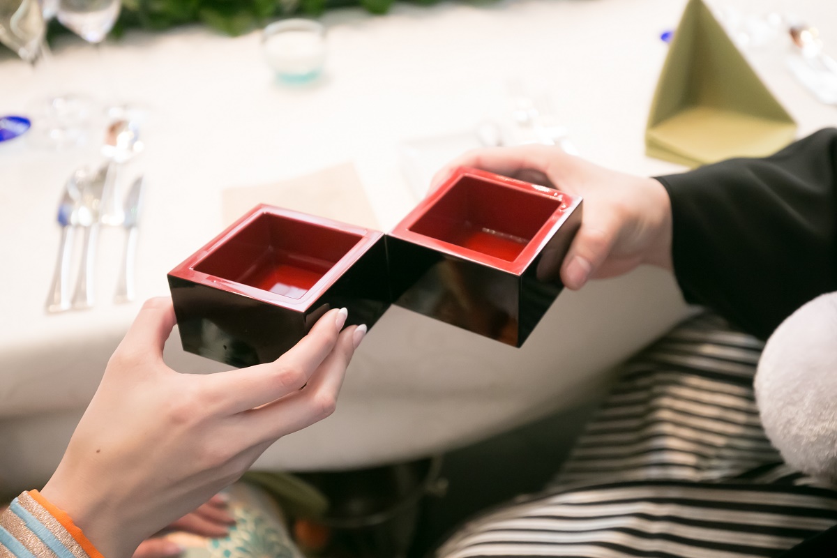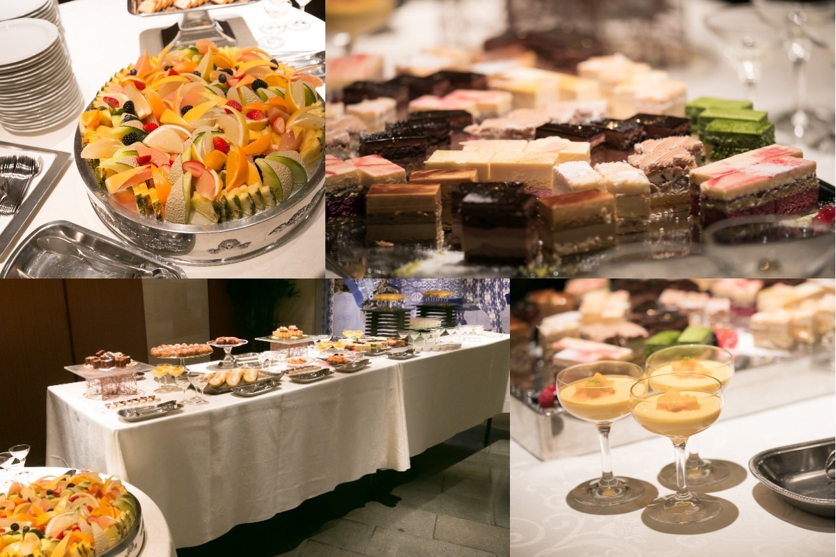 ・料理は季節のコースで。肉も魚も基本的には妥協をしたくなく、自分たちが食べておいしいものを。試食で大満足であり、参列者からも大変おいしかったとの声がきかれた。特にパンとホイップバターはおいしかったとの声が多く、余興の方はも余興から戻ってきてパンとホイップバターが下げられていて非常に悲しかったとのことだった。また、意外とデザートビュッフェは好評で、ほぼなくなったので、やってよかったと思う。料理はフォーカスしていたので結果としても満足いくものとなった。