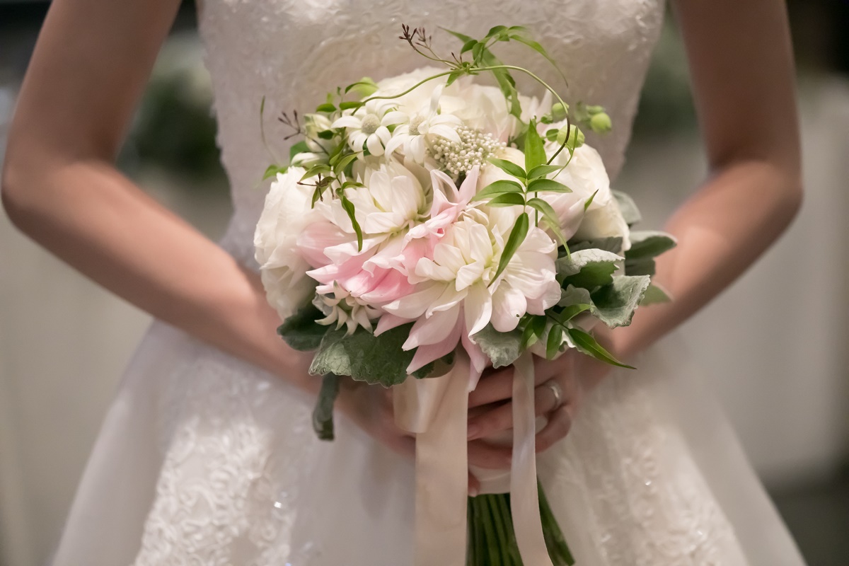 ・装飾も最低限としたが、もともとの会場の雰囲気を十分生かせ、テーマであったシンプルな感じを出せたと思う。また、装花についてはなるべく画像を見せる等イメージを伝える様にした。
