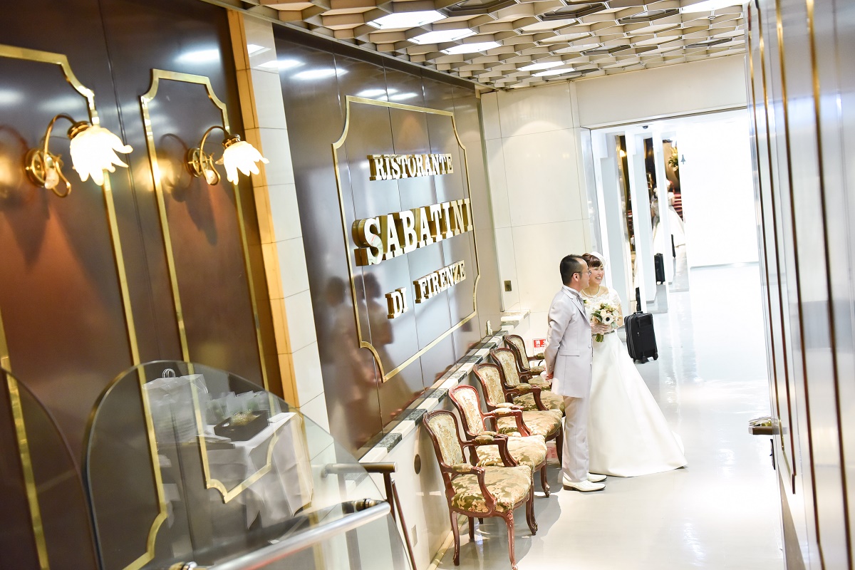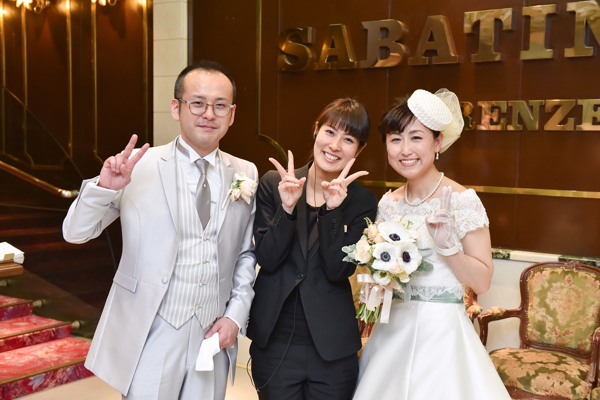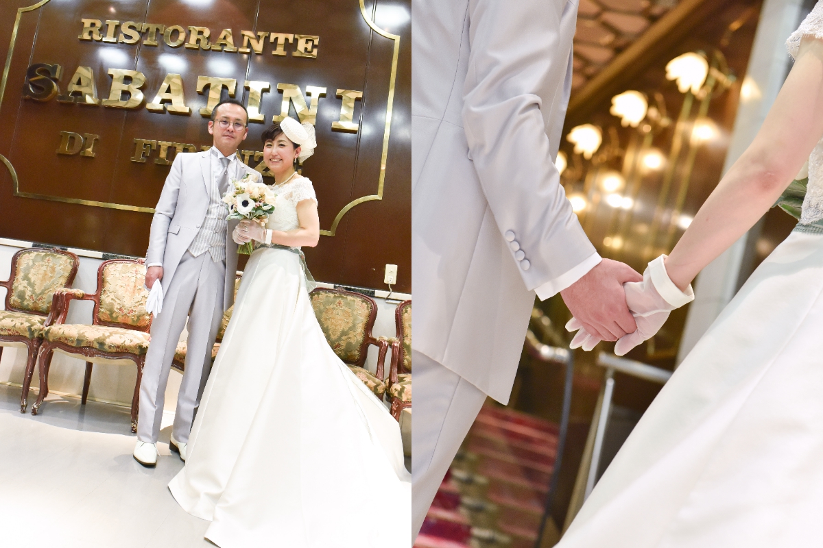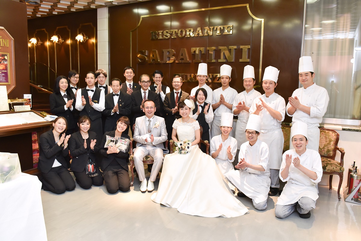そこで、いくつかレストランウエディングを行っているお店を回り、サバティーニさんは料理がとてもおいしかったということとともに、スタッフの方々のきめ細やかな対応や料理の内容をお客様に伝える真摯な姿勢が見えたこと、クラシカルなお店の雰囲気、ソニービル7階から見える銀座の風景のすばらしさ、また、遠方から来るゲストもいましたので、他のお店と比較したとき東京駅が近く、また銀座駅からもすぐという好立地が決め手となりました。