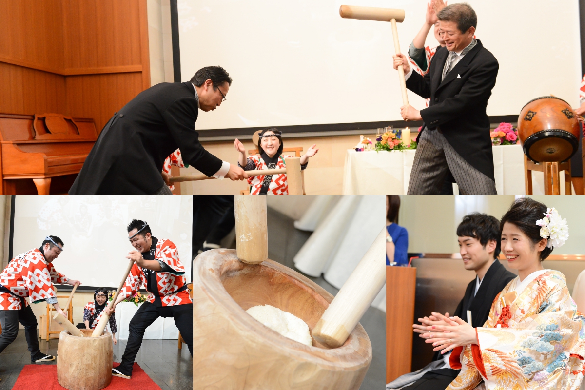 ②ケーキカットが照れくさい&和装を生かしたい⇒ケーキカットではなくもちつきパフォーマンス