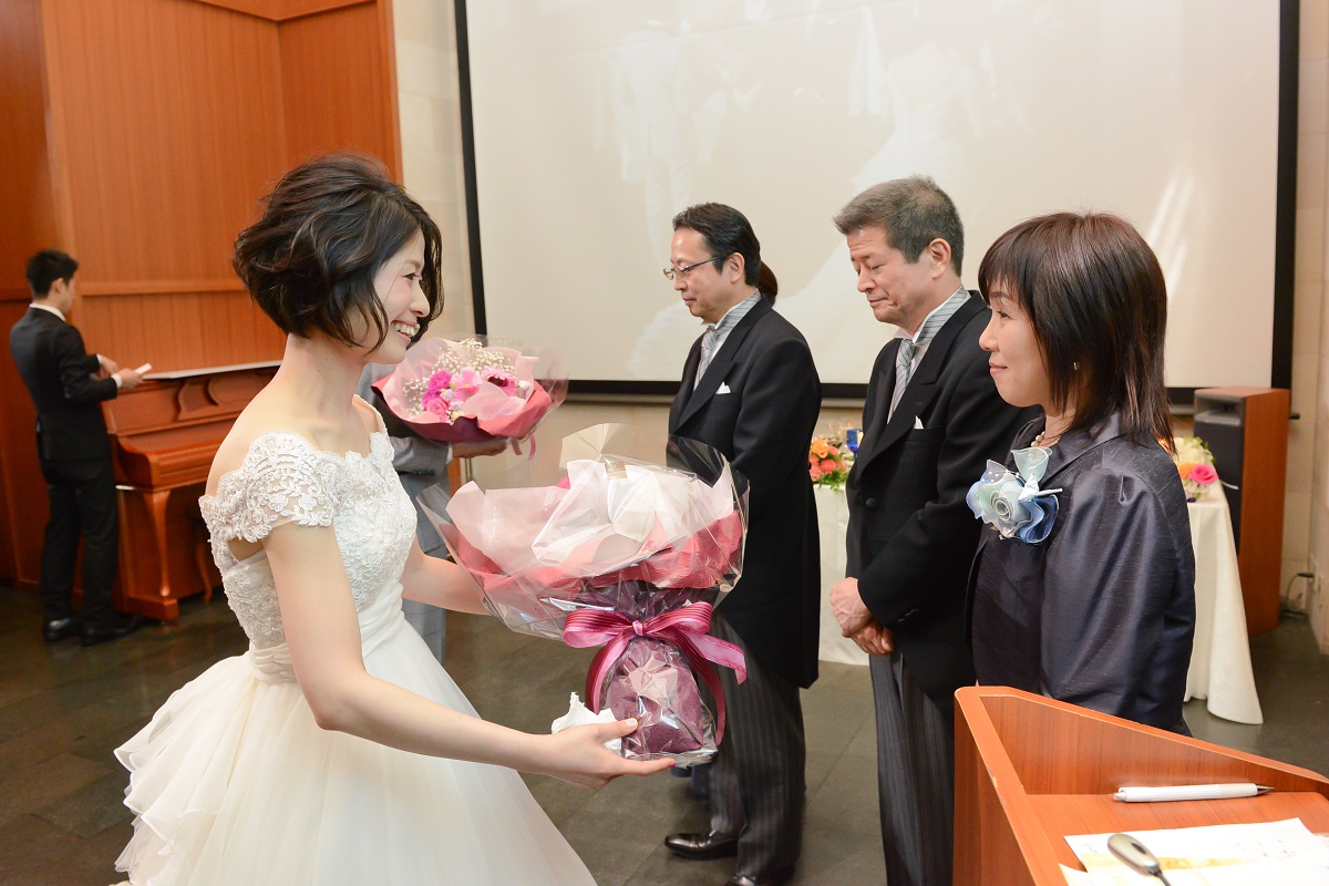 ③家族へ感謝を伝えたい⇒二人とも両親へ手紙をプレゼント(読んだのは新婦のみ)、お色直し退場・入場は両親と一緒に