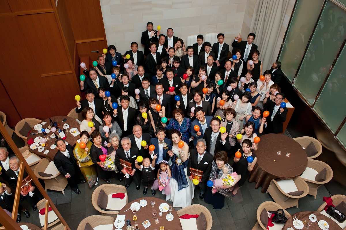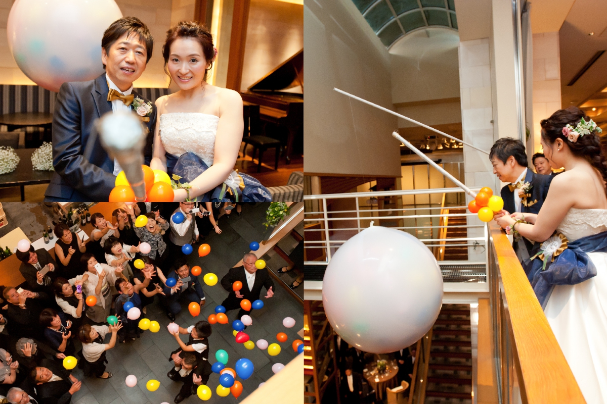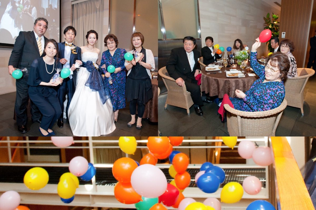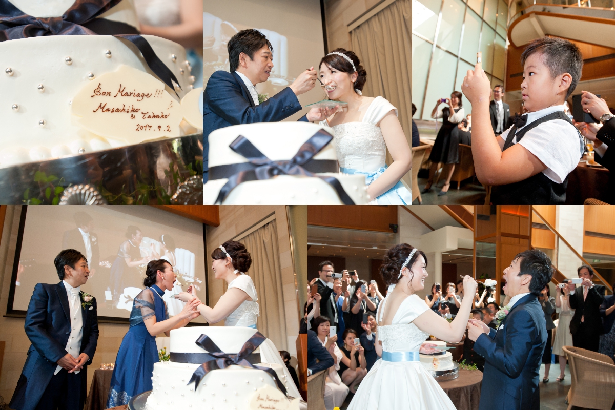 海・山・自然をテーマに全員がまったり楽しく幸せな気分になる事を望んで結婚式にあたりました。余興はオープンキッチン・ケーキカット(サードバイトまで)中座1回ずつ・プロフィール上映・リングボーイとフラワーガールのプレゼント・テーブルラウンド・ラウンジスパークバルーンでのプレゼント・デザートビュッフェ・全員集合写真・ライブエンドロール上映くらいでも忙しくて客観的に見れずに終わった感じでしたが、何年振りかで会った親戚・友人達、後輩や同級生達が2グループに分かれて勝手に2次会をやって余韻を楽しんでた事、家出してた親子が27年振りに実家に行き一晩共に過ごす事が出来た事、従姉の姉妹同士が数年振りに話をしていた事、私も胃癌で4月3日入院4月4日手術で長引いて5月28日退院の状態からの結婚式の準備で妻にとても助けられた事、色々なエピソードが有った中で全員が楽しくとても良い結婚式だったと言ってくれました。