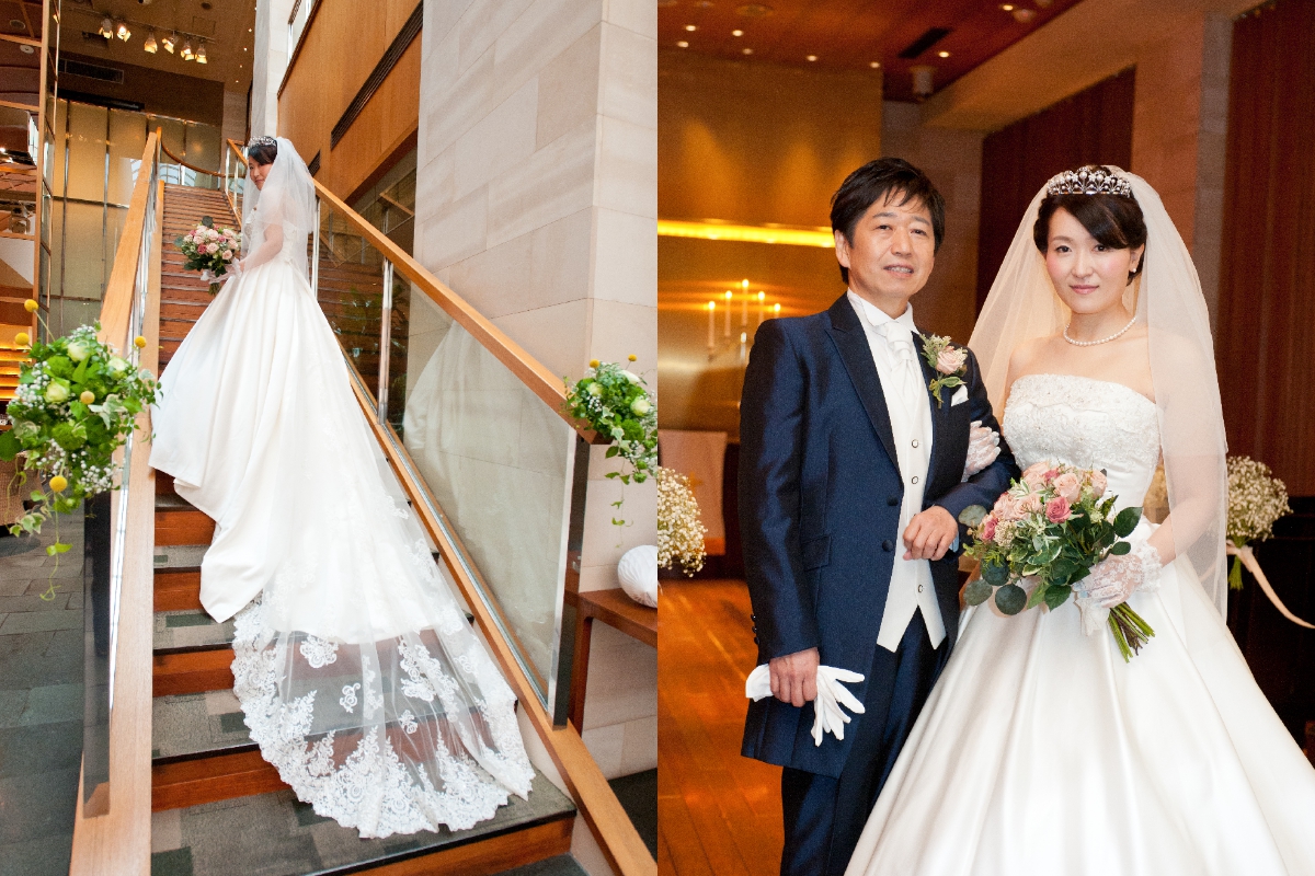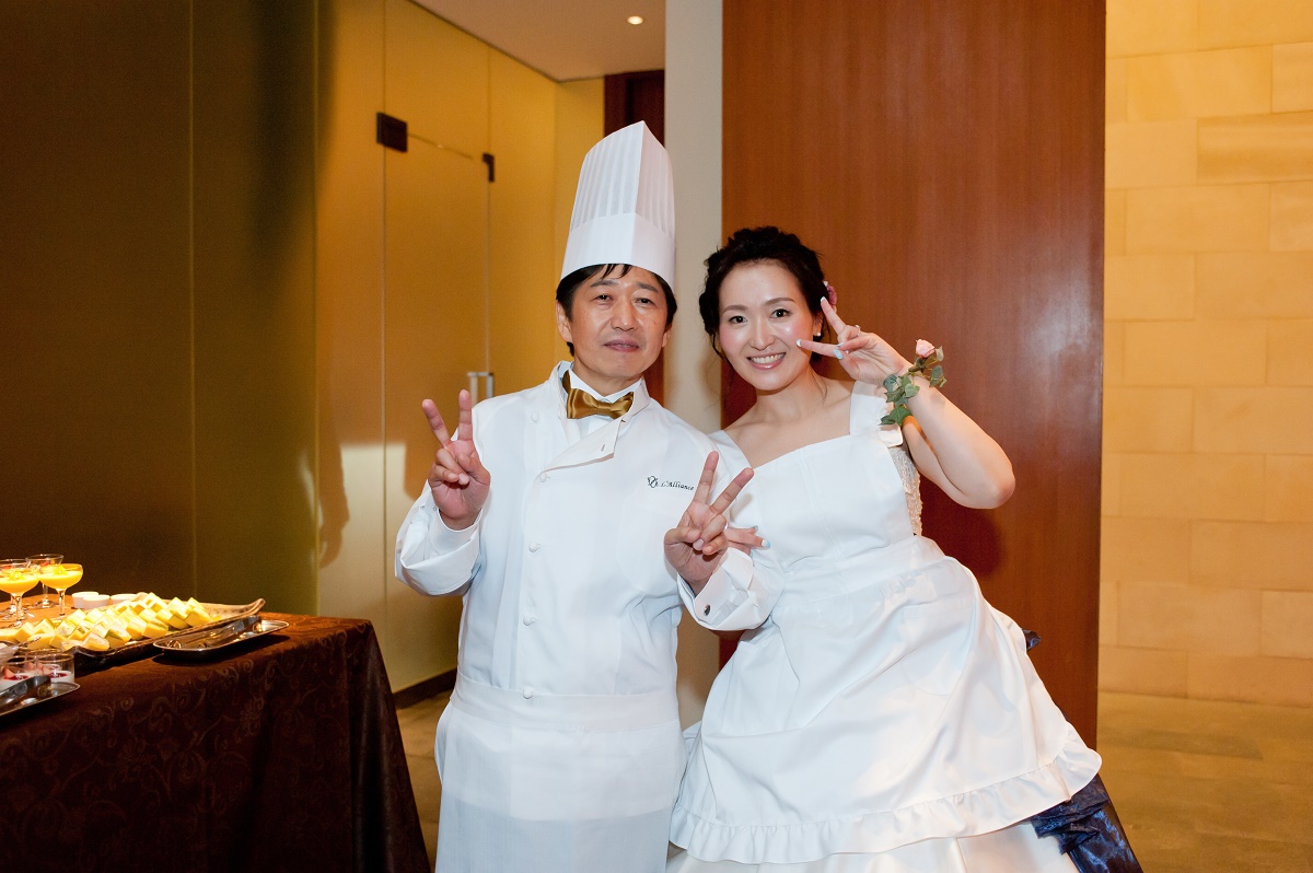 実は私自身は抗がん剤を服用していて、お料理を芯から楽しむ事が出来ませんでした。癌治療が落ち着いたら機会を作って再度美味しいお料理と林真理子さん・菅野美穂さんにお会い出来る事を楽しみに伺いたいです。出席者の感想は美味しくて量的にも全員がお腹がいっぱいになったと皆喜んでくれてました。メニューも2コース選択が出来たのが初めてと言う声が多く良かったとの事でした。バターもパンもお料理もデザートも満足してました。(^O^)/もちろん入口・エスカレーター・チャペル・ラウンジ・ダイニング等の雰囲気や作りの感じも、とても気に入ってました。娘のピアノの発表会を差し置いて来てくれた友人や来るにあたって出席者同士の関係で迷ってた親戚・北海道・九州・青森・愛知・宮城・新潟から来てくれた親戚友人も喜んでくれて、やって良かったと感じられる結婚式になりました。♪