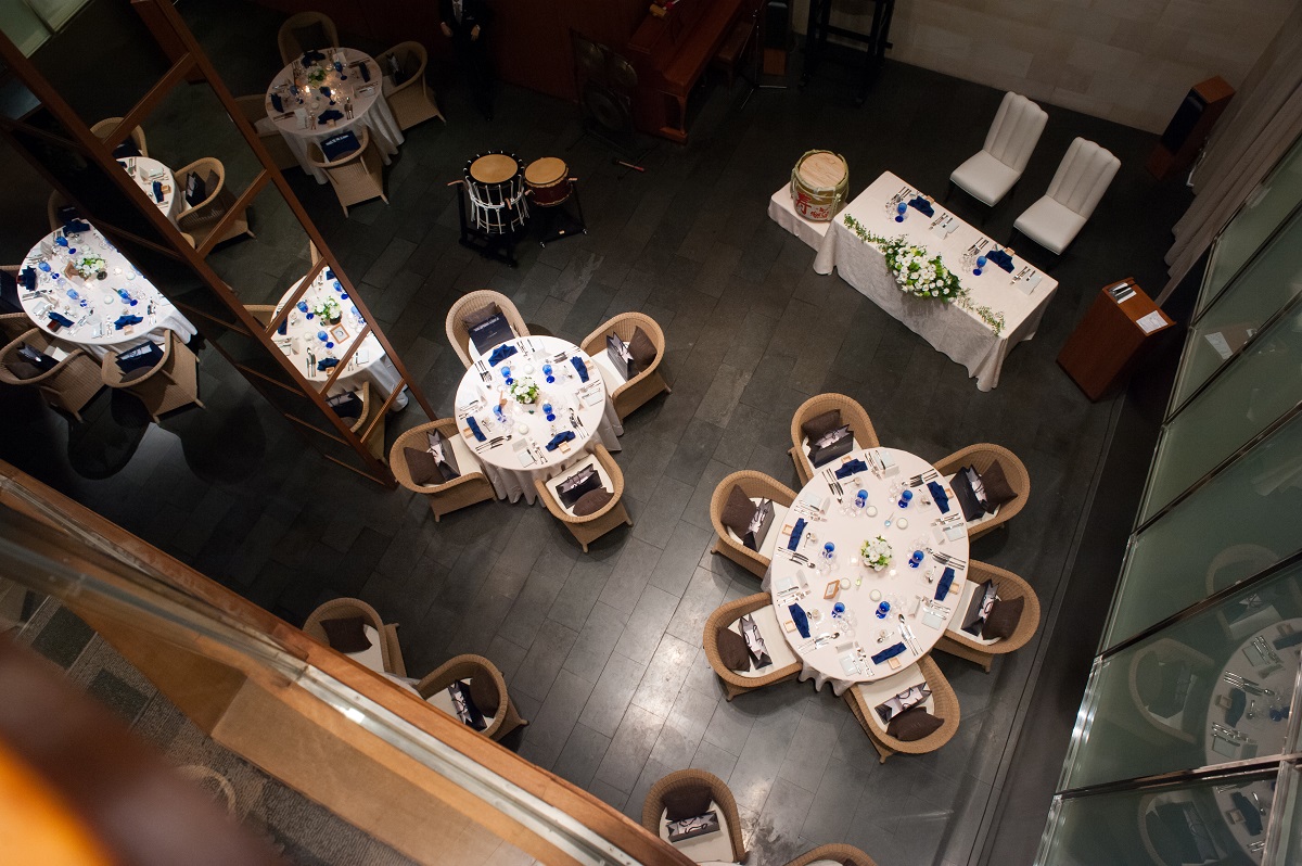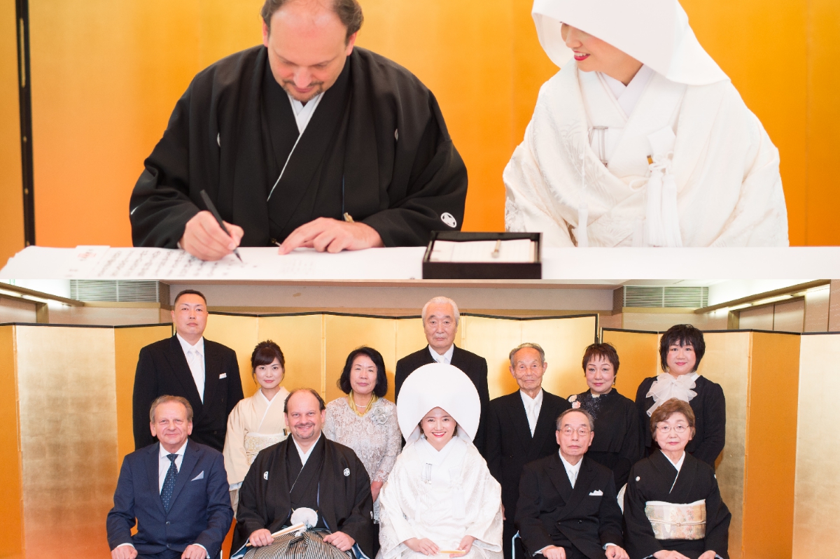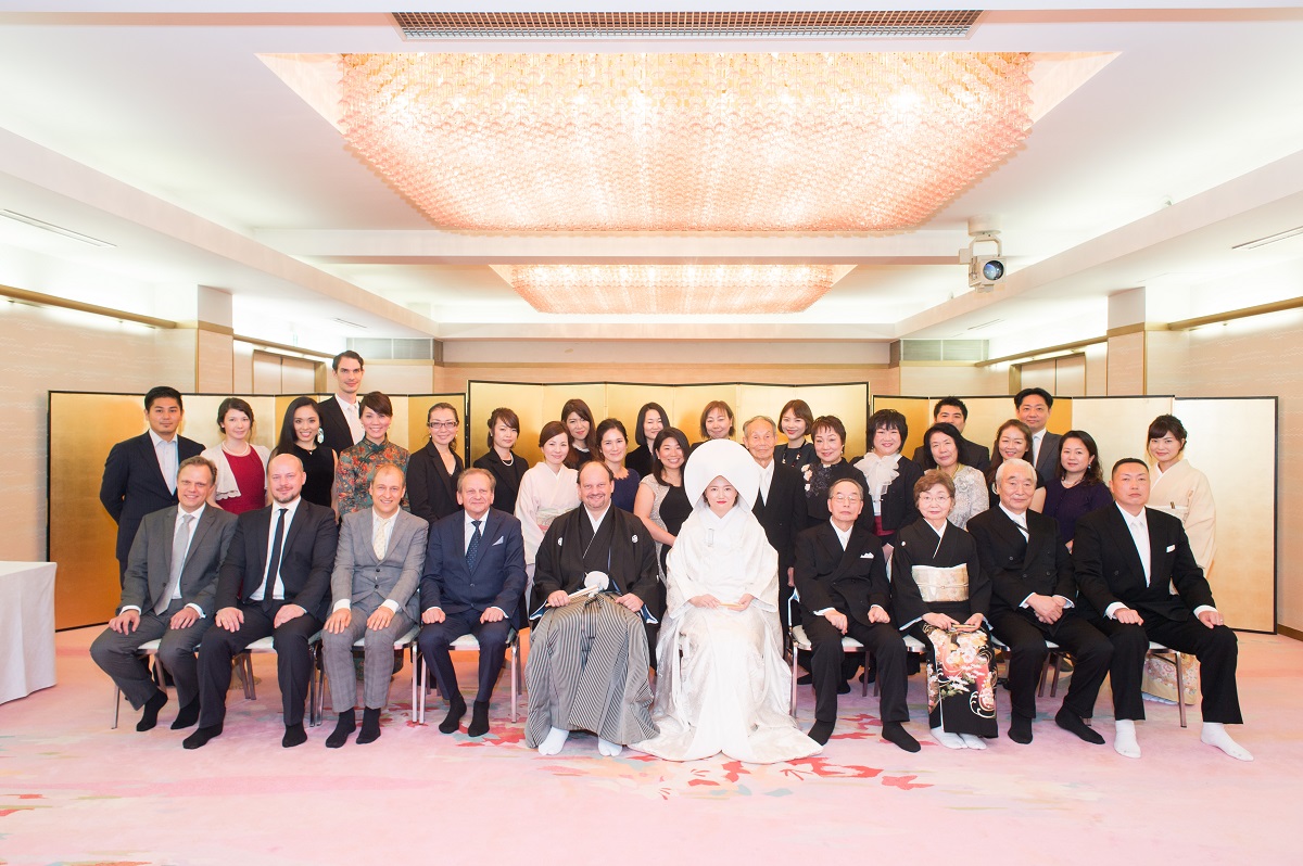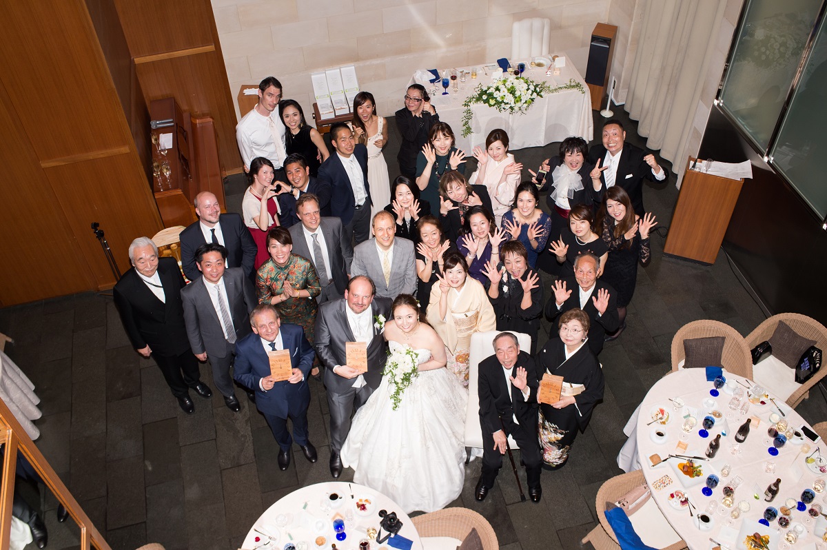 私たちは国際結婚カップルです。私たち2人の希望で湯島天満宮の神前にて厳粛な日本式で式を挙げ、パーティではゲスト全員に自由に動いて貰って 楽しんで貰って笑顔でいて欲しいとのコンセプトがありました。
