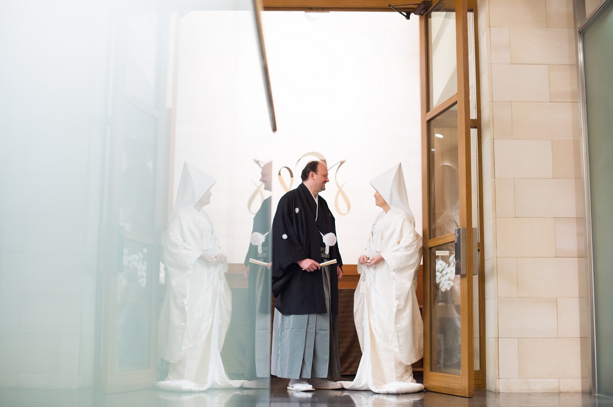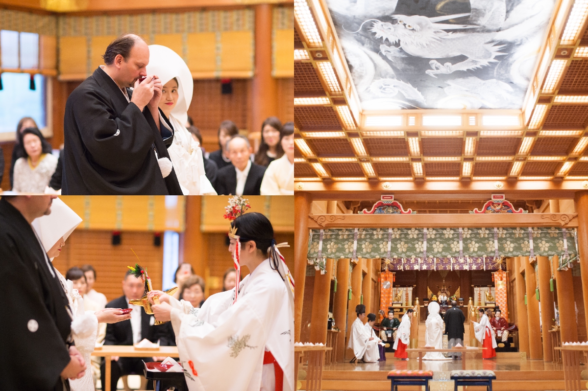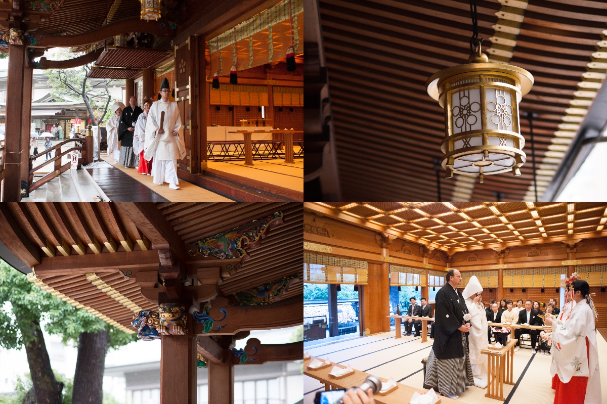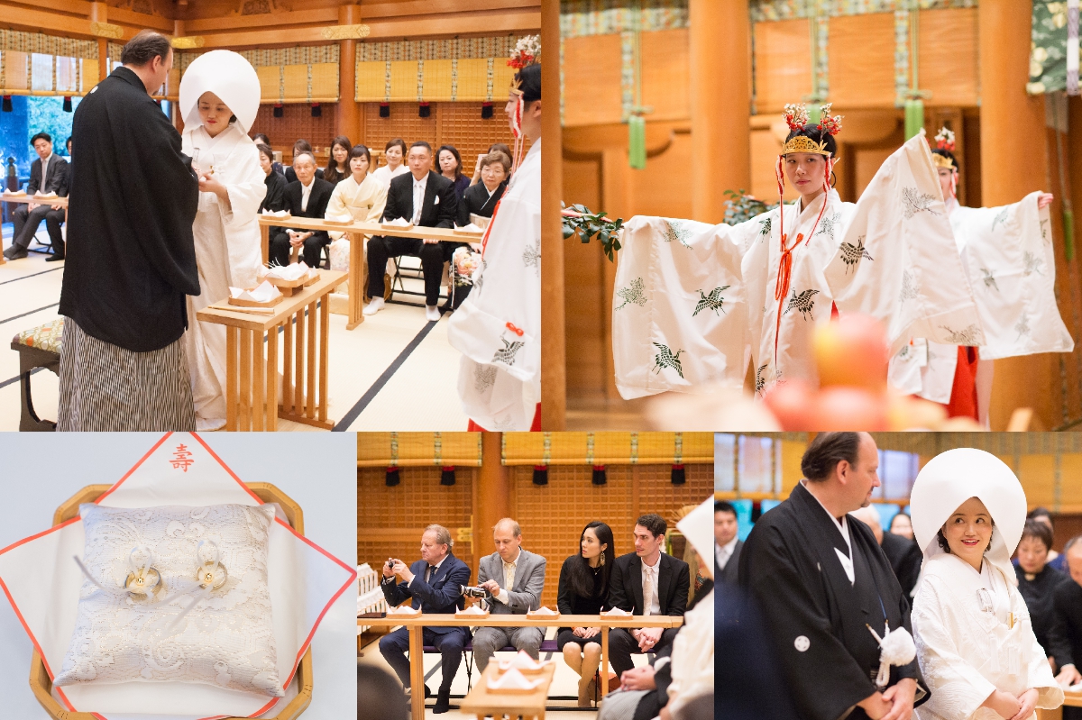 私たちは国際結婚カップルです。私たち2人の希望で湯島天満宮の神前にて厳粛な日本式で式を挙げ、パーティではゲスト全員に自由に動いて貰って 楽しんで貰って笑顔でいて欲しいとのコンセプトがありました。