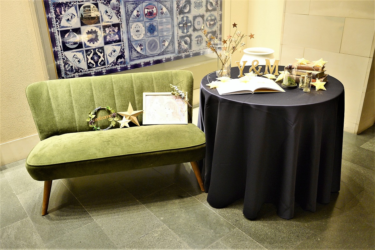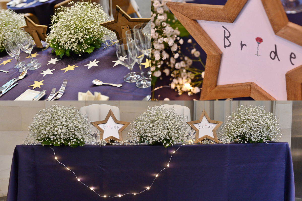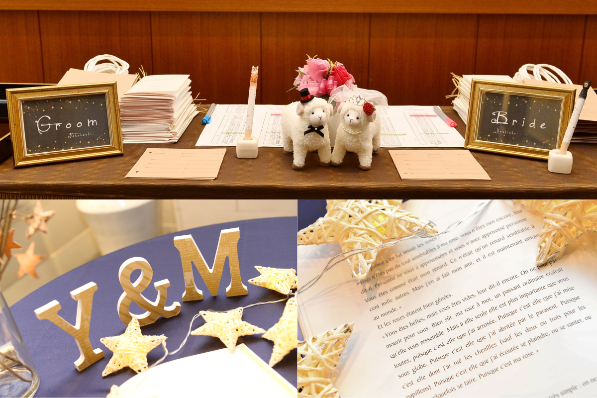 披露宴は星×ナチュラルをテーマにして、星の王子さまをベースに会場のレイアウト、雰囲気を考えました。