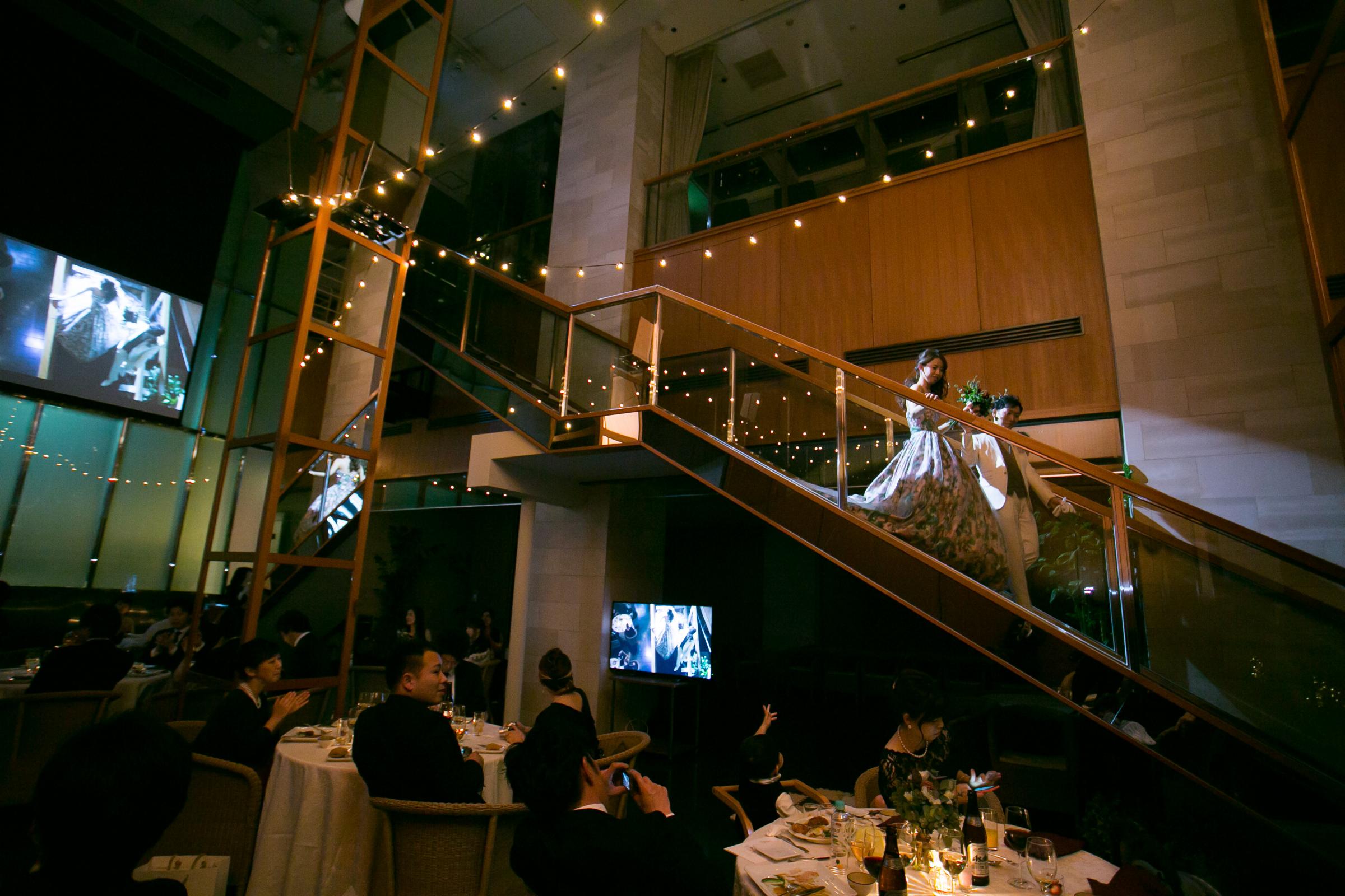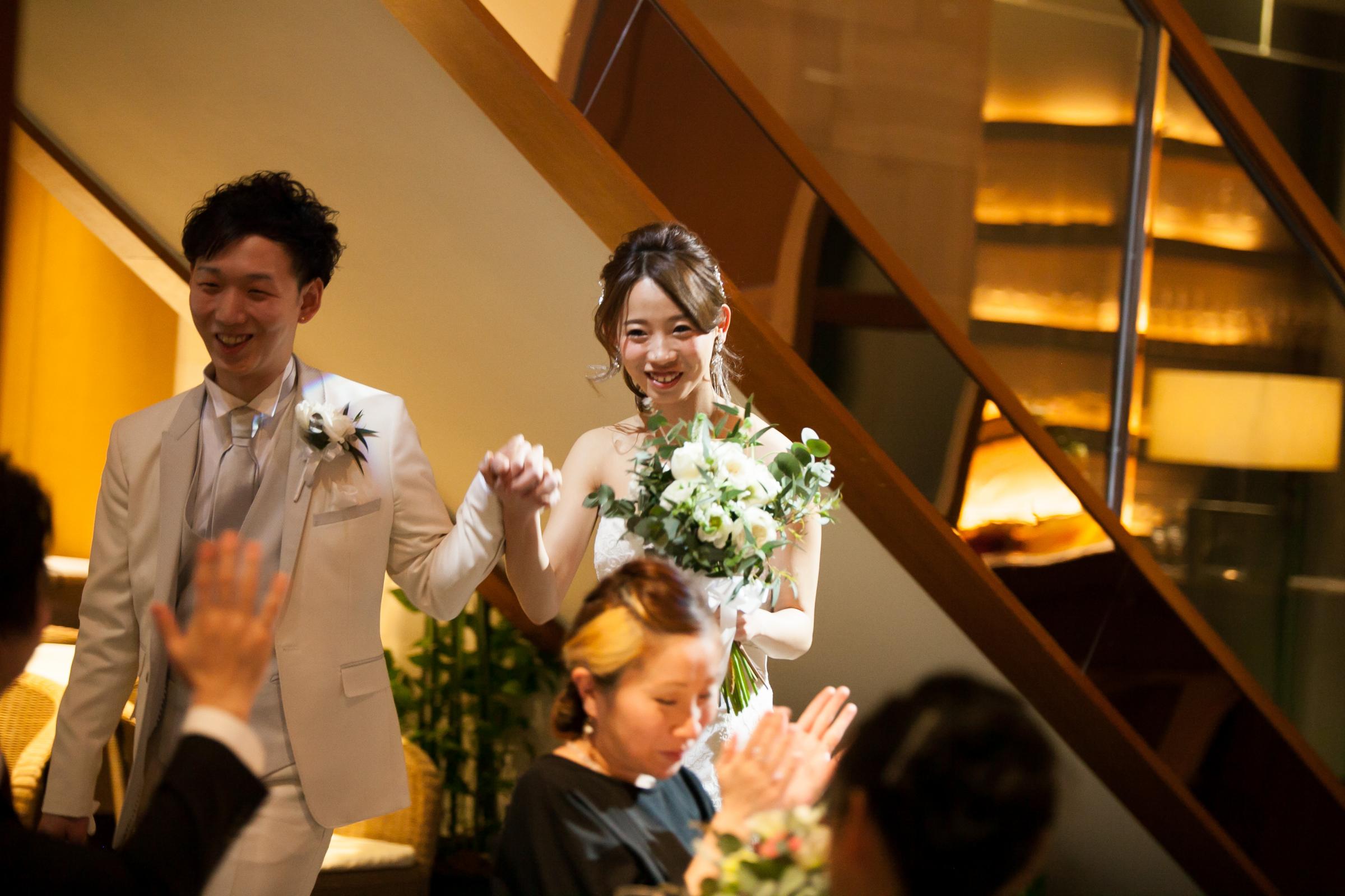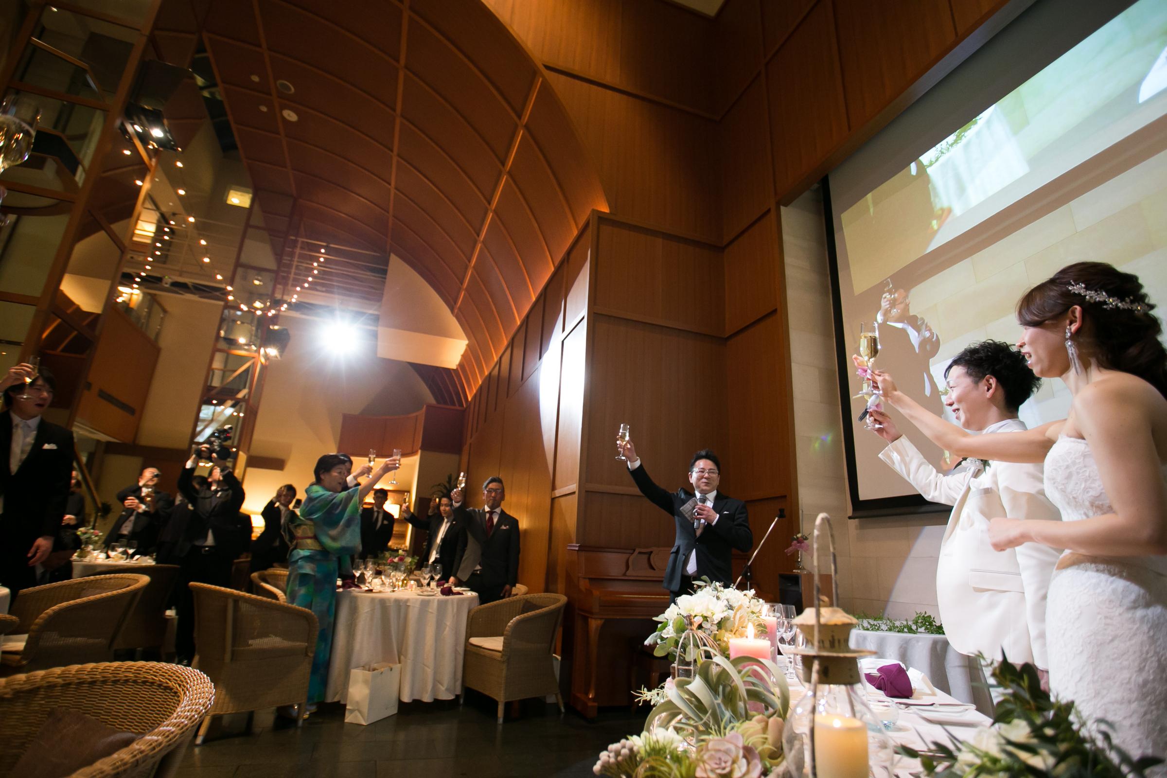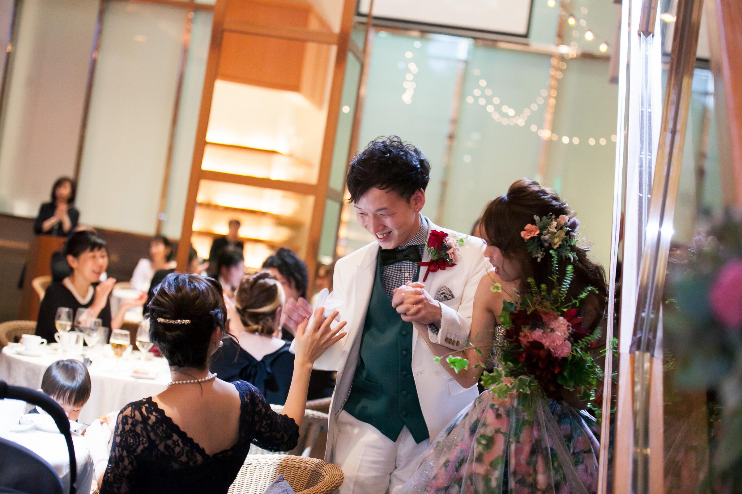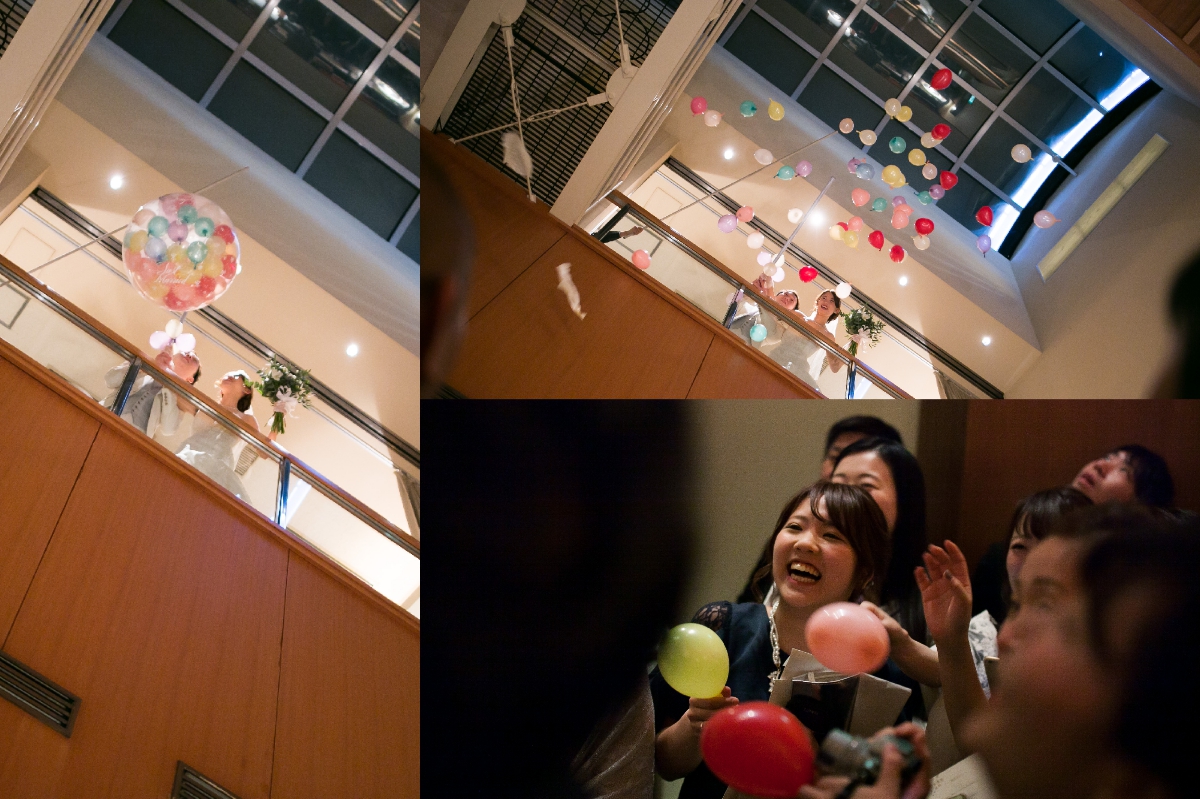 ブーケトスでは女性しか参加できないのでゲスト全員を対象にしたバルーンスパークをしたところ、とても盛り上がり一体感のある披露宴スタートにつなげられたと思います。ファーストバイトでは新郎へのサプライズでビッグスプーンを使用しましたが、一番の盛り上がりで大成功でした。テーブルラウンドのフルーツカクテル作りでは一人ひとりとしっかり言葉を交わせたのでよかったです。