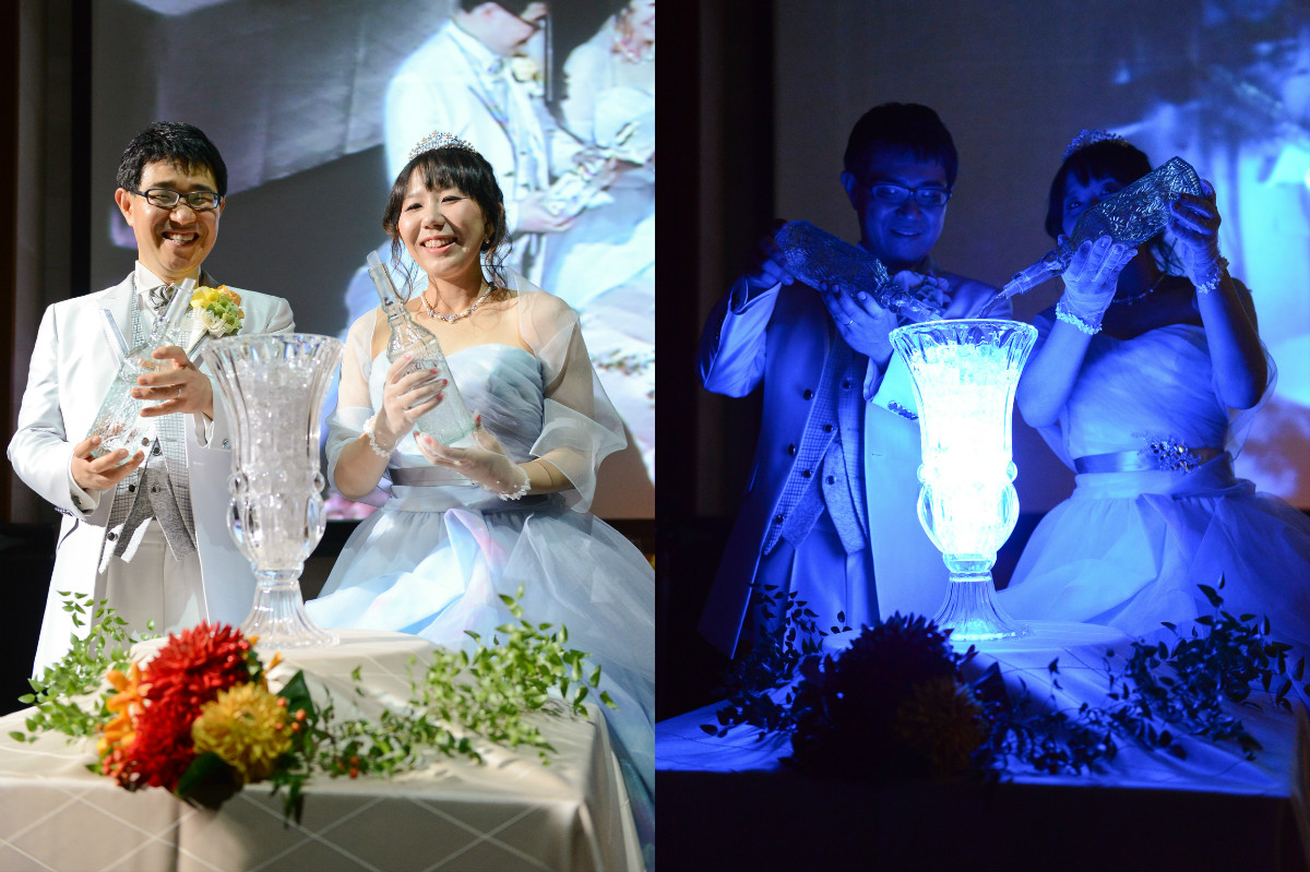 神前式の「水合わせの儀」を現代風にアレンジしたという光る水の演出は、私たちに合っていて良かったと思います。