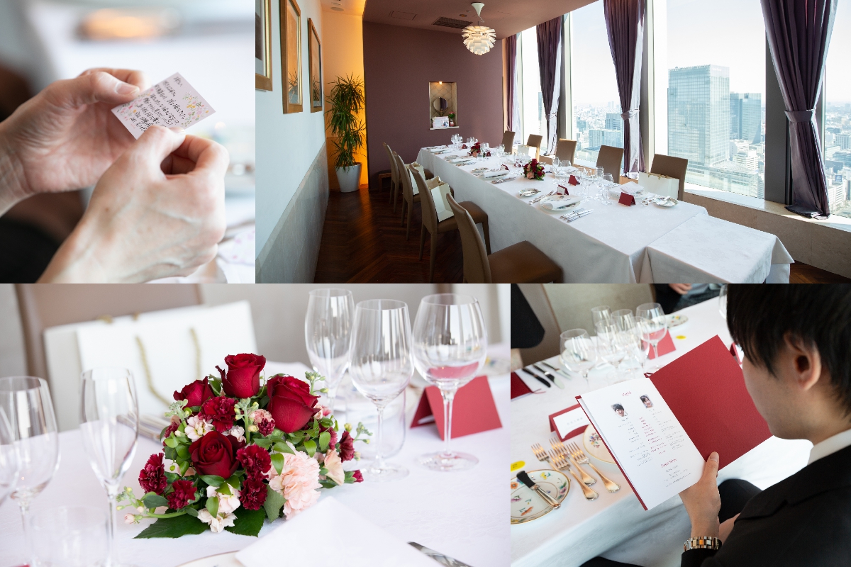 丸ビル最上階ということもあり、景色も最高だと思いました。高級感あふれる店内の雰囲気や店員さんの振る舞いも素敵でした。少人数の式を挙げられる方にはお勧めの会場だと思います。