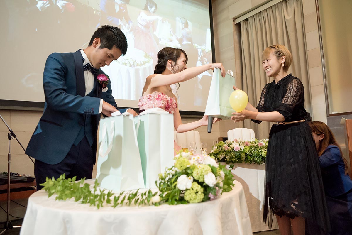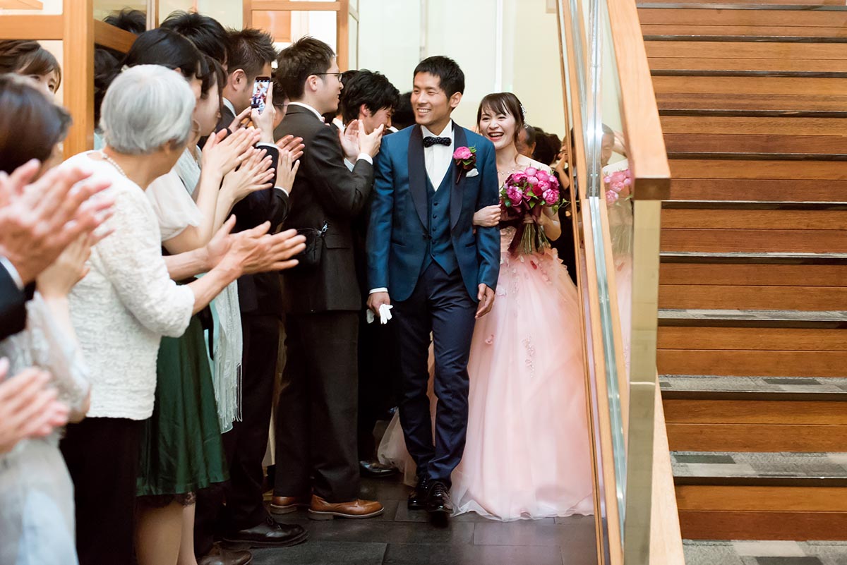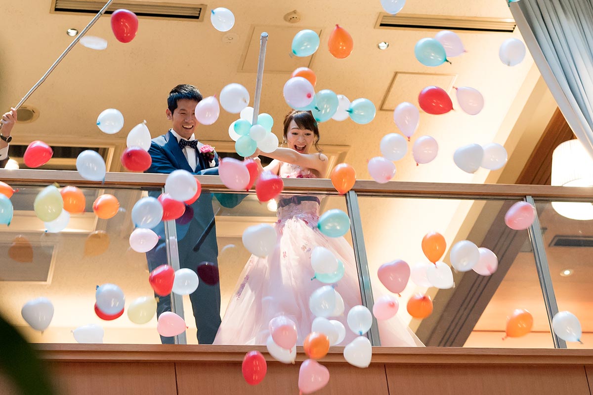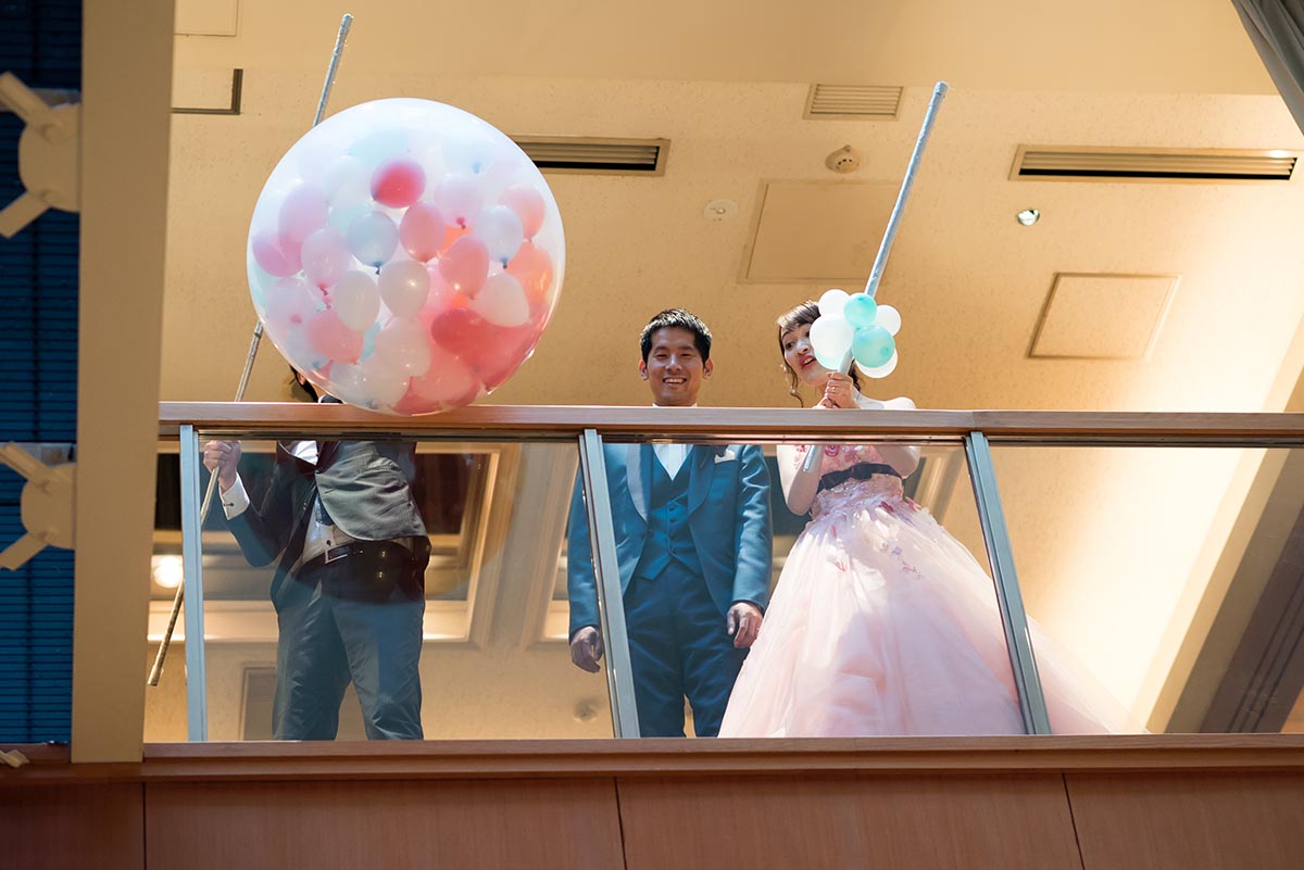 沢山のあります!①階段上からスパークバルーンを実施したこと②友人の生演奏で退場したこと③6月挙式なのでお花は緑を取り入れたこと④神前式にしたこと・・・・①は階段上からバルーンを飛ばして、バルーンの当たりカラー当選者には景品をプレゼントしました。天井が高いラリアンスならではの演出だと思います。②は音楽好きな私たち。生演奏をとり入れたい!という考えと花道退場しては?というプランナーさんからに提案により実現しました。「世界に一つだけの花」で退場し、感無量でした。演奏してくれた友人達も盛り上がって楽しそうでした。