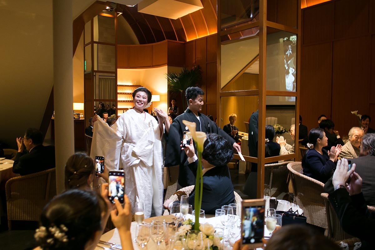 だらだらと時が過ぎていく感じにはしたくなかったので、お料理を楽しみつつメリハリのある披露宴を目指しました。私達らしさを考え、笑いあり涙あり、来てくださった皆様が笑顔でお帰り頂ける空間、演出を目指しました。