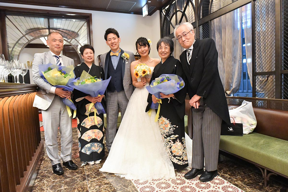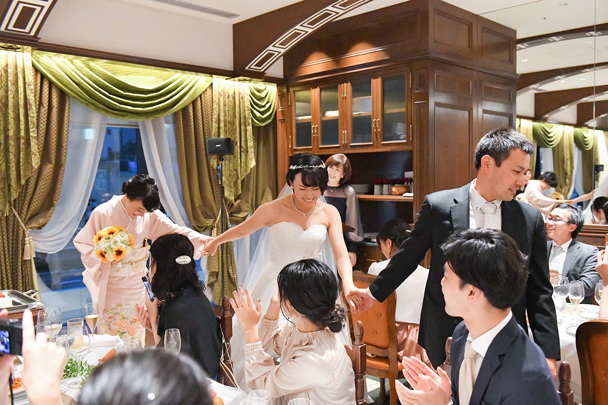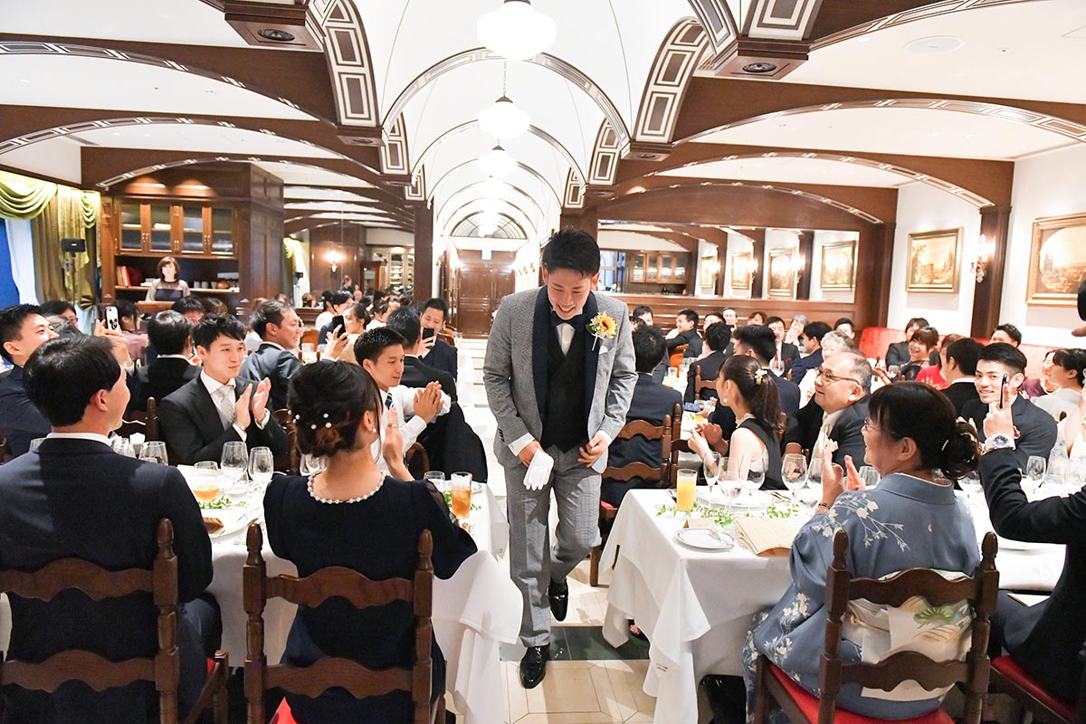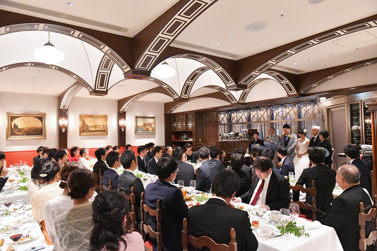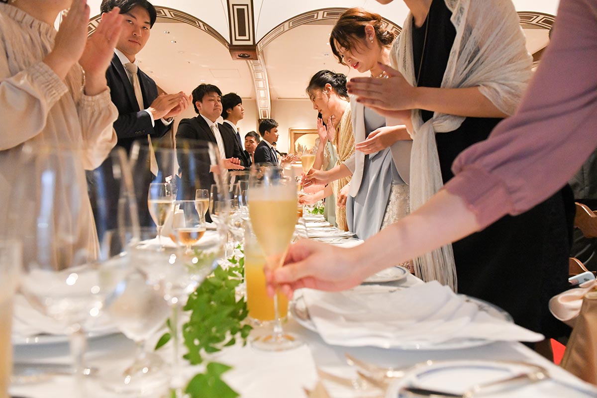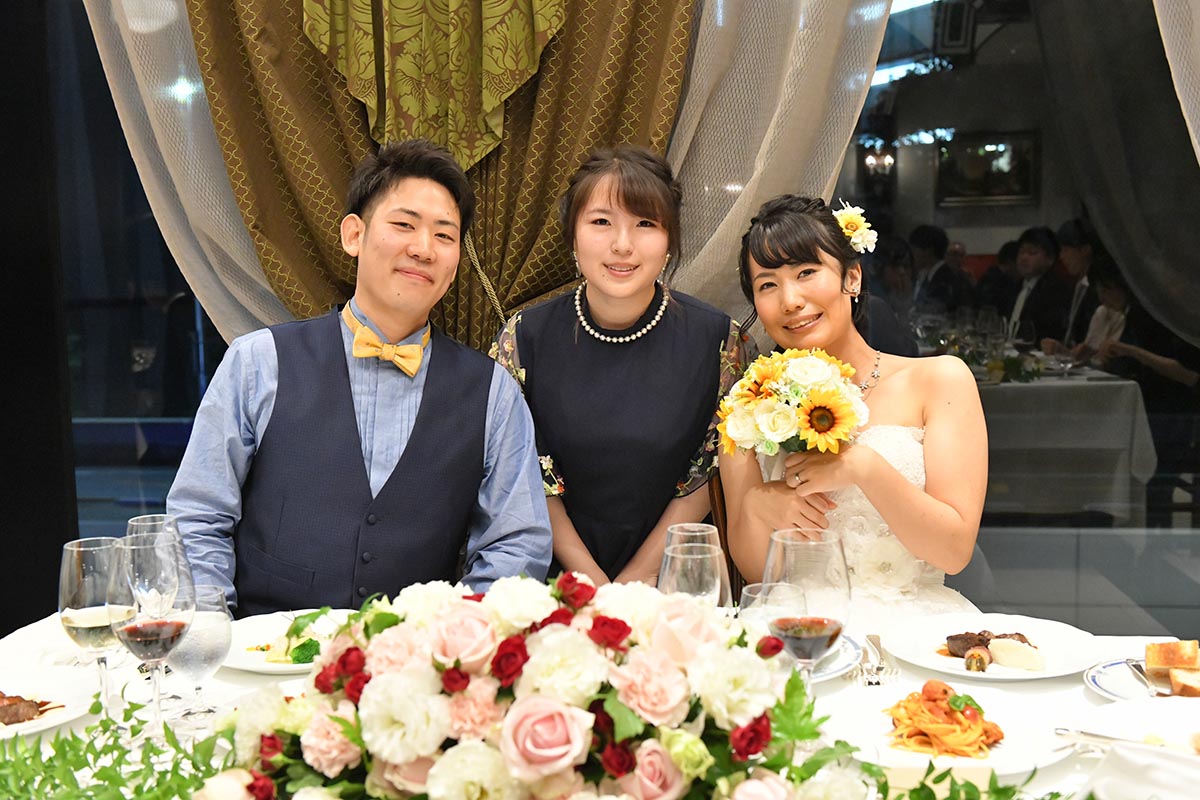 自分たちのお披露目というより、日頃からお世話になっている方達に感謝の意を込めて、料理や飲み物に特にこだわりました。レストランのキャンペーンで、通常より1ランク上の料理のコースを用意して頂けるとのことでしたが、追加料金を出すことでもう1ランク上の料理をお願いいたしました。料理はどれも本当に美味しく、ゲストの方達からも「とても美味しかった」と喜んで頂けました。