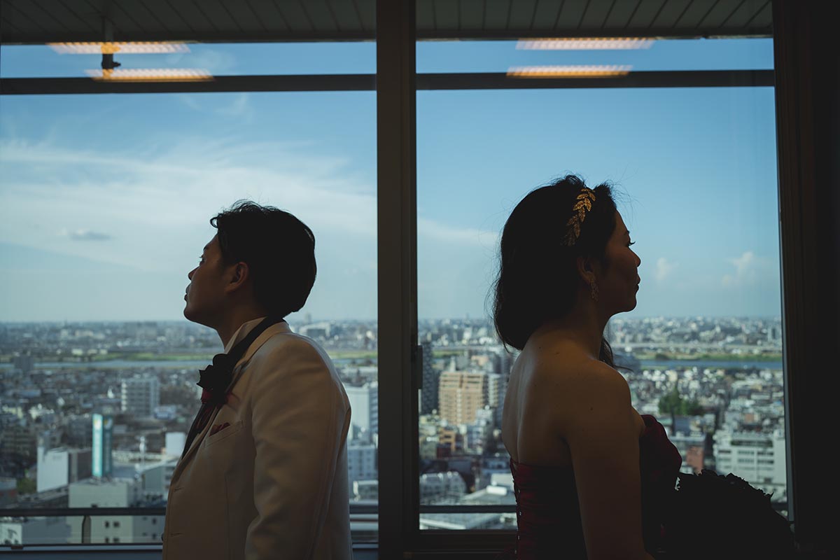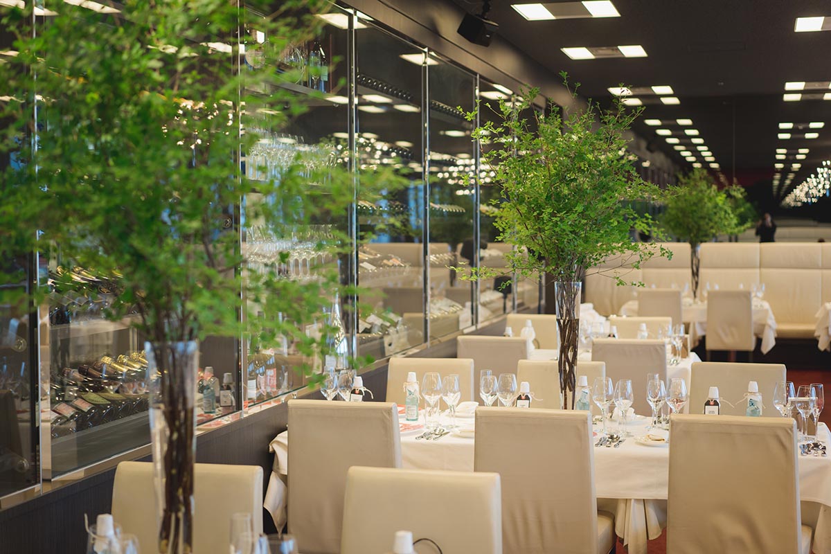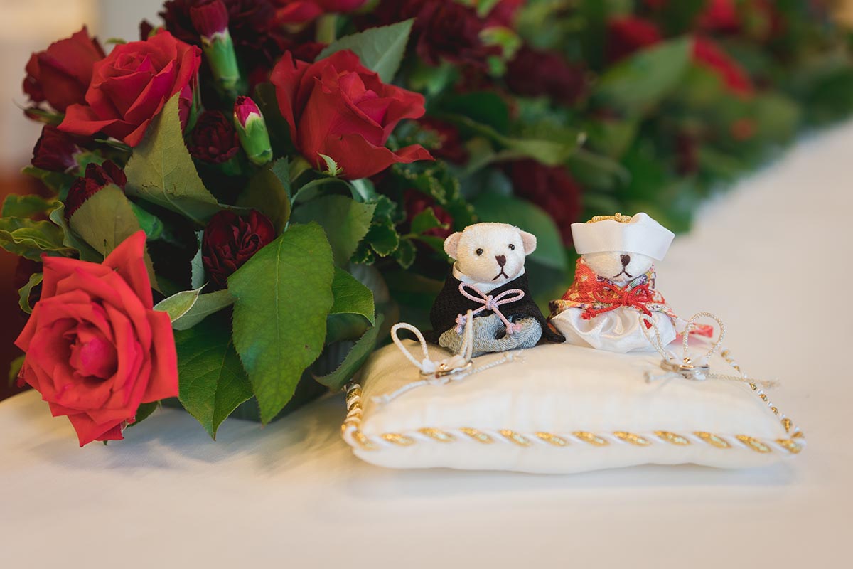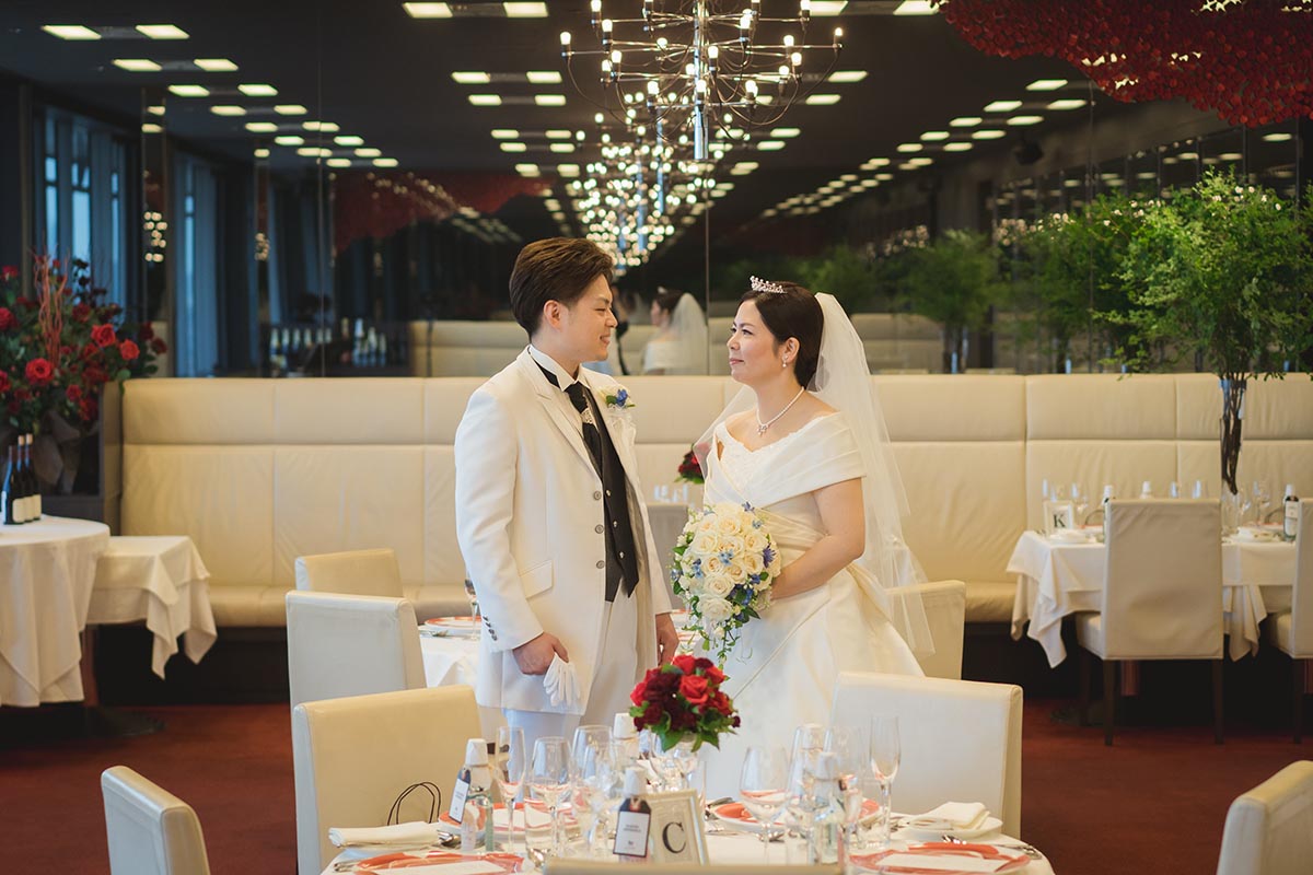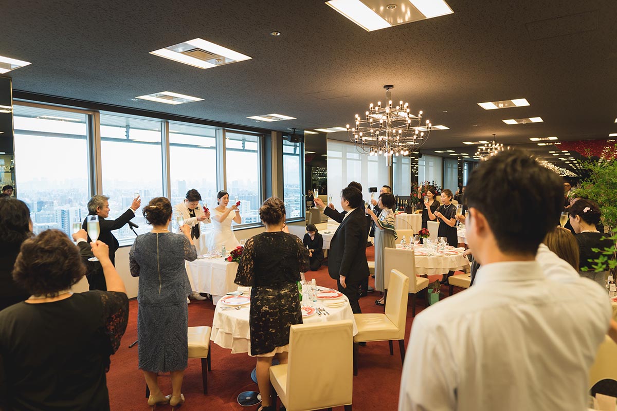 普通の式の流れとは少し変えたかった。テーブルを飾るお花も、緑(新緑)をどうしても加えたかった。夏だし、最高のロケーションのガラス張りの会場なので、清々しい雰囲気を出したかった。