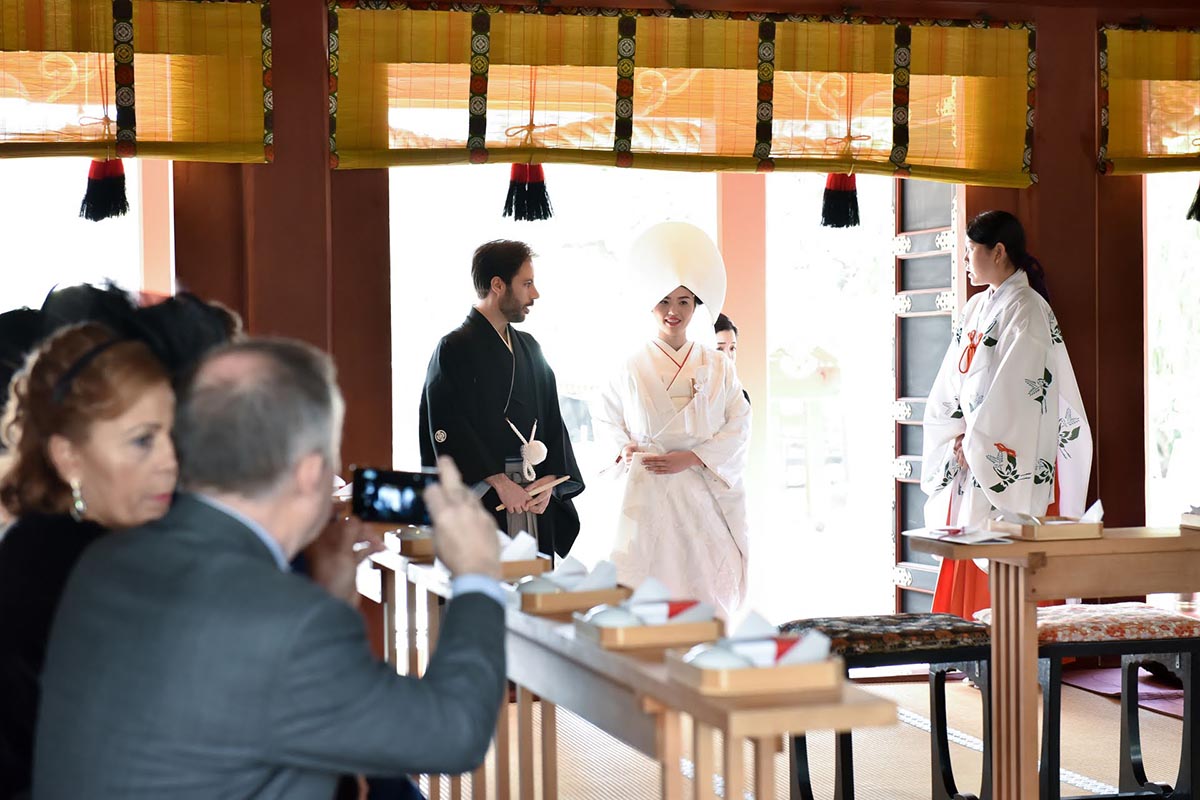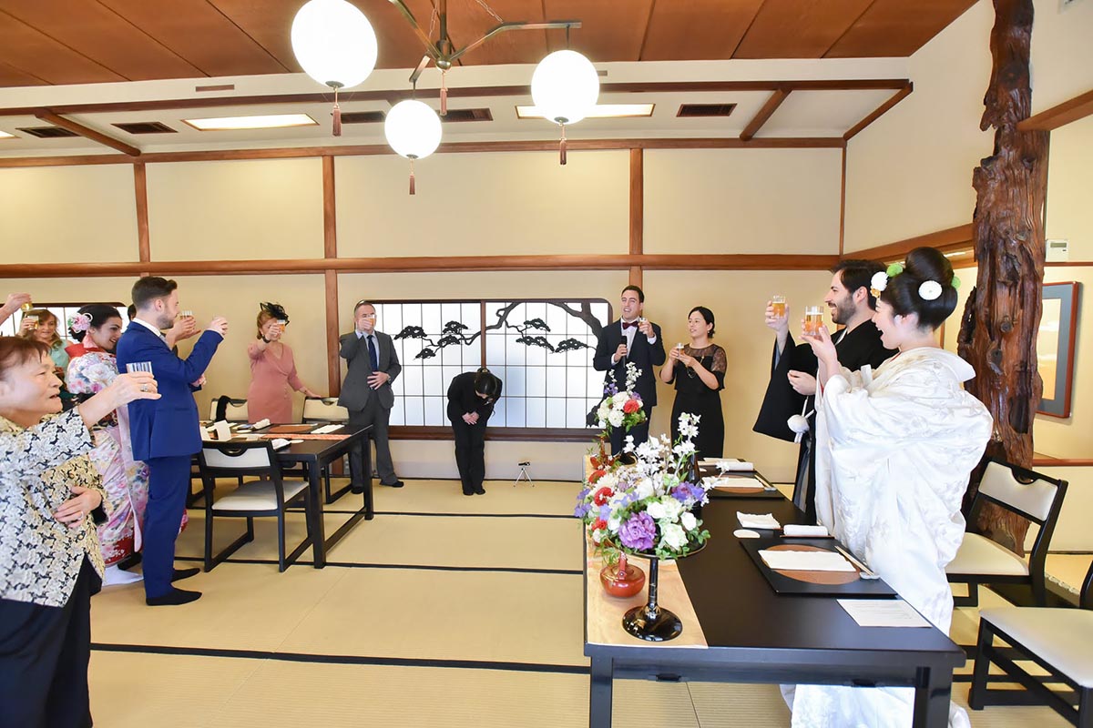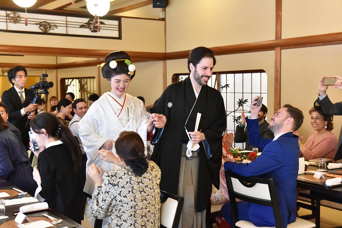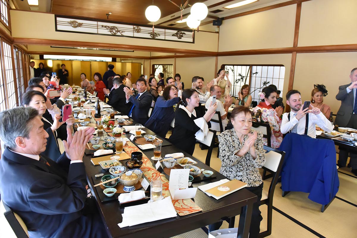 お料理に関しては、私たちの家族は日本人とスペイン人の両方が列席していた為、日本食にあまり慣れていないスペインの家族の為に事前に天ぷらの提供のリクエストをさせて頂いた。その結果、日本人スペイン人の両方に大変好評であった。全体的な感想として、ホテルやチャペルなどの洋式の結婚式が主流ななか、挙式から披露宴から、また新郎新婦の衣装からお食事から、全ての日本を感じて頂くことが出来、新郎新婦はもちろんの事、列席者の方全員に楽しんで頂けたことを大変うれしく思う。