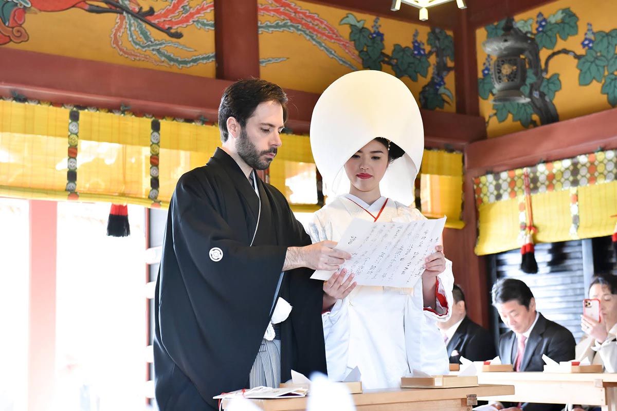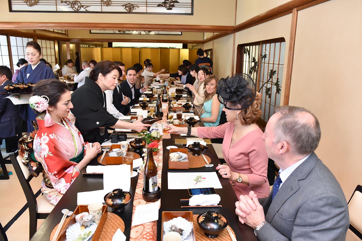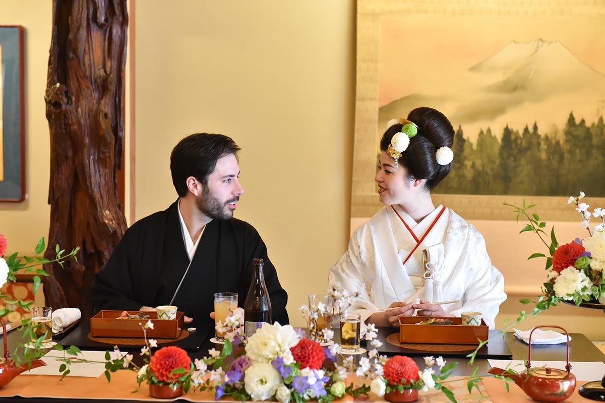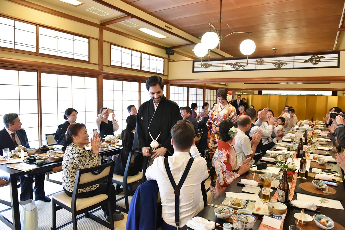 お料理に関しては、私たちの家族は日本人とスペイン人の両方が列席していた為、日本食にあまり慣れていないスペインの家族の為に事前に天ぷらの提供のリクエストをさせて頂いた。その結果、日本人スペイン人の両方に大変好評であった。全体的な感想として、ホテルやチャペルなどの洋式の結婚式が主流ななか、挙式から披露宴から、また新郎新婦の衣装からお食事から、全ての日本を感じて頂くことが出来、新郎新婦はもちろんの事、列席者の方全員に楽しんで頂けたことを大変うれしく思う。