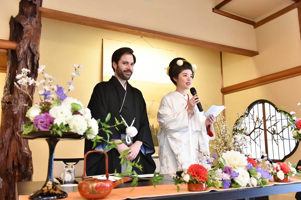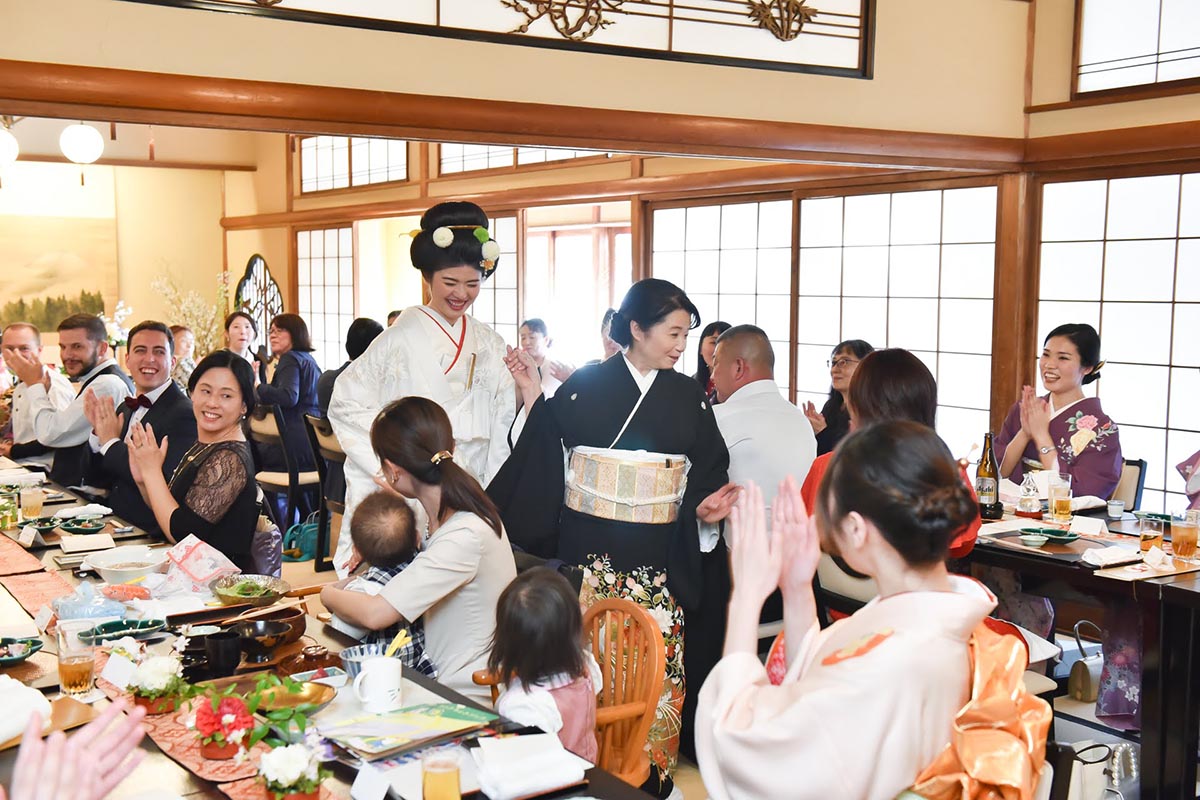 今回はケーキ入刀や芸者さん、鏡開きなどのオプションをつけるか本当に迷ったが、時間的にも予算的にもシンプルにすることで、より列席者間での会話の時間や新郎新婦との写真撮影なのの時間に充てることが出来たため良かった。また唯一のVTR上映も5分程度ではあったが大変好評であり、みんなに喜んでもらえた。そのためポイントとしては、時間に限りがあるため何を一番優先にしたいかを新郎新婦間で決め決定したほうが良いと思う。恐らくみんなが思っているよりも時間はあまりないのが実際にやってみての感想である。