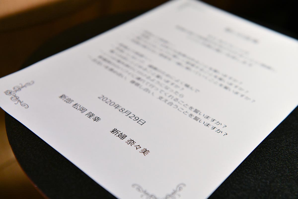 コロナのことがあって式ができるか不安でしたが、無事に式を終えることができ、感染対策をしっかり行ってくださったおかげで、式後も家族皆何事もなく安心しました。ありがとうございました。