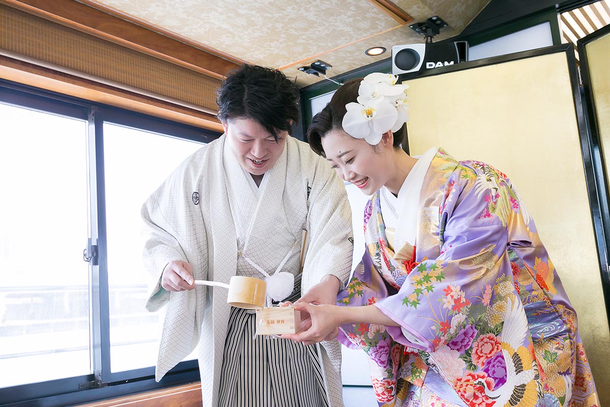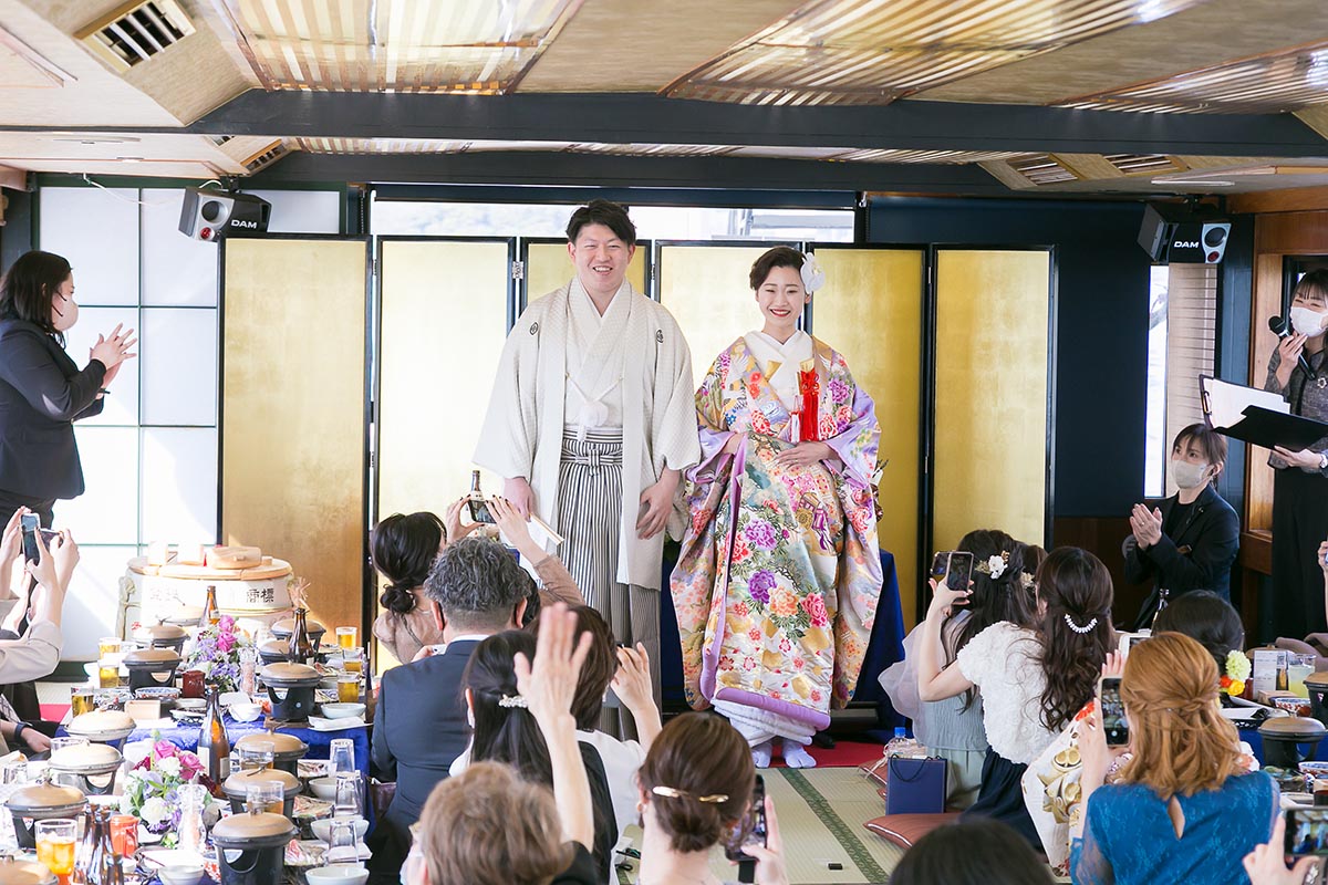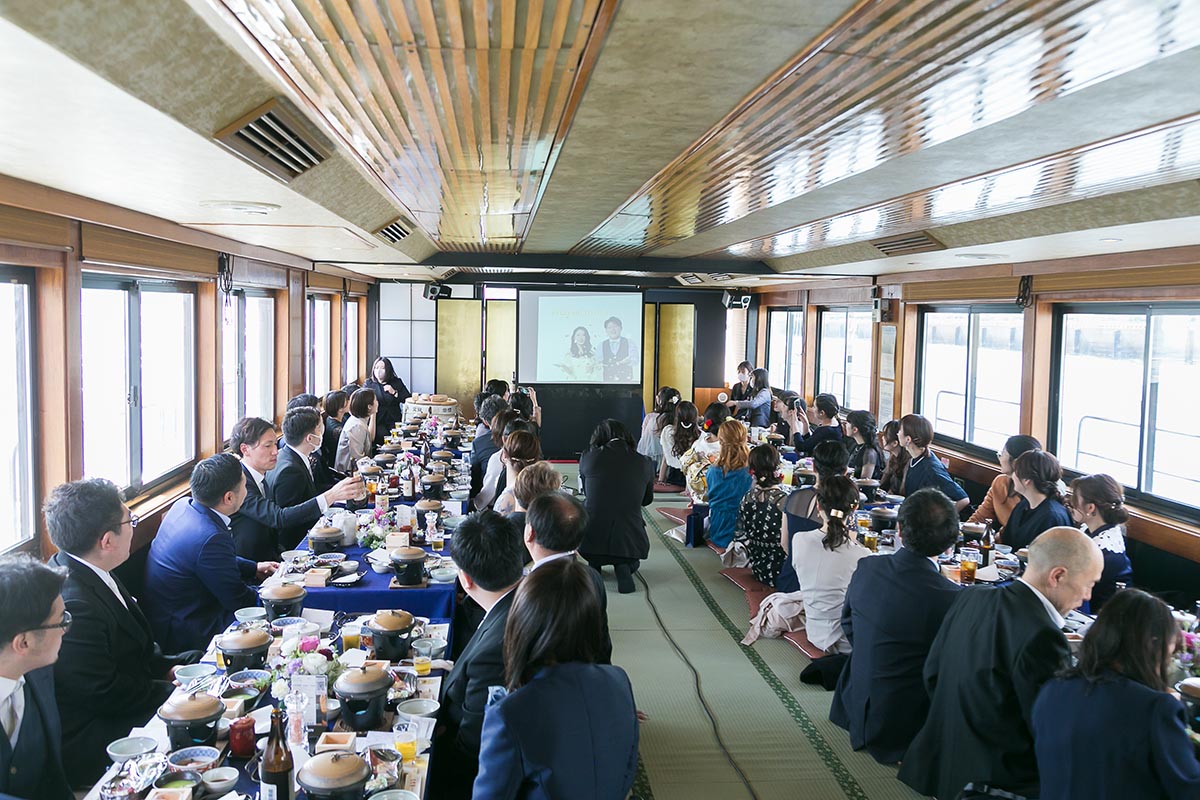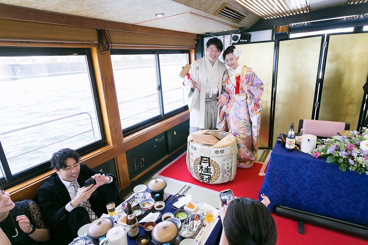 屋形船だったのでどれもマッチしていて、趣のある雰囲気になったと思います。