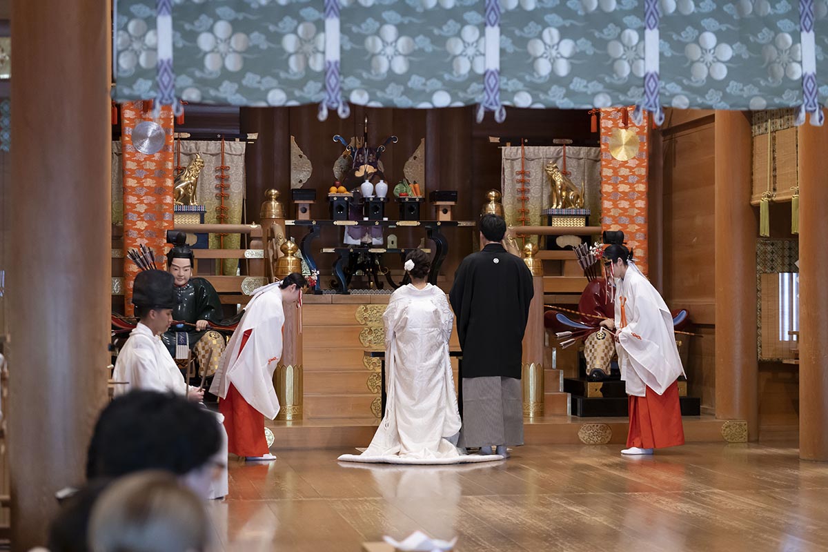 式場を探す前から和婚にすることは決めていましたが、その中でも湯島天満宮にしたのは雰囲気の良さと、式の始終をたくさん記録に残したかったので撮影などに寛容だったこと、式場は将来子どもが生まれた時のお宮参り先にしたいと思っていたため、