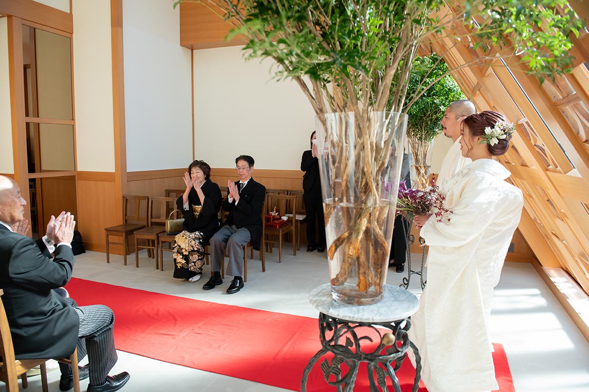参列して下さる席を少人数なので向かい合わせにできた事も全員の表情を見る事ができ、良かったです。