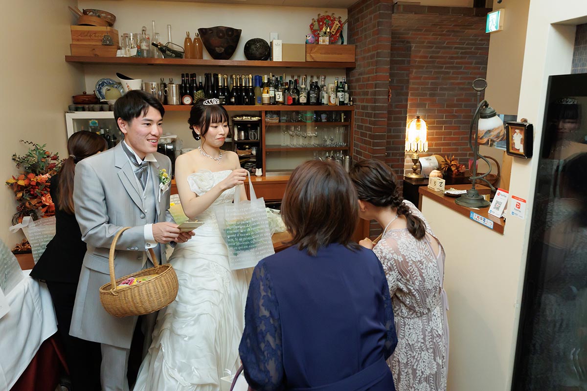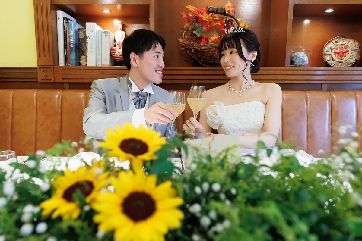 また、会場は妻が好きな種類の花を中心に用意いただき、夏の季節らしいひまわり等も用意していただきました。ゲストの方々へもお土産として渡すことができたので良かったです。