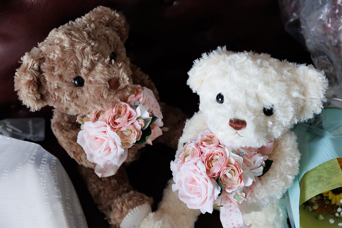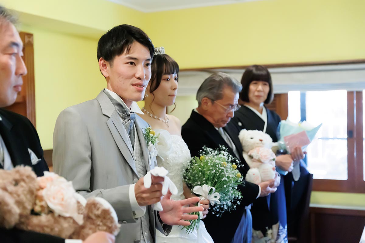 特に両親にはしっかりと感謝の気持ちを伝えたかったので、手紙朗読の際に新郎新婦の誕生時の体重と同じ重さのクマのぬいぐるみを用意することにしました。