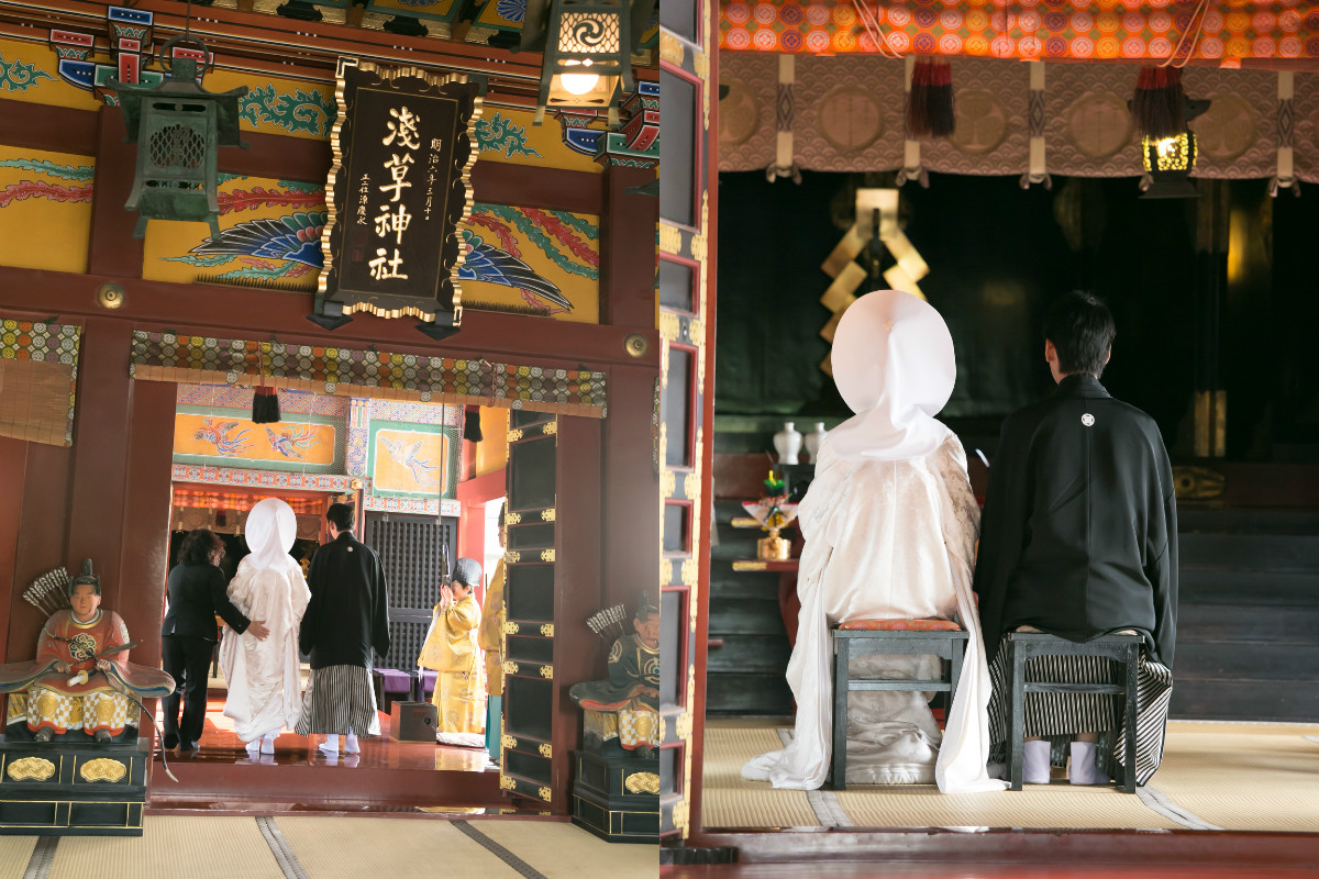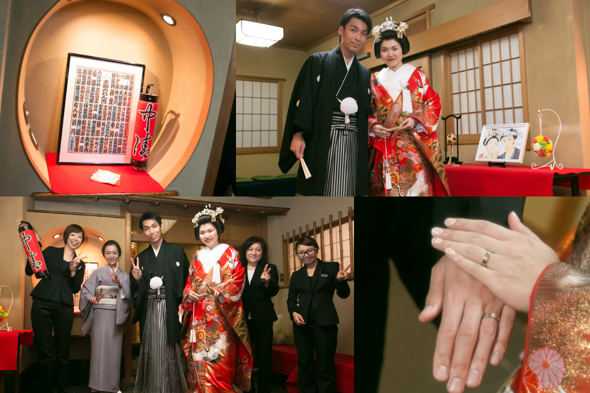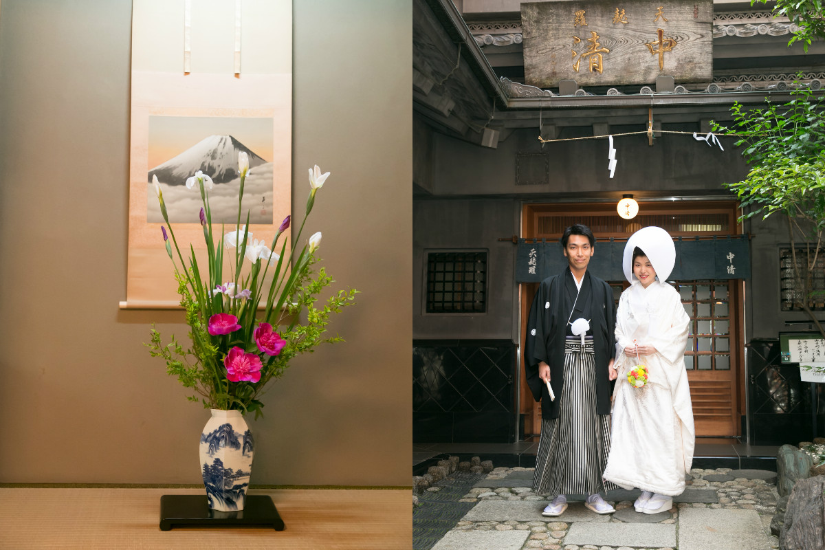 親族だけの少人数の式でしたので、会場が限られていたのですが、その中でも中清さんは浅草の観光スポットの真ん中にありながら静かな雰囲気でしたし、中庭と池があって風情があり、和装で写真を撮ったら素敵だなと思う所が多く、和婚に相応しい場所だと思いました。いただいた天ぷらもおいしく、