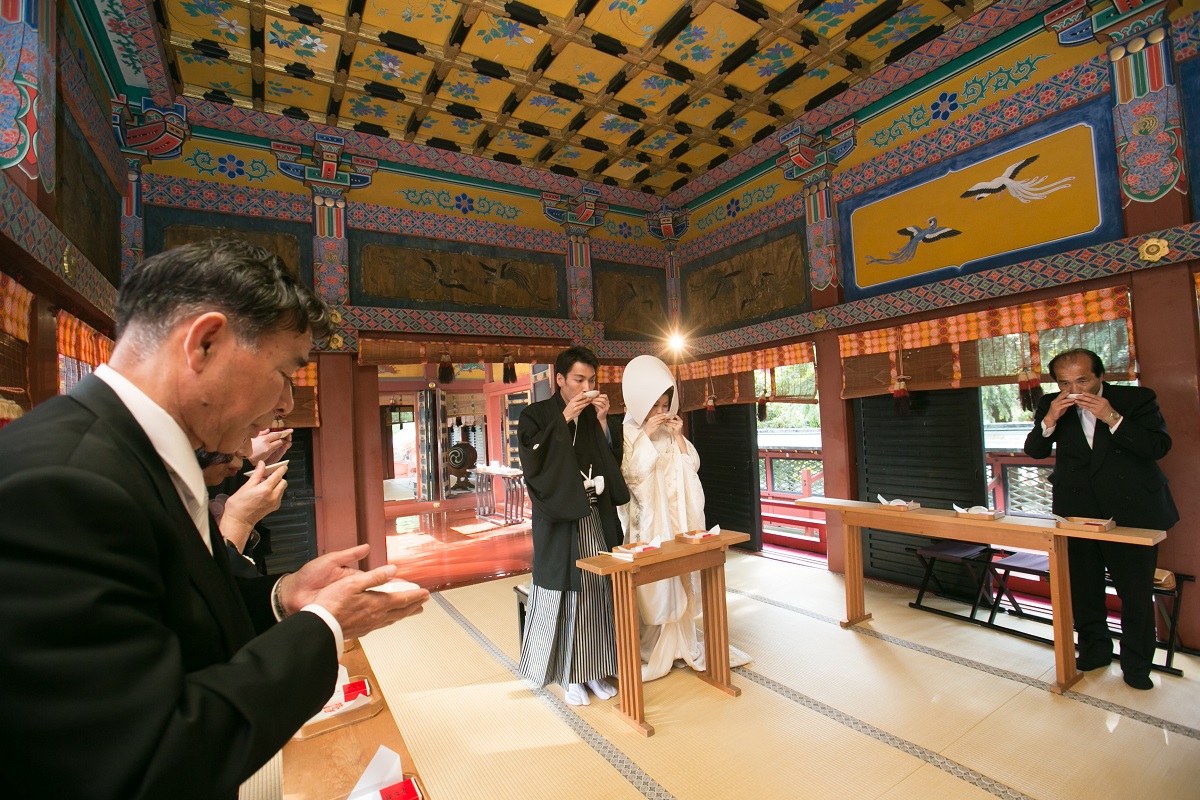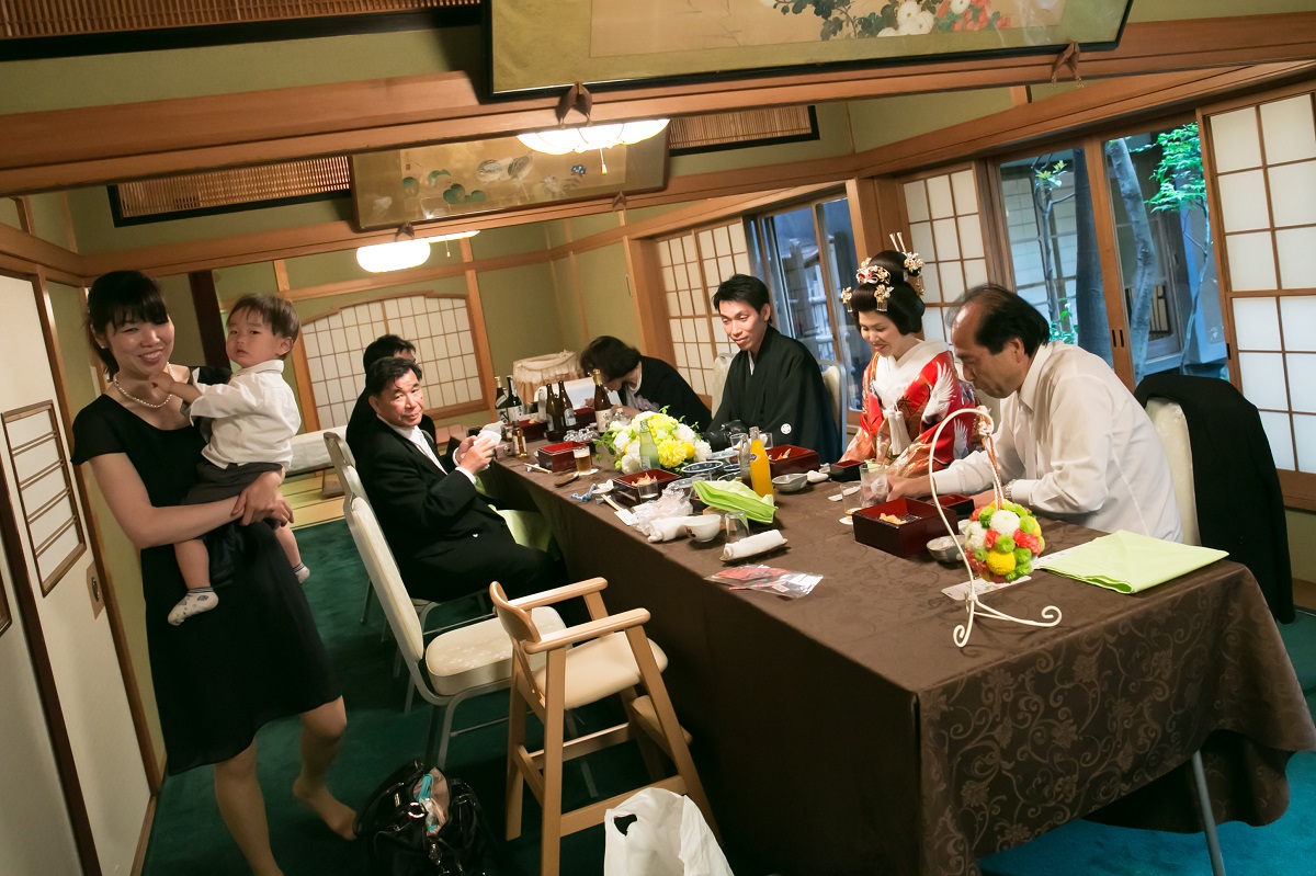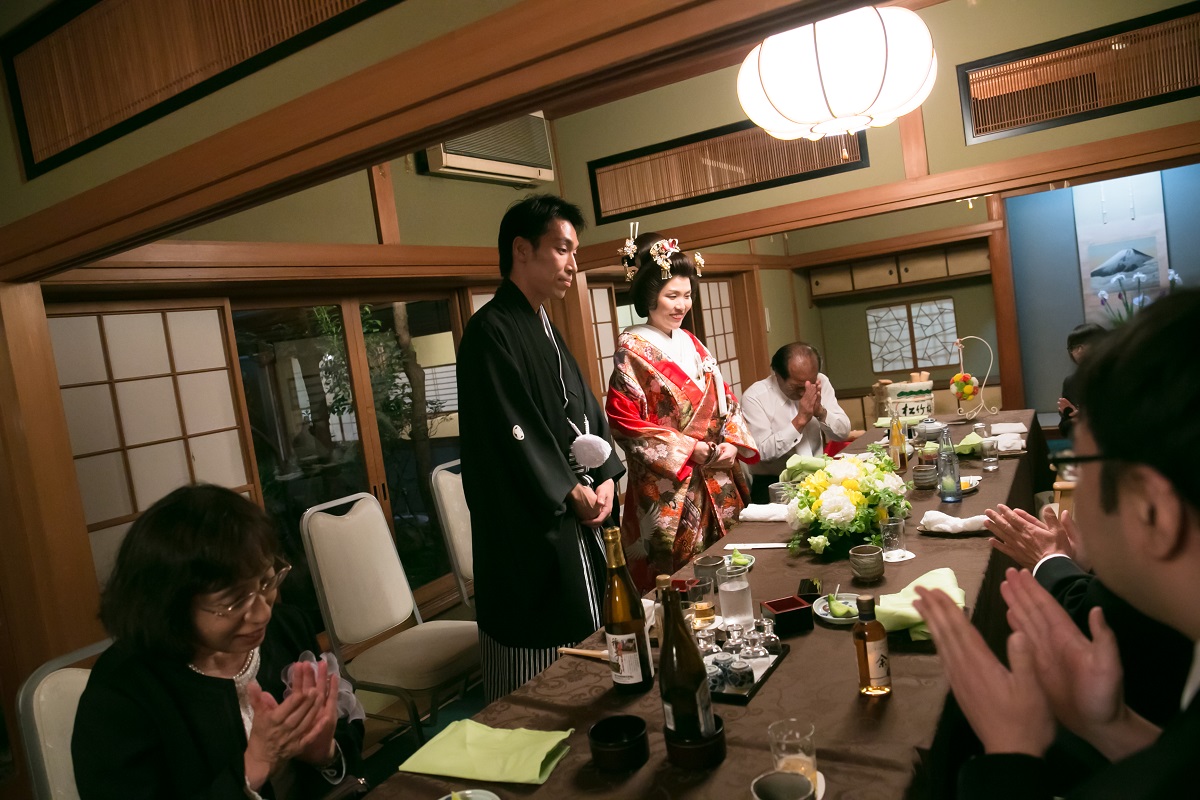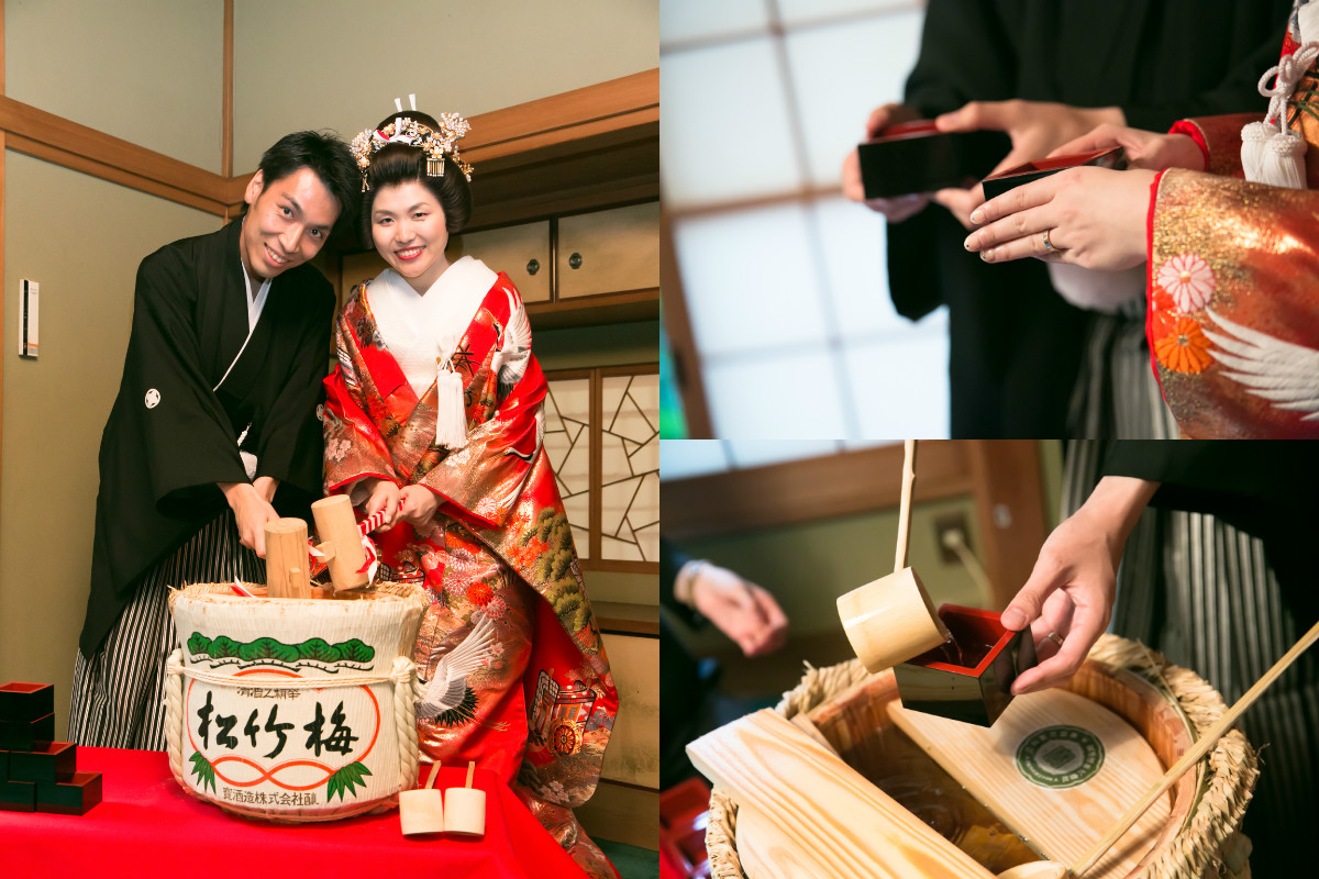 浅草といえば人力車。着物と人力車はとても絵になると思います。当日は中清さんから乗車して見送っていただきました。GW真っ只中で人が多かったのですが、見ず知らずの本当にたくさんの皆さんが「おめでとう!」と声を掛けてくださったり手を振ってくださったりとても暖かい気持ちになり、とても良い経験になりました。また、和婚ということでケーキカットではなく鏡開きをさせていただきました。人数が少なくてお酒が余ってしまいましたが中清の皆さんがビンに詰めて下さったりと本当にお世話になりました。もし浅草で式をあげる際はぜひ花嫁道中して下さい。