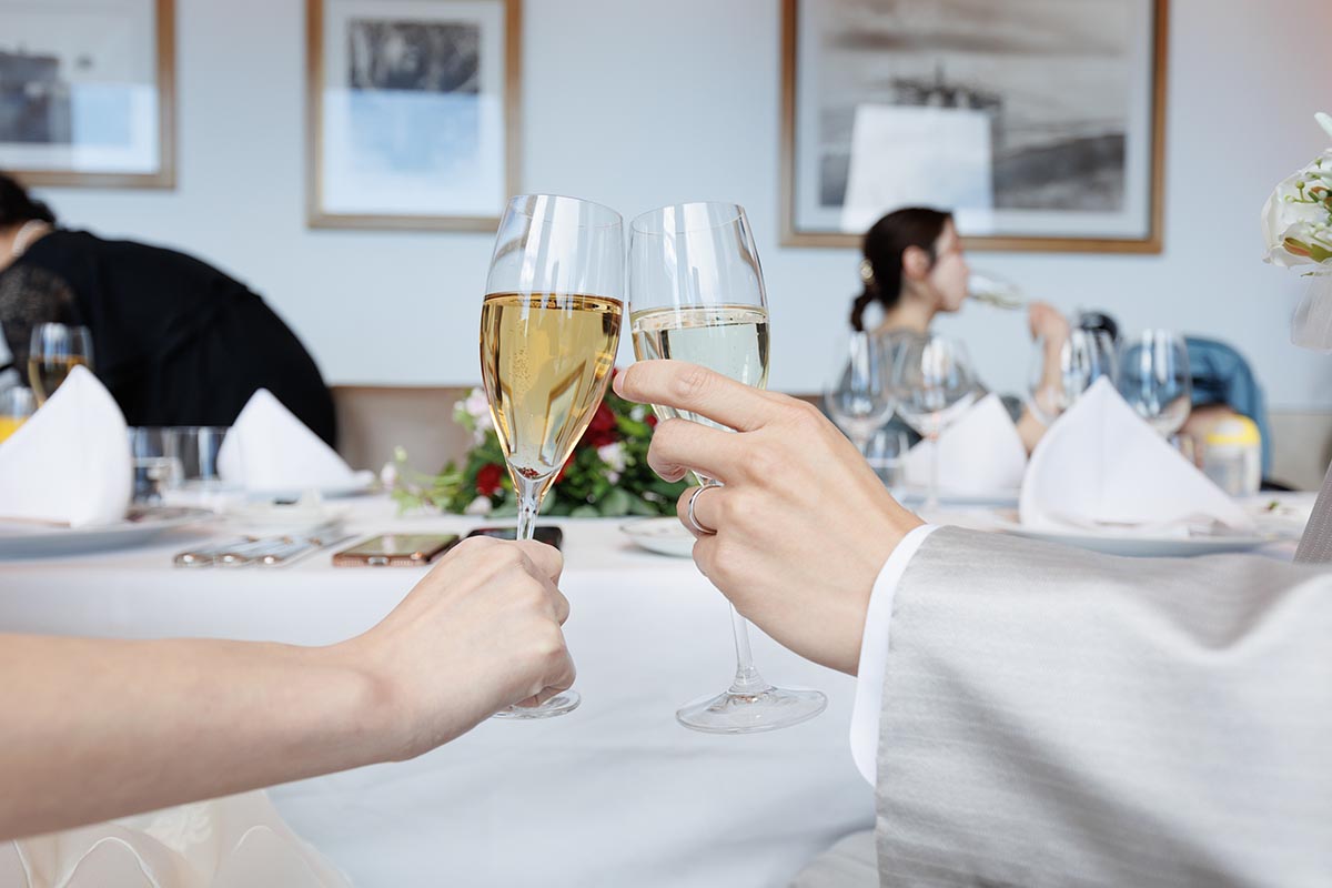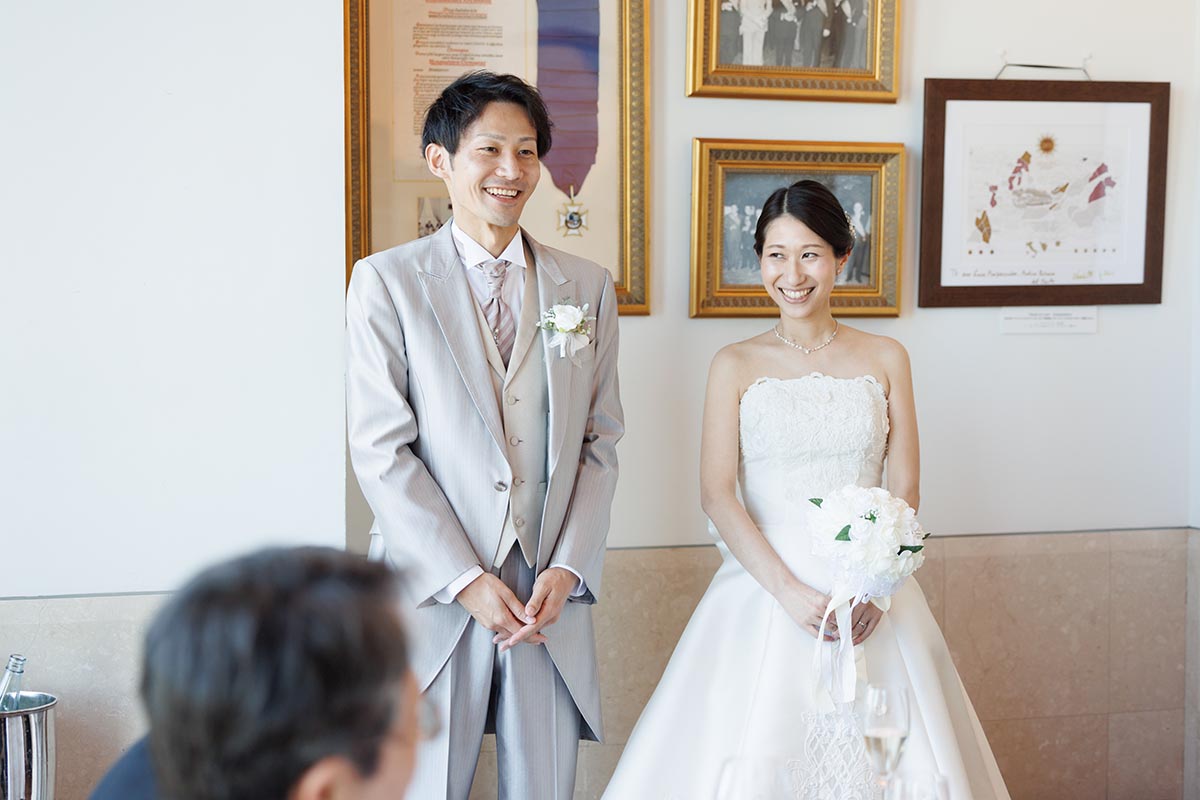 そしてなんと言ってもお料理がとても美味しく、会場の雰囲気や会場から見える外の景色もとても素敵で、私達がイメージする結婚式にぴったりだったからです。ゲストにとって会場へのアスセスも良かったことも理由の一つです。見学に行った他の会場もとても素敵でしたが、私達にとっては全てにおいてこの会場が一番で、ぜひここで式を挙げたい!と思い、決めました。