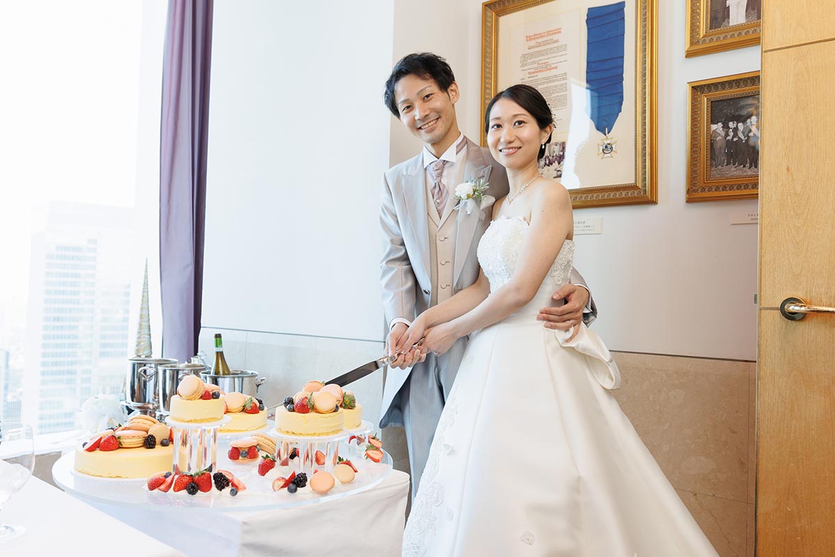 一度訪れたことがあったため、お料理が美味しいことは分かってはいましたが、やはり本当に美味しかったです!元々のプランではお魚料理のみないコースでしたが、ぜひフルコースを楽しんでもらいたいと思い、1つランクアップしたコースとしました。ウェディングケーキも、こちらのレストランでは一般的なウェディングケーキとは異なり、可愛いマカロンケーキを出していただけるので、見た目も可愛く写真も映えますし、味もとても美味しかったです。