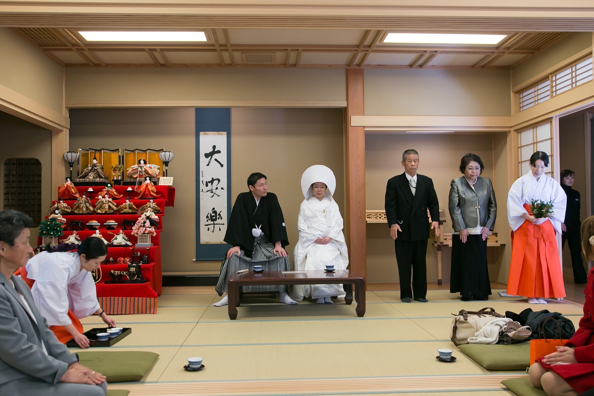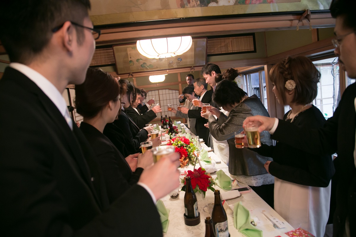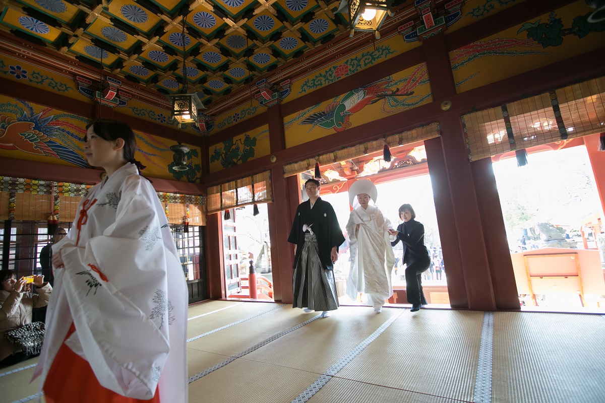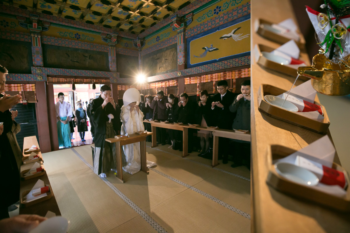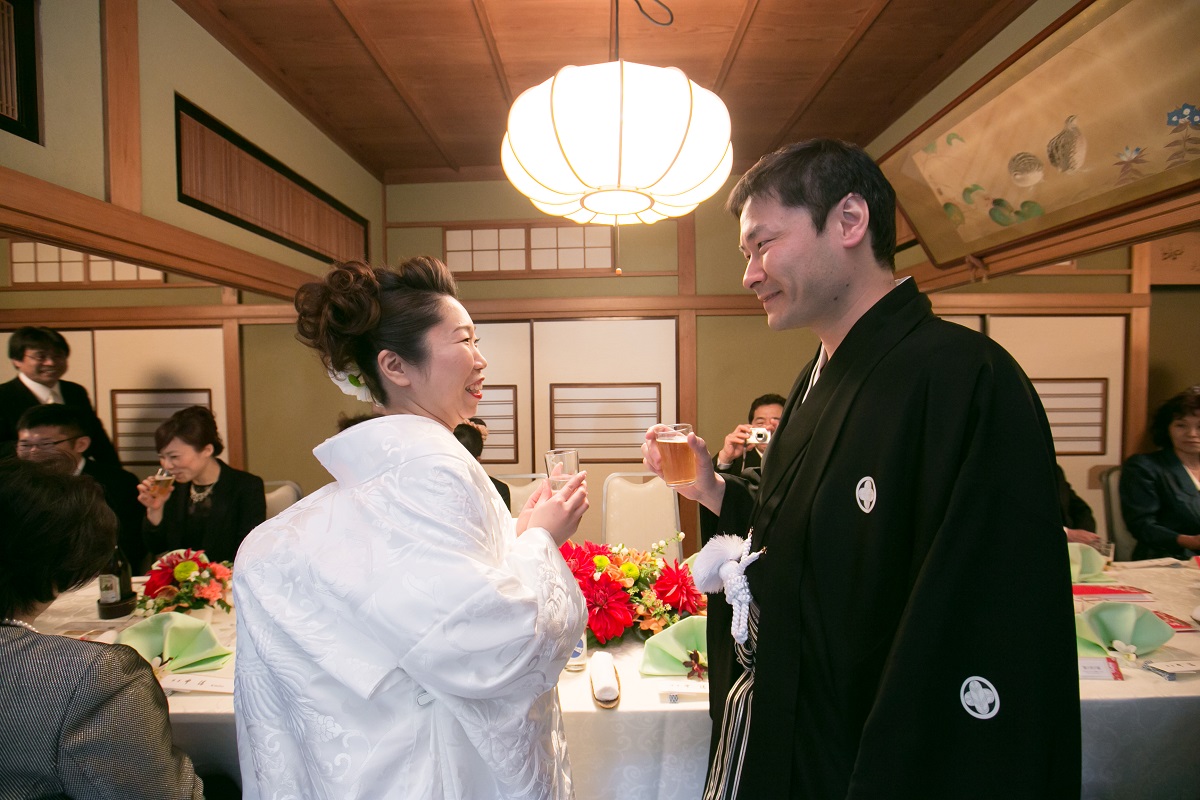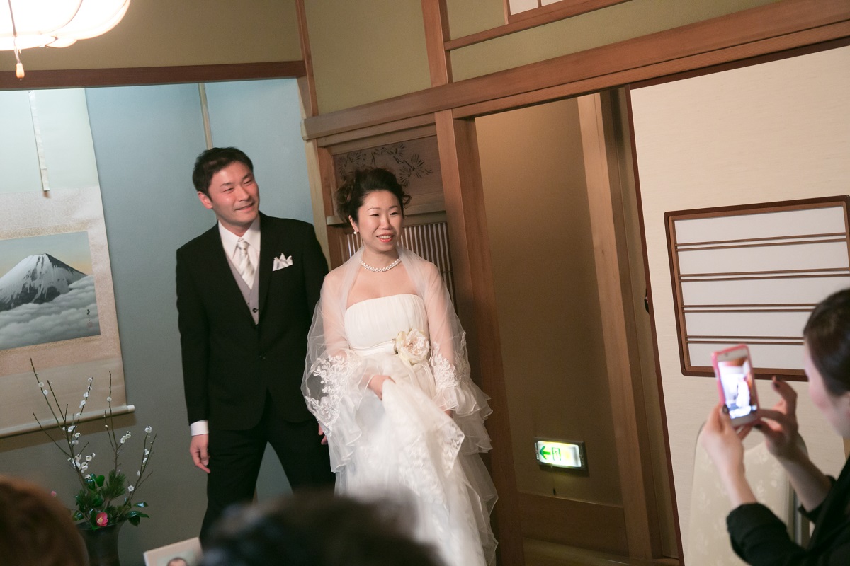 浅草が地元の私(新婦)にとっては、接待や会合に使われそうな敷居の高いイメージがあった「中清」さんでしたが、webサイトで見た中庭の美しさに惹かれました。自分自身がお宮参りの頃からお世話になっている浅草神社でどうしても式を挙げたいと思い、挙式予定まで2か月と少しという短い時間で無理を承知でお願いしたところ、運よく良いお日取りで押さえて頂けました。
