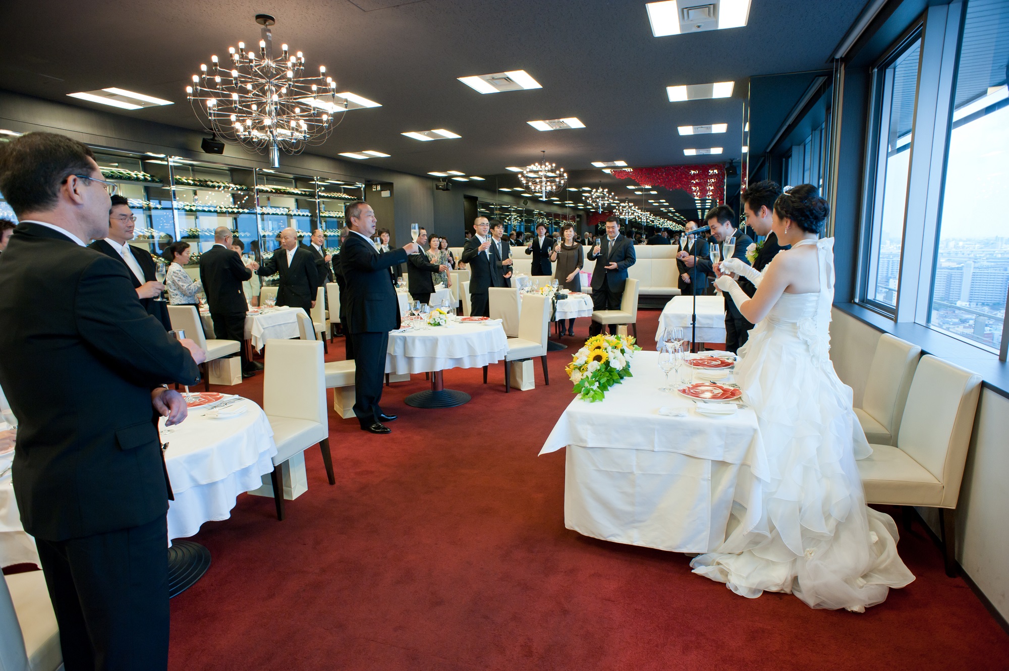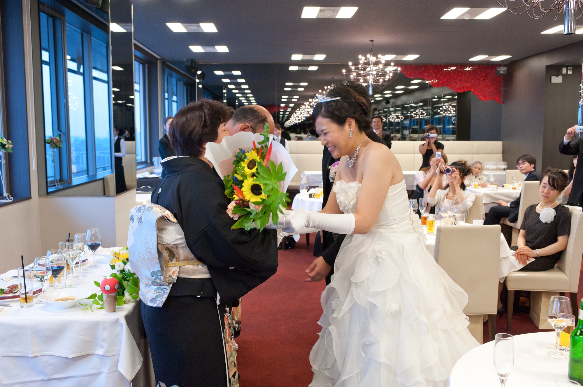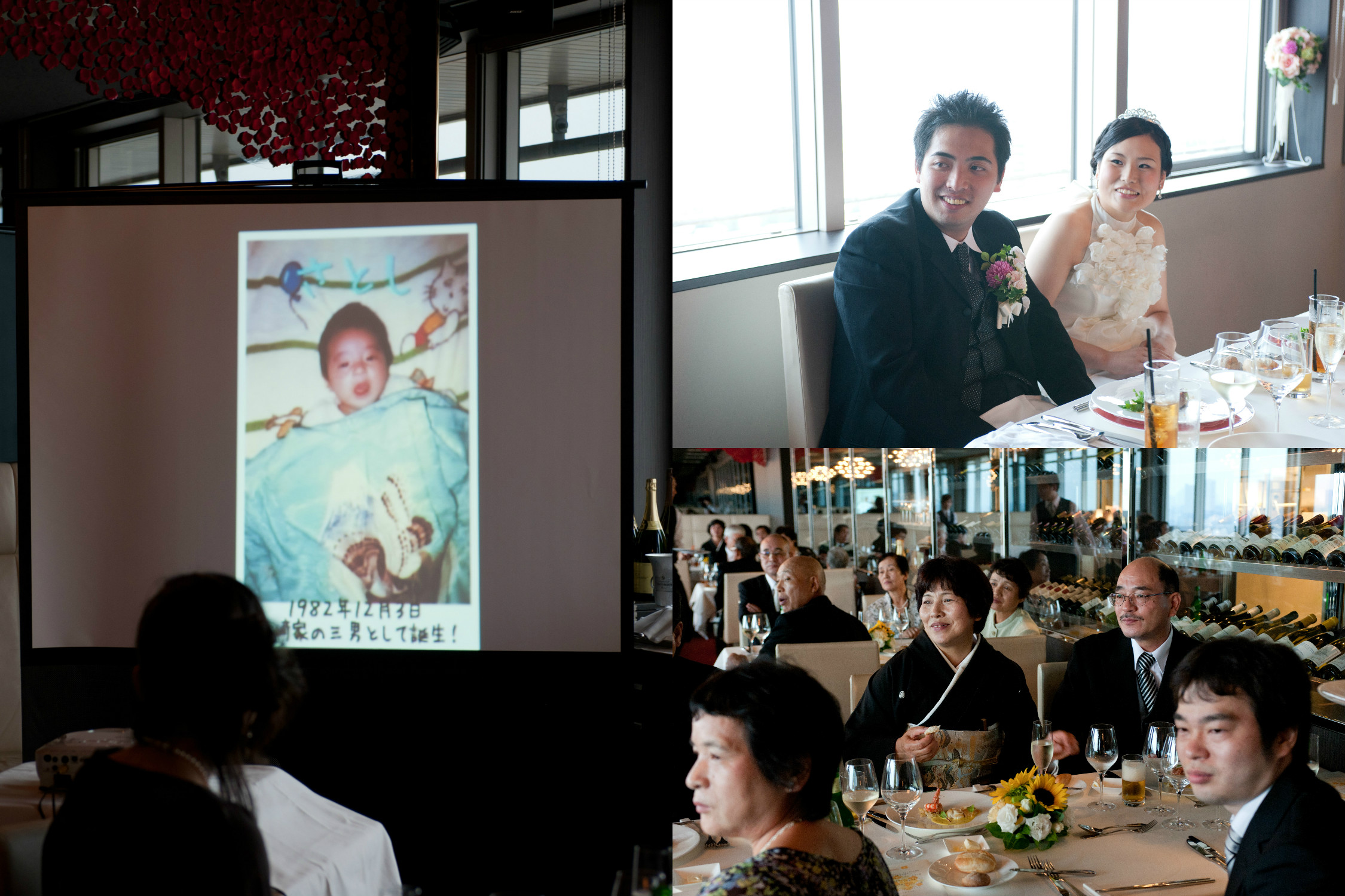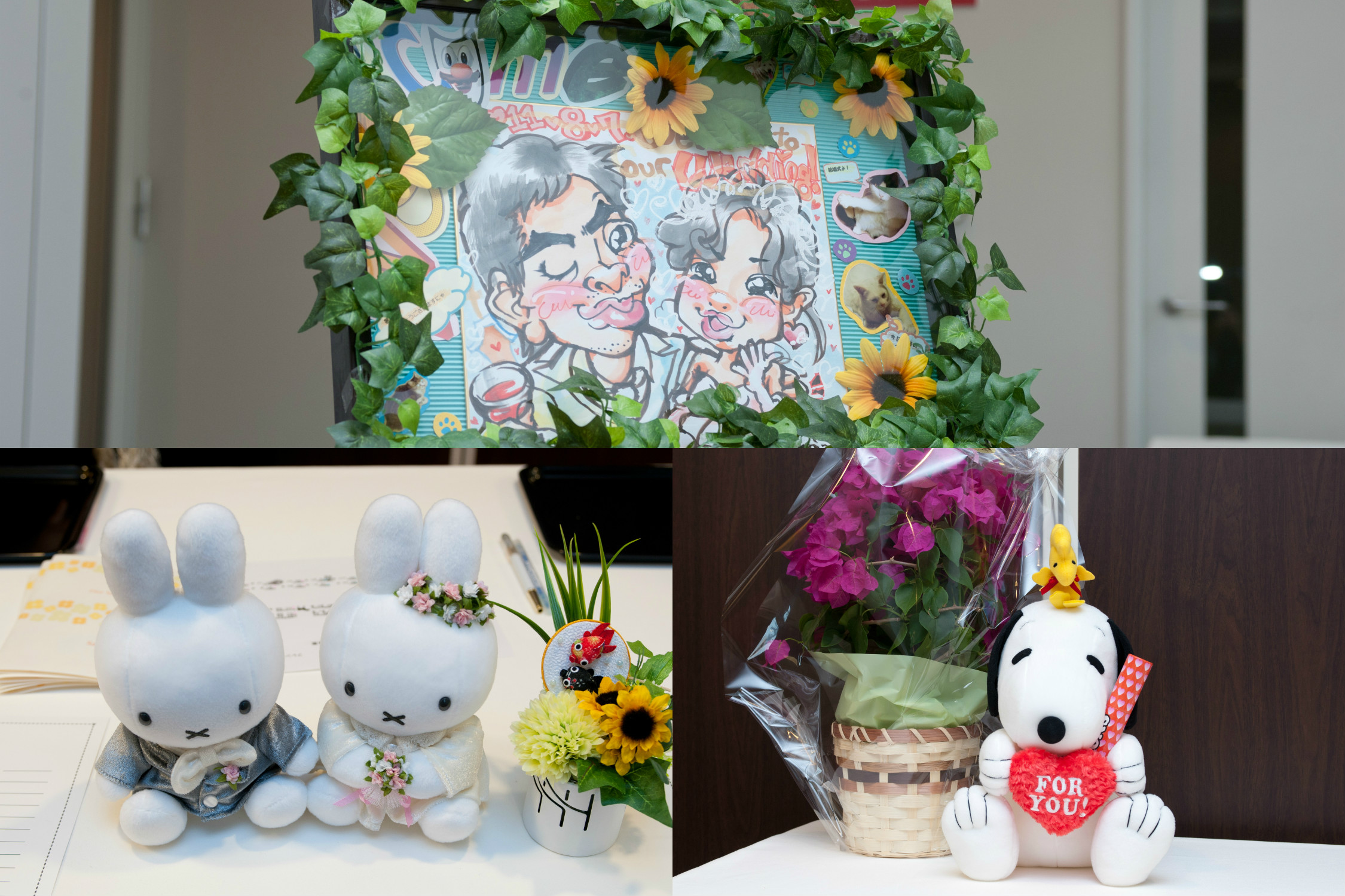 ゲストに楽しんでもらえる結婚式にしたかったので、そこに重点を置きました。自分たちでプロフィールDVDを作るという点以外にも何か出来ないかな?と思っていたのですが、プランナーの浅木さんの提案のもと、お色直し後のテーブルラウンドで新郎がビアサーバを背負って注ぎながら回るというのをやりました。お色直しのドレスチェンジもしなかったので、さすがにちょっと寂しいかな?と思い、自分たちで手作りした小物を使い、最終的には新郎がマリオに仮装してのテーブルラウンドとなったわけですが、これが思った以上にゲストの方に好評で、思い切ってやって良かったです!会場が盛り上がった中で、その後の友人の余興にもいい感じで繋げられたと思います。