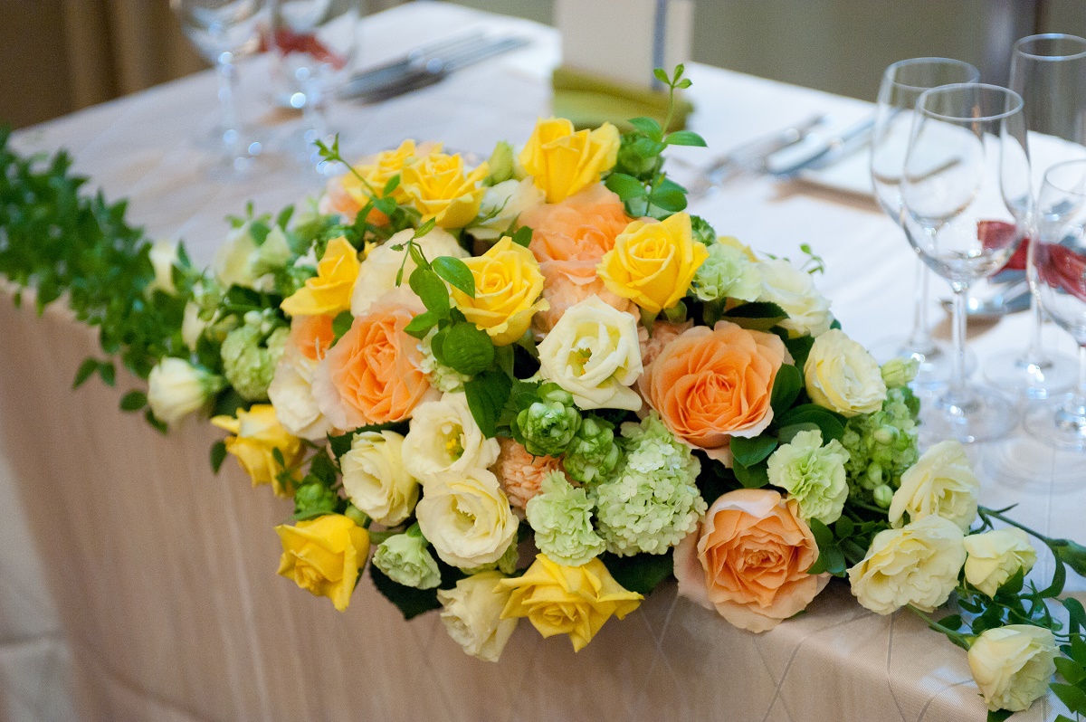 会場のお花は、黄色とオレンジ系で明るくしていただき、これはイメージ通りの色合いで、大変うれしかったです。