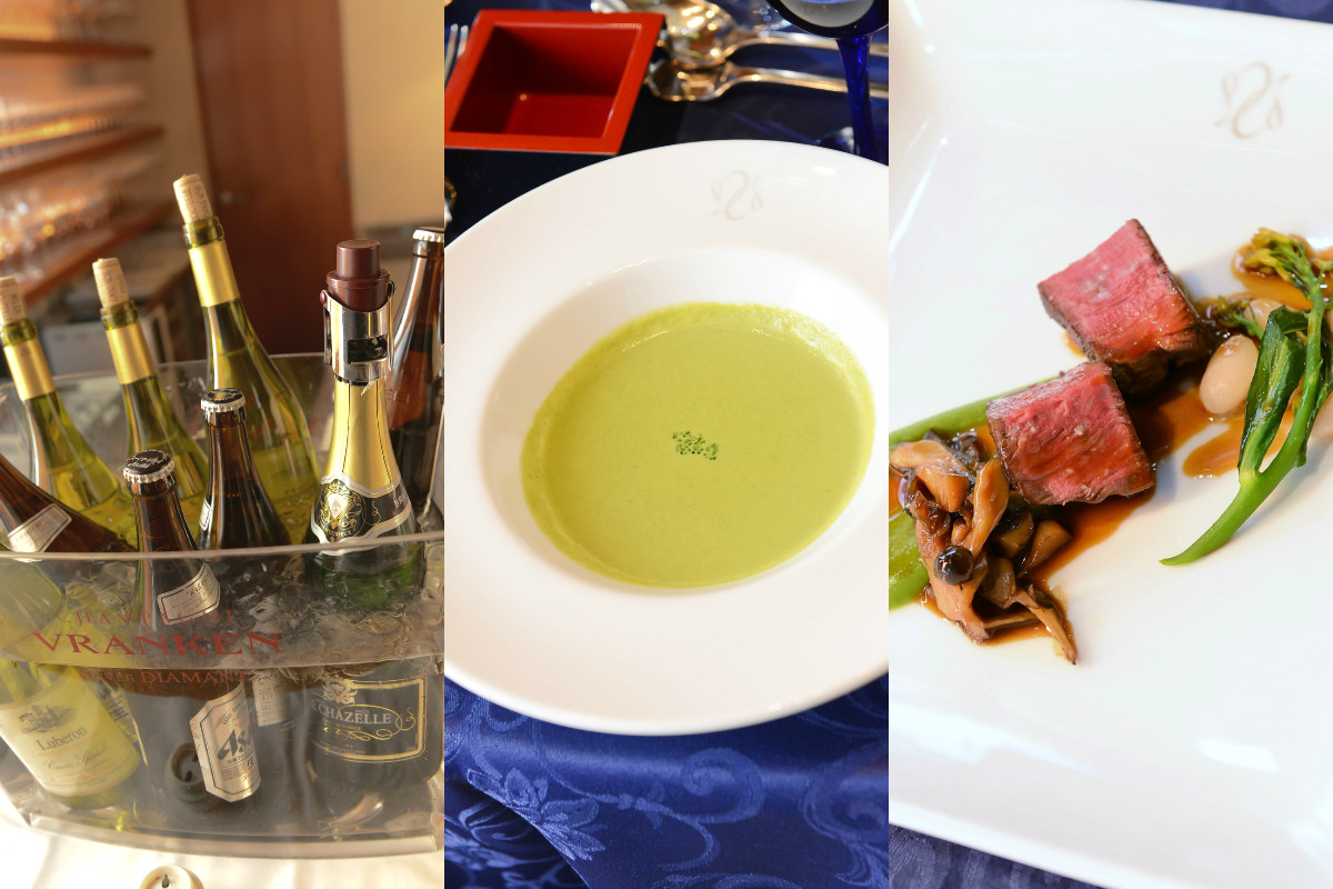 料理は挙式のあった5月にちなんで、折角なので季節ものを…ということで、「セゾンコース」に決定!色がとても鮮やかで視覚も味覚も嬉しいコース料理でした。セゾンコースでは、鯛があらかじめコースに含まれていたのですが、演出でケーキ入刀ならぬ鯛入刀をしたため、クラシカルなフレンチコースのお魚料理と交換していただいたりしました。「このコースはこれじゃないとダメ!!」とがっちり決まっているということではなく、柔軟に対応していただけました。ちなみに、鯛入刀後の鯛は、後程父方家族の故郷の郷土料理として食卓に配られました♪味はもう…美味しいです。ほっぺたが落ちて、挙式のためにリフトアップした顔の輪郭が弛んじゃうんじゃないかというくらい。ラウンドの際にゲストの方からは第一声で「料理最高!」と誉めていただきました。