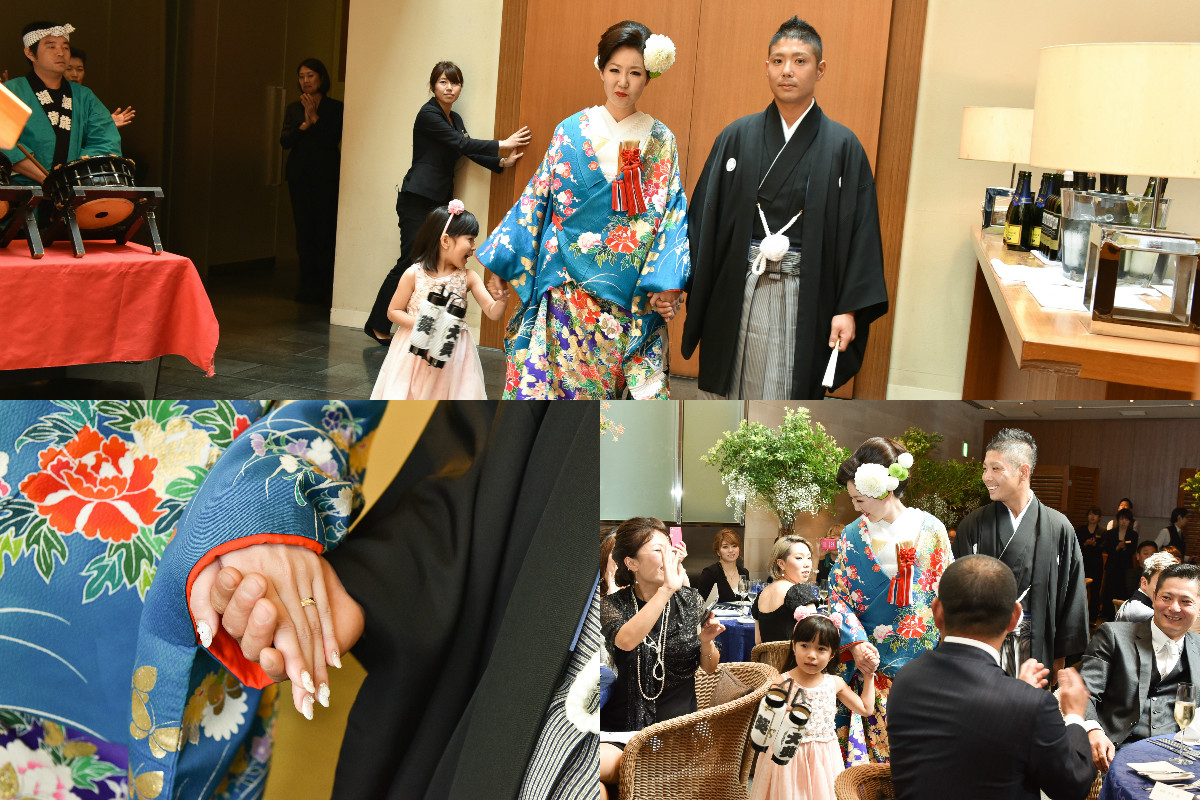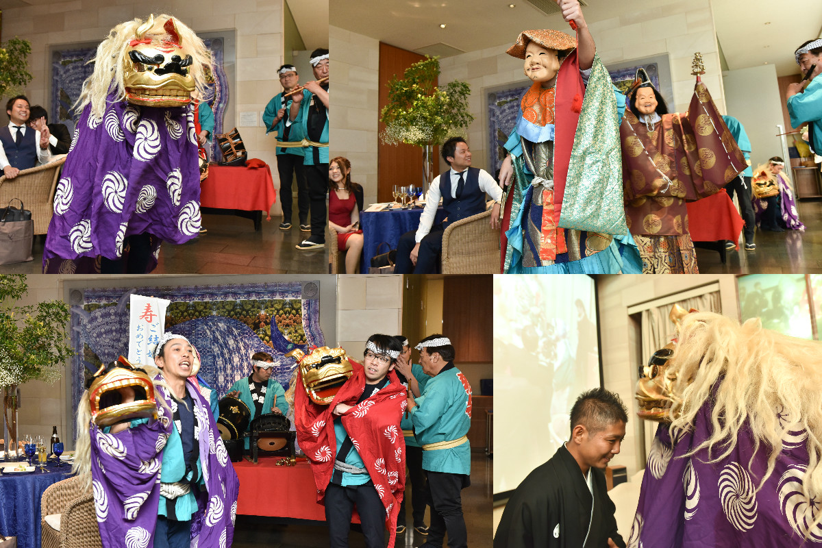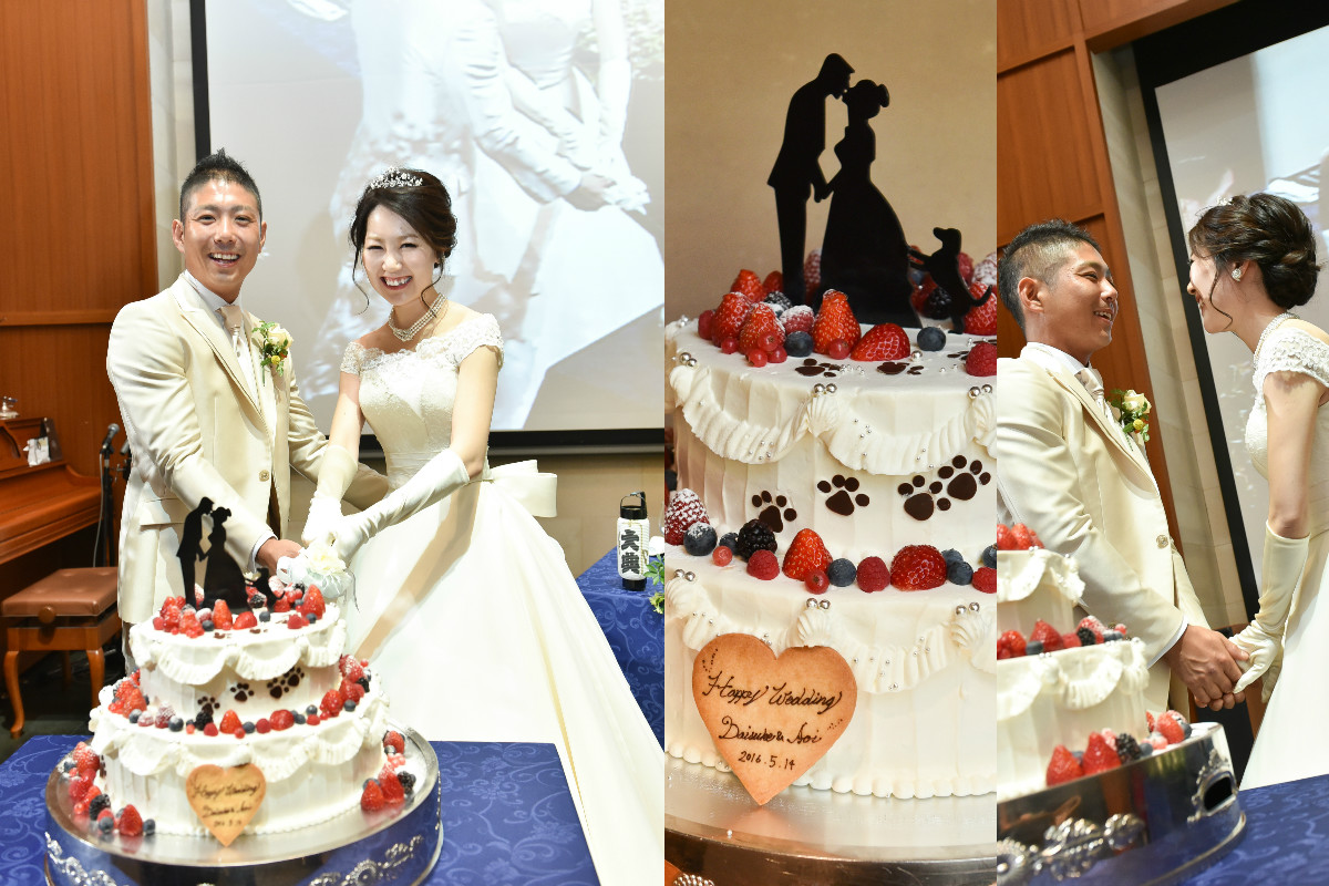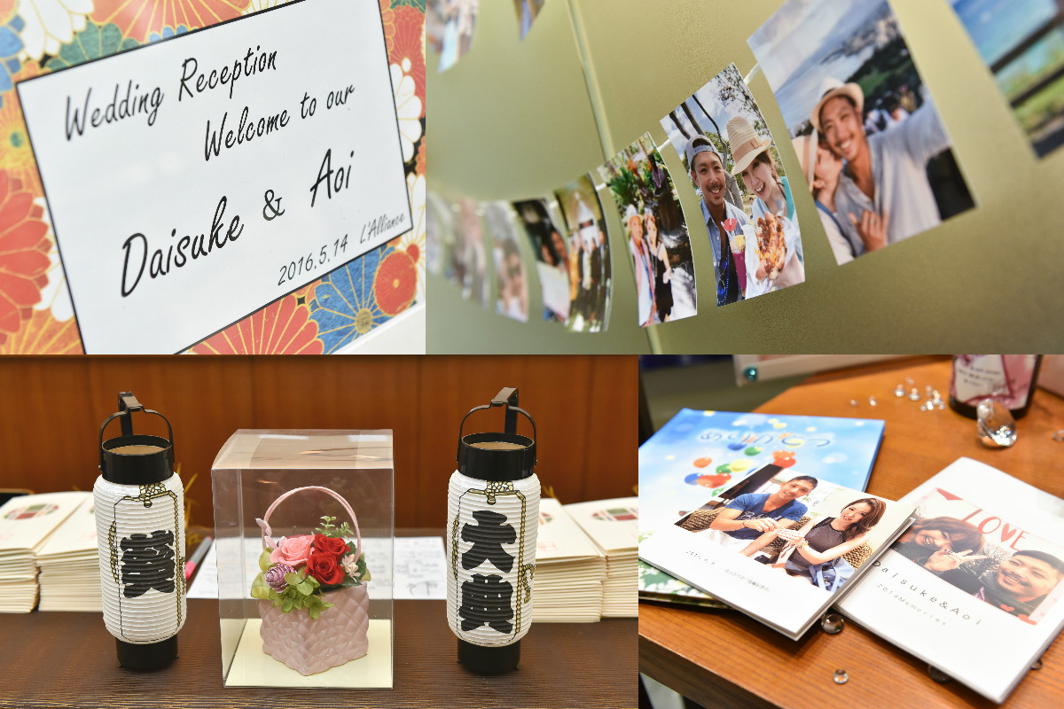 主人の知人にお囃子と獅子舞をやって頂ける事になったので、挙式から披露宴お色直しまでは、和の雰囲気を取り入れ、後半は洋の雰囲気と変化のある演出にしました。プロフィールムービーやウェルカムボード、フォトプロップス等作れる物は自己満ですが手作りし、より当日に向けて来てくれる方々に感謝の気持ちを込め過ごしていきました。沢山の方々に見守られながらの家族へのサプライズBirthdayバイトや、中座の呼び出しはとても良かったなと思いました。私がデザインさせてもらったウェディングケーキも当日とても可愛くて最高でした。