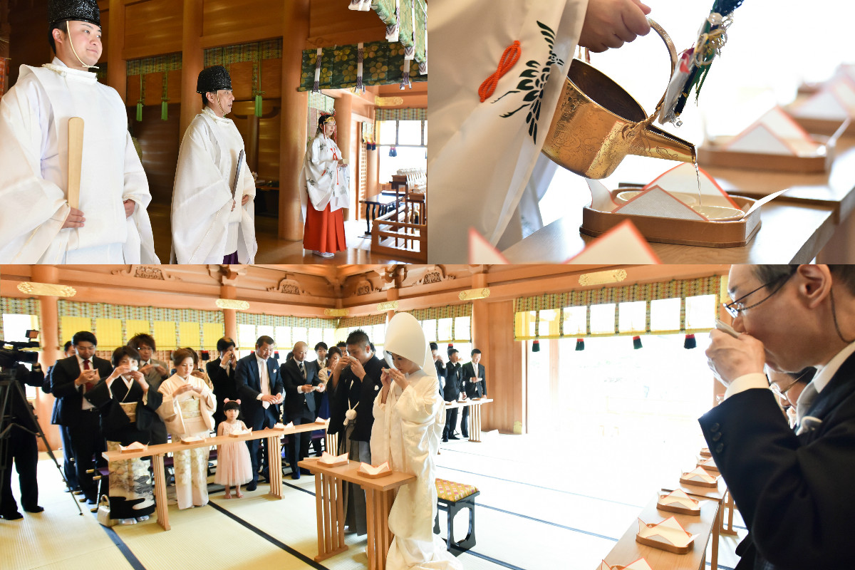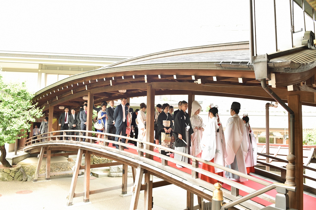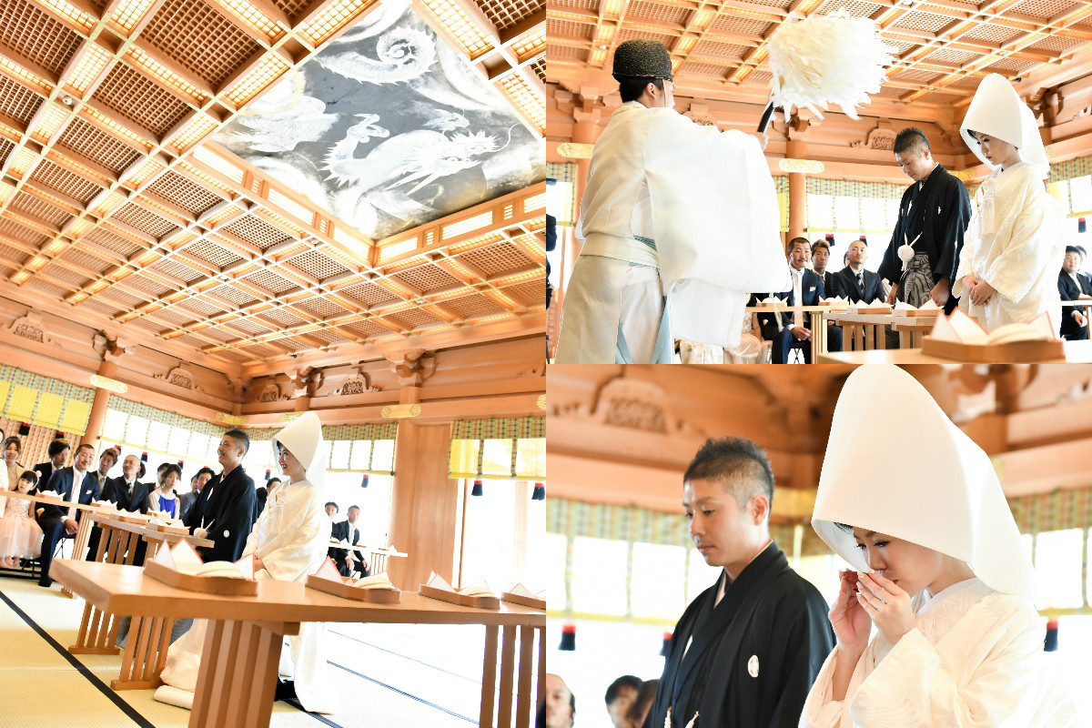 神前式希望だったので、それを基準に披露宴も出来る所を探していたらラリアンスを見つけ、連絡してみたら電話対応もとても親切で、安心して会場見学に行くことにしました。見学当日は、気さくで話やすく優しいスタッフの方が案内してくれました。会場はとても高い天井で開放感もあり、雰囲気も良くお洒落で、