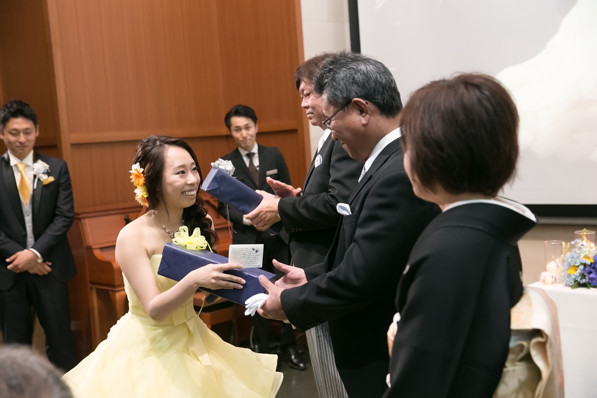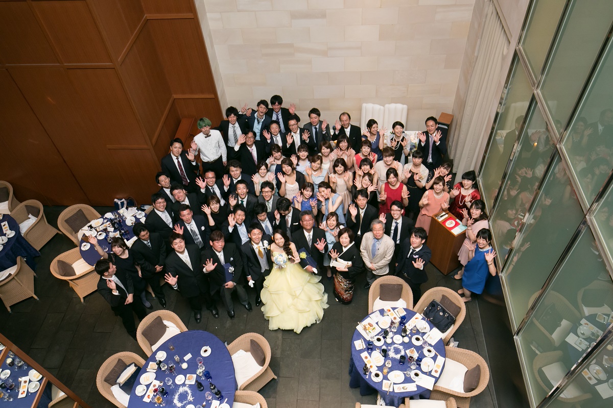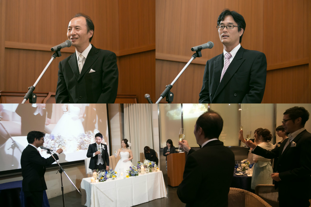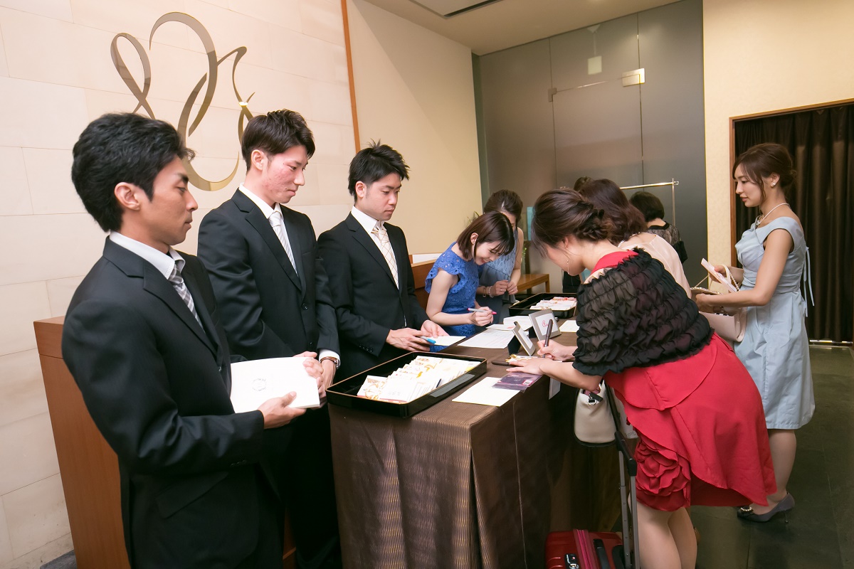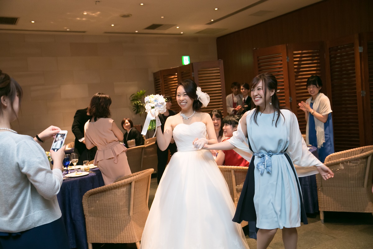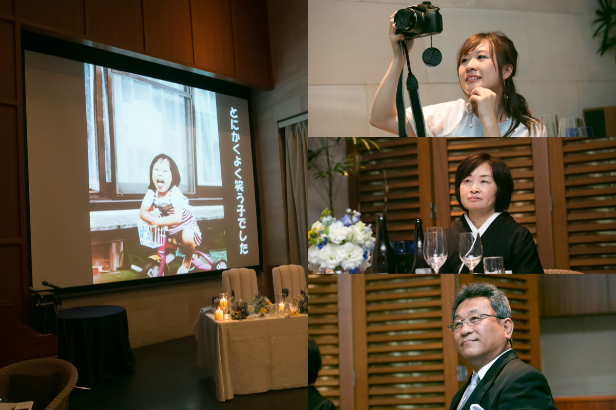 共通の友人も多く、「二人の披露宴」というより、「友人たちと楽しめる明るい披露宴」にしたいと考えていました。そこで、まずウェルカムスペースは友人たちの手作りのものでいっぱいにしてもらいました。演出としては、「ブロッコリートス」を行いました。ゲストの中にパートナーのいない女性陣は少ないというのと、独身男性陣でわいわい盛り上がりたい!と思い行いました。本番は、予想以上に盛り上がり楽しい演出になったと思います。