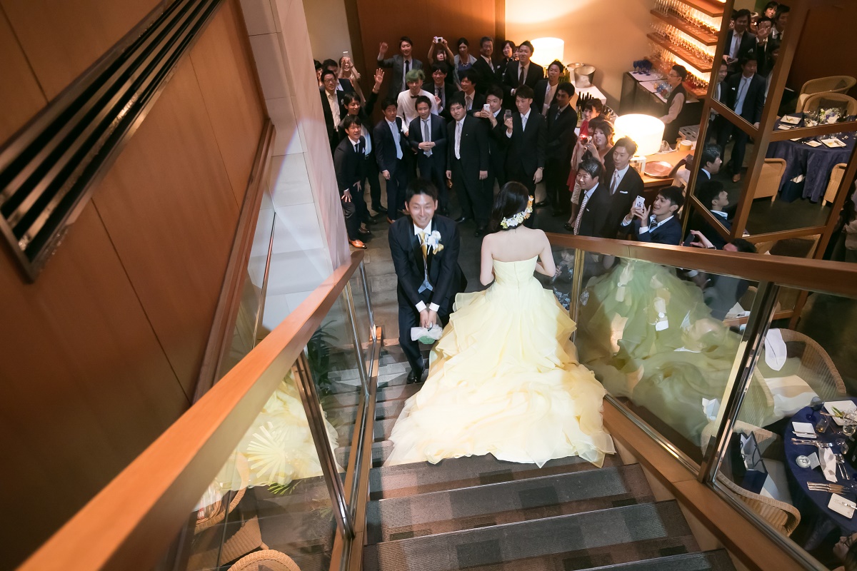 その他にも神楽坂の賑やかな雰囲気から、一気に上品な空間に変わる入り口のエスカレーターや、会場の高さを感じることのできる長い階段も素敵だなと思い、ここにしました。